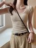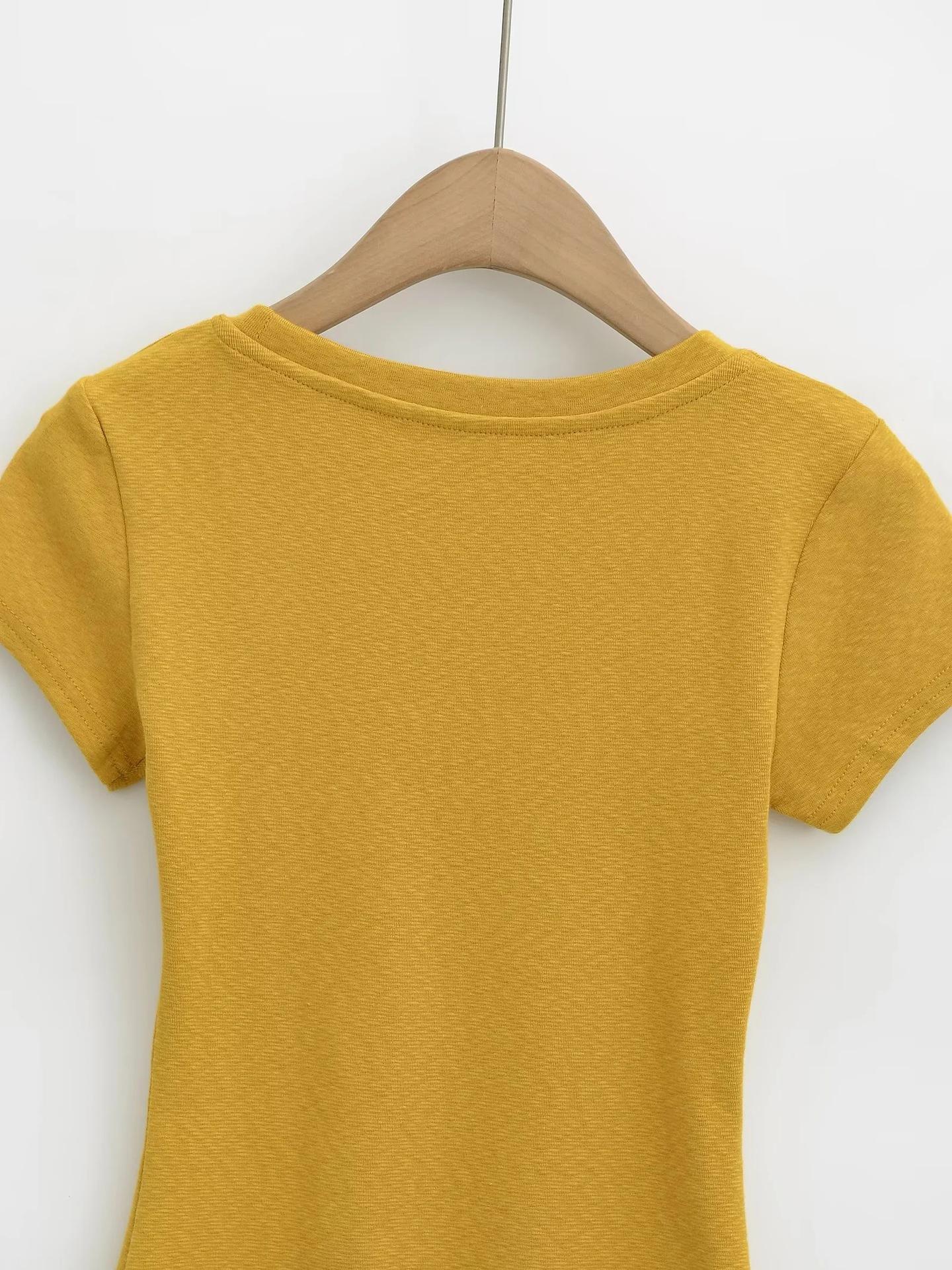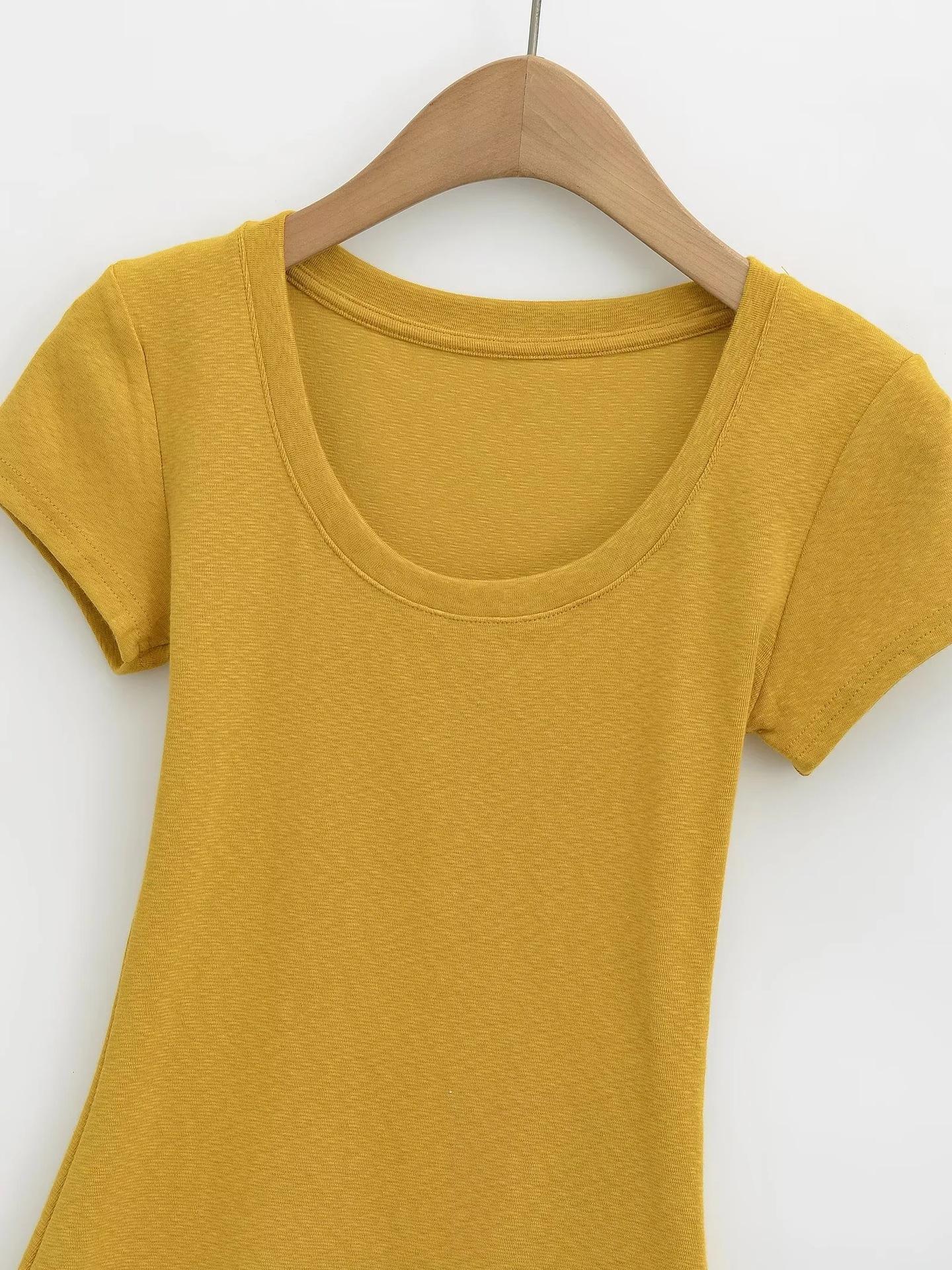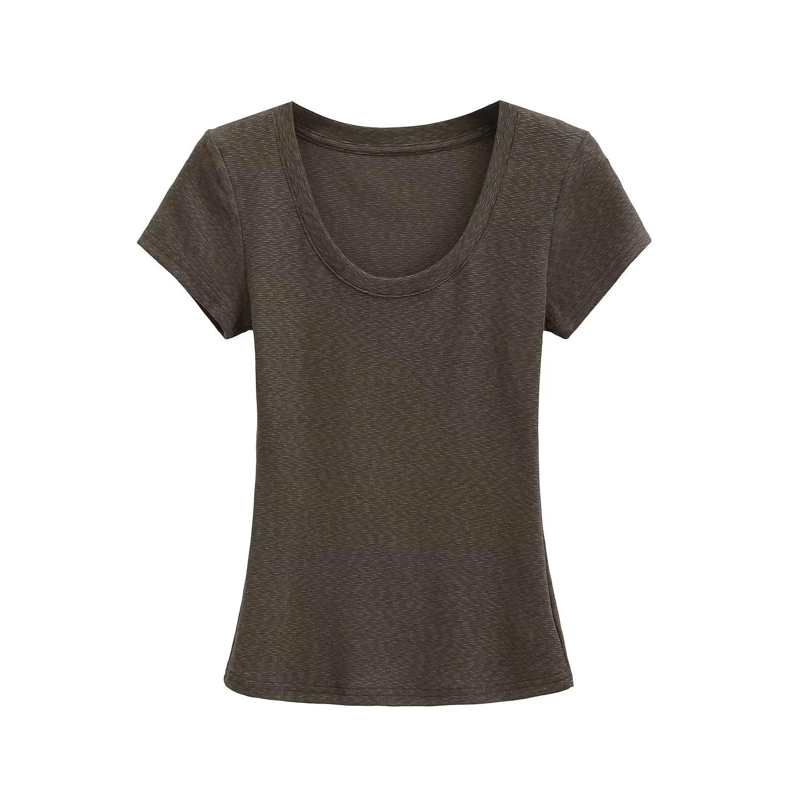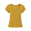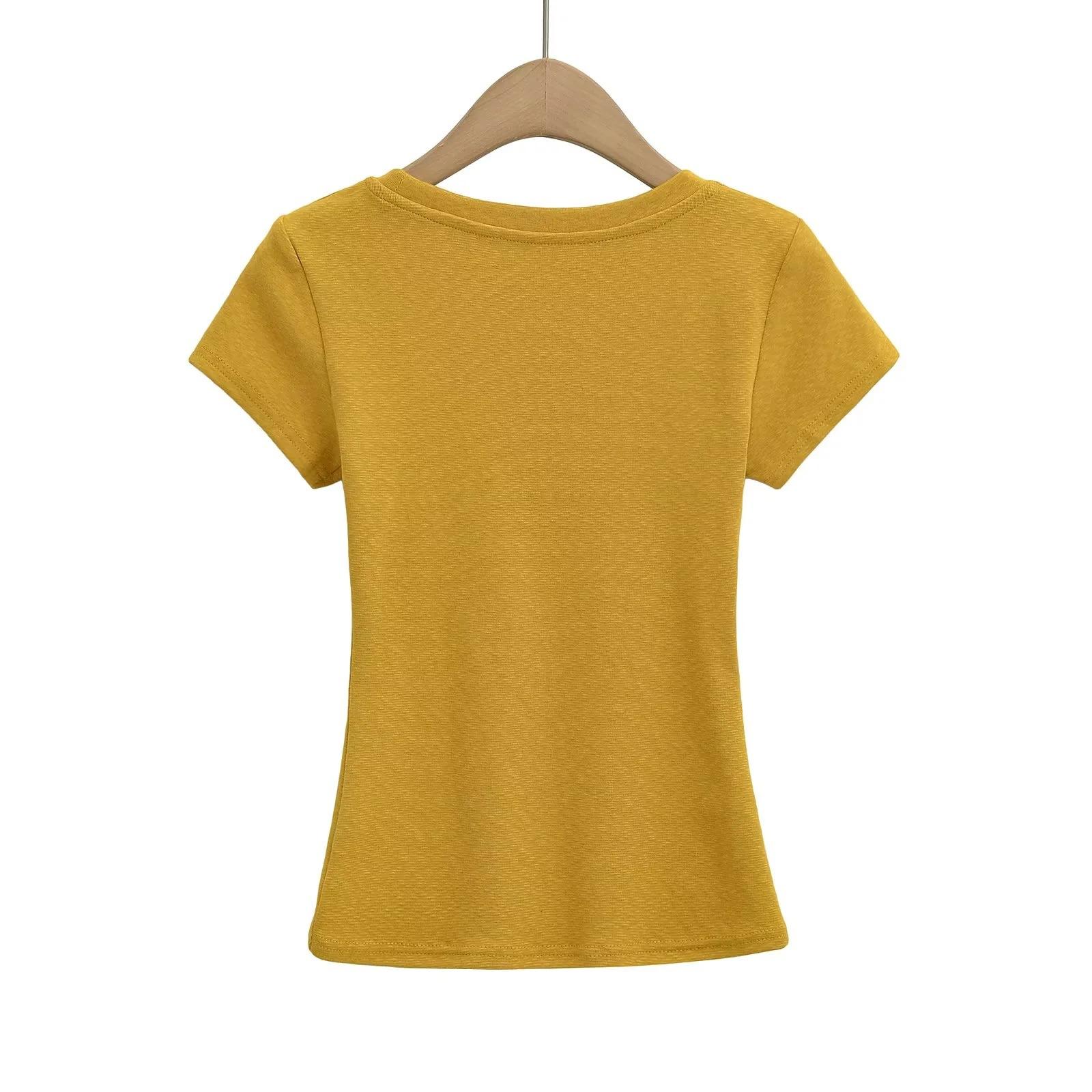Camiseta básica de verano de manga corta con hombros descubiertos y cuello redondo para mujer, estilo americano, ajustada, para chicas
