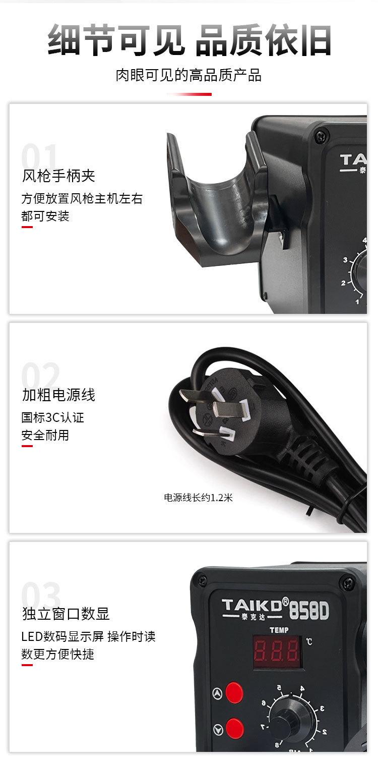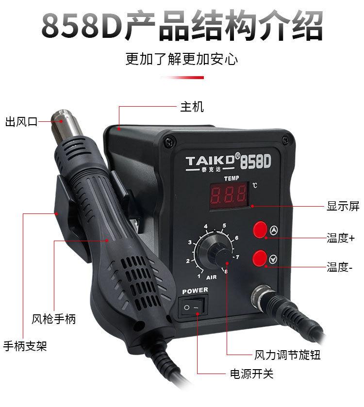Pistola de aire caliente de temperatura constante ajustable con pantalla digital 858d directa de fábrica, estación de soldadura, pistola de aire caliente para mantenimiento de teléfonos móviles