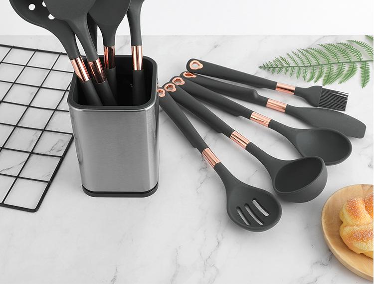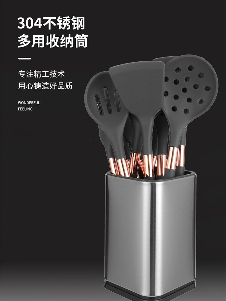 Cubo de Almacenamiento de Acero Inoxidable Cubo de Utensilios de Cocina Set de Utensilios de Cocina de Silicona Cubo Olla Espátula Cuchara Colador Utensilios de Cocina para el Hogar