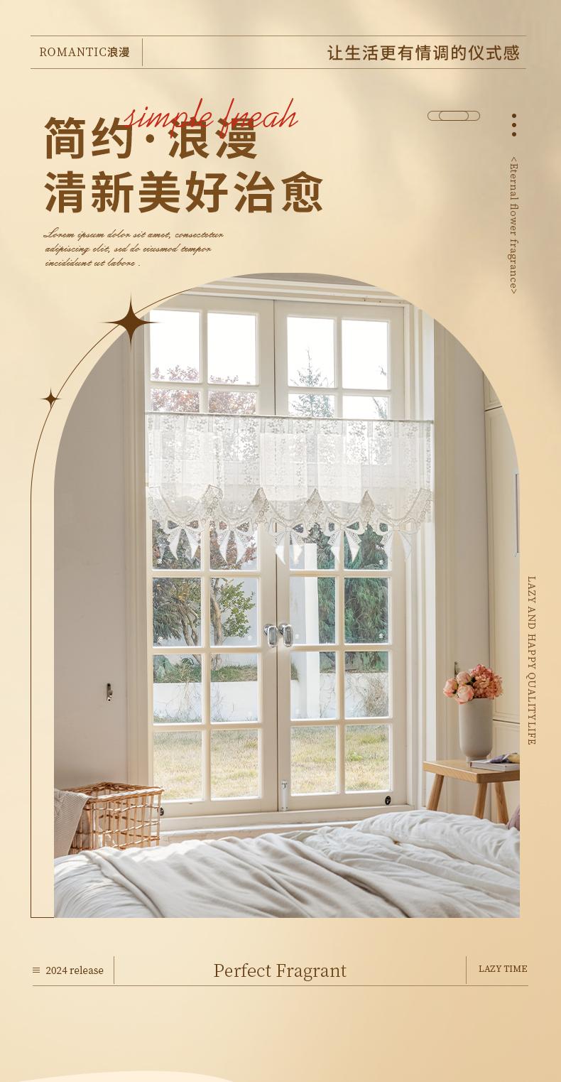 Cortina Media Estilo Americano al por Mayor Estilo Francés Cortina Media de Cocina Cortina Corta Puerta Arqueada Encaje Cortina de Gasa Pasillo Puerta Sombreada