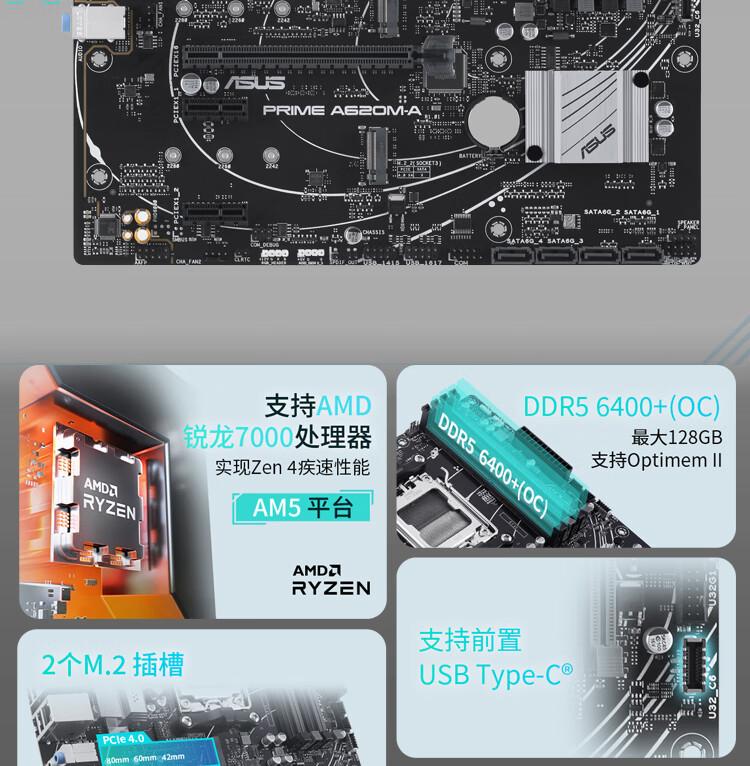 Tarjeta Madre para PC de Escritorio PRIME A620M-A AM5 Soporta CPU 7700X/7600X/7500f