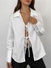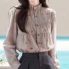 Ropa de Mujer Europea y Americana 2024 Otoño Nueva Moda Elegante Solapa Suelta Color Puro Ebay Camisa de Manga Larga Tops de Mujer