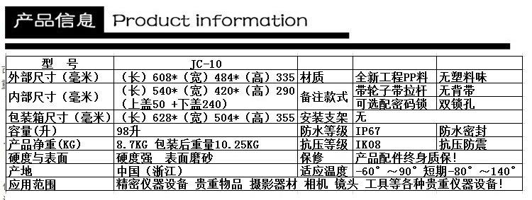Suministro directo de fábrica seguridad JC-10 con caja de plástico esponja a prueba de humedad caja de seguridad maleta con ruedas caja sellada caja protectora