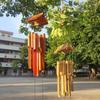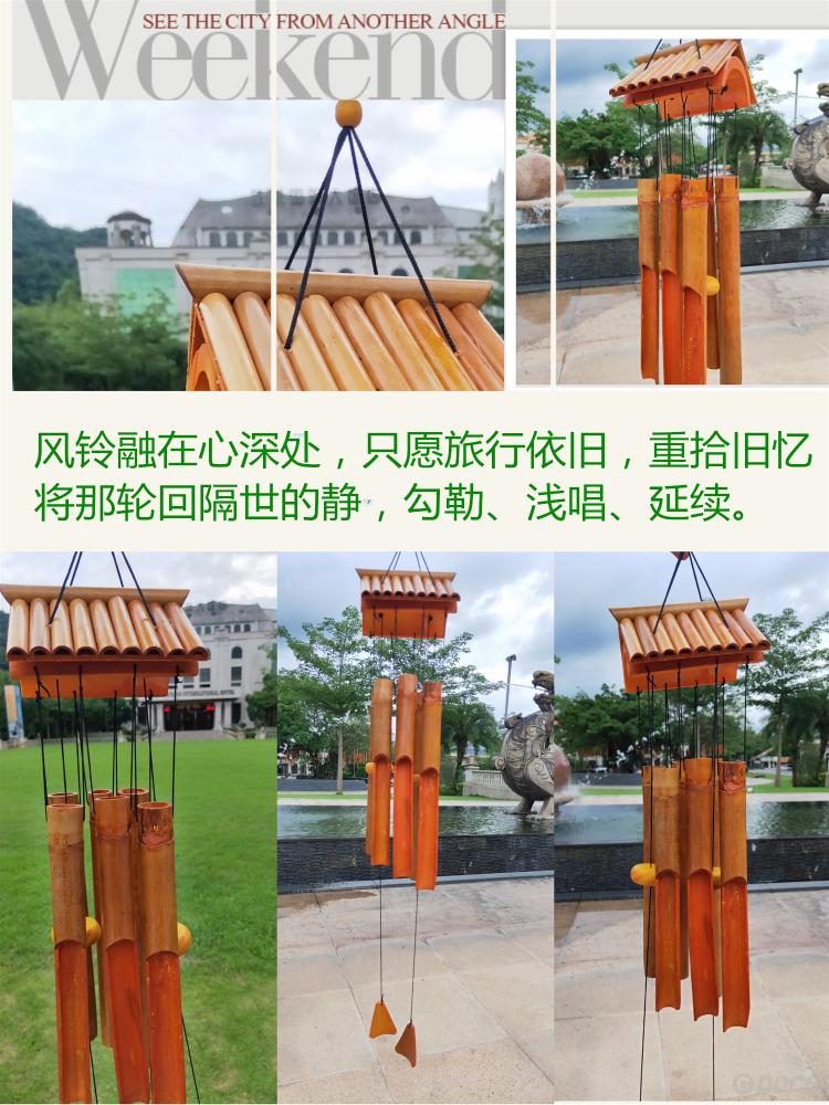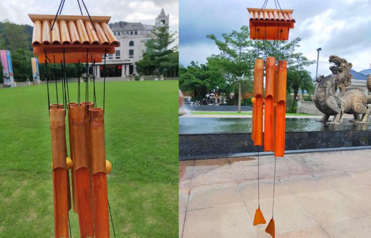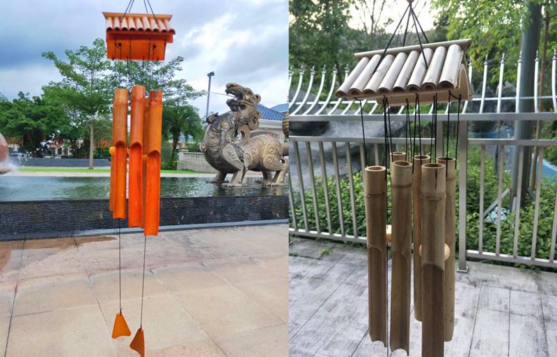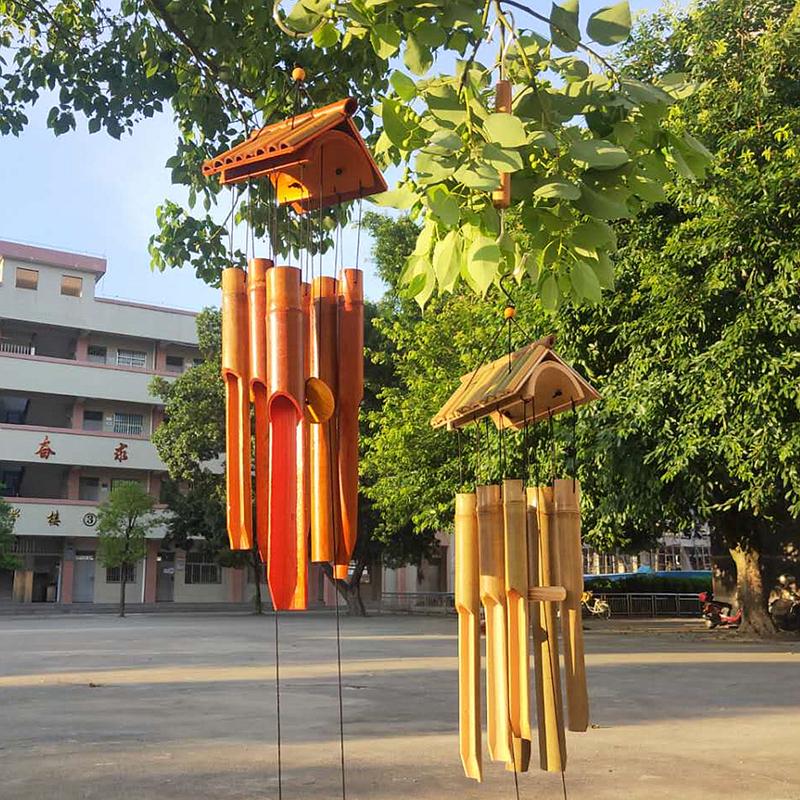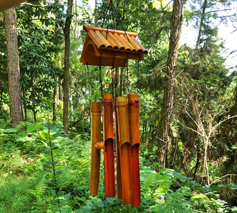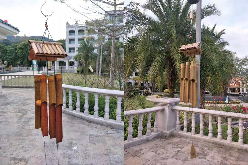 Los carillones de viento de bambú complementan la torpeza naturalmente, al igual que el sonido del viento soplando a través de las hojas de bambú. Cuando el viento sopla suavemente, el sonido de los tubos de bambú golpeándose y chocando entre sí es tan nítido.