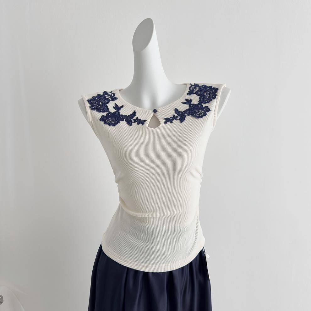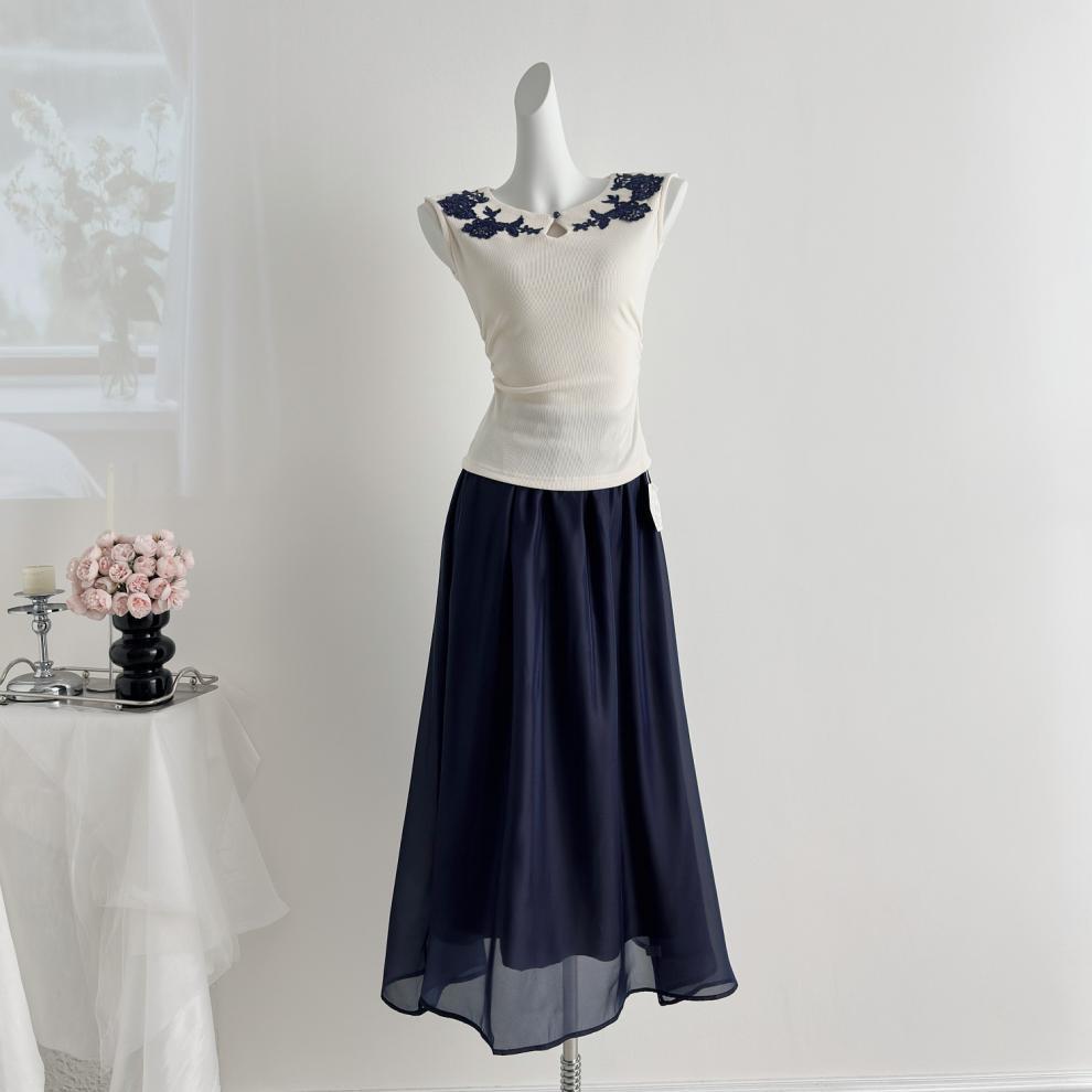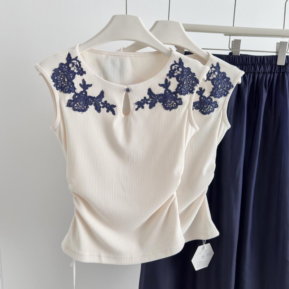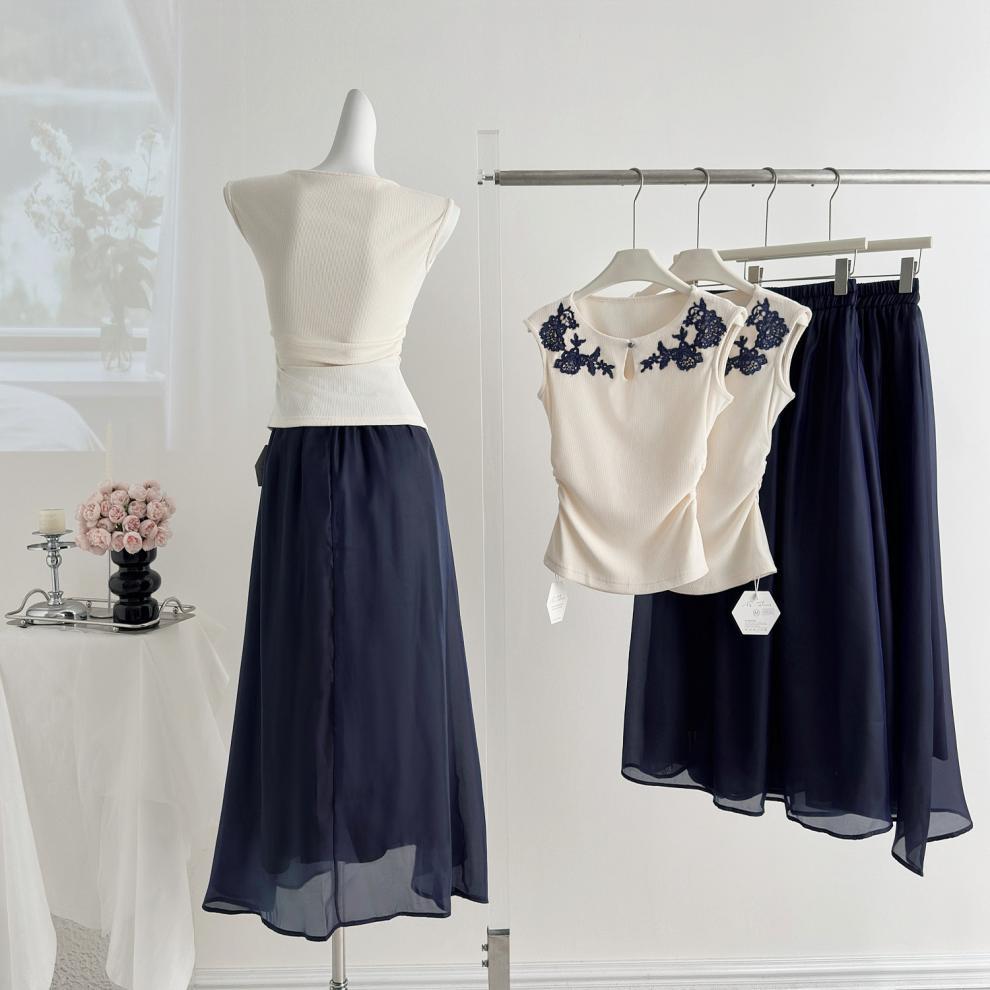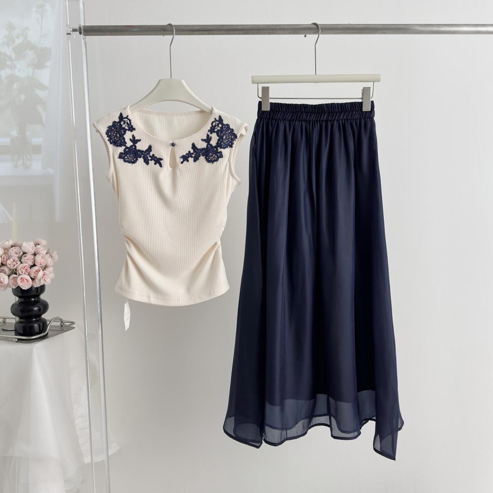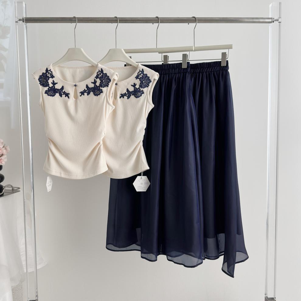Elegante Conjunto de Dos Piezas 2025 Transfronterizo Elegante Verano Elegante Top de Encaje Bordado + Traje de Falda Grande
