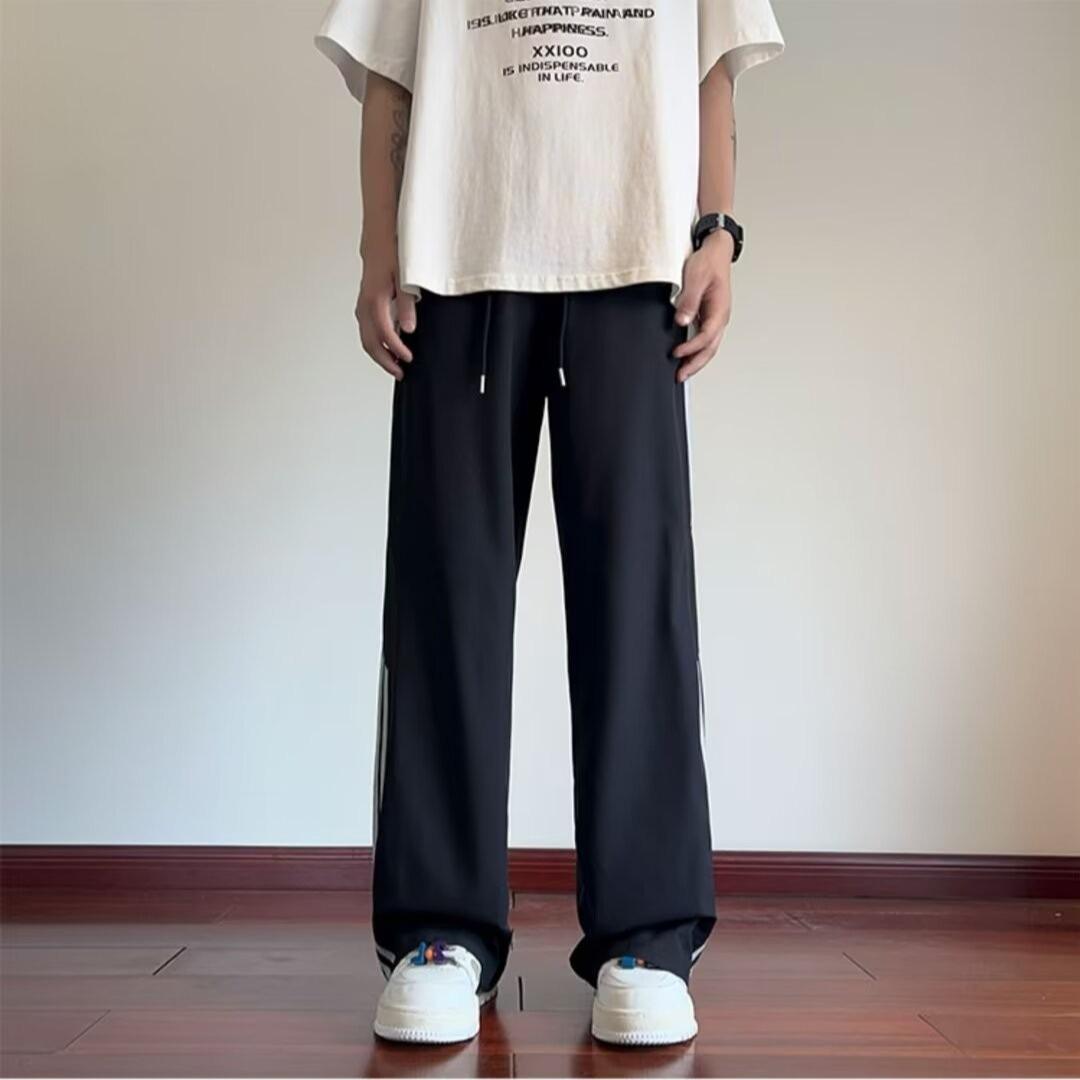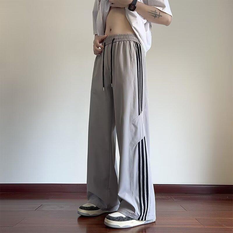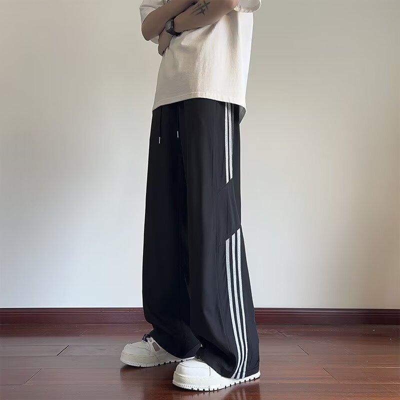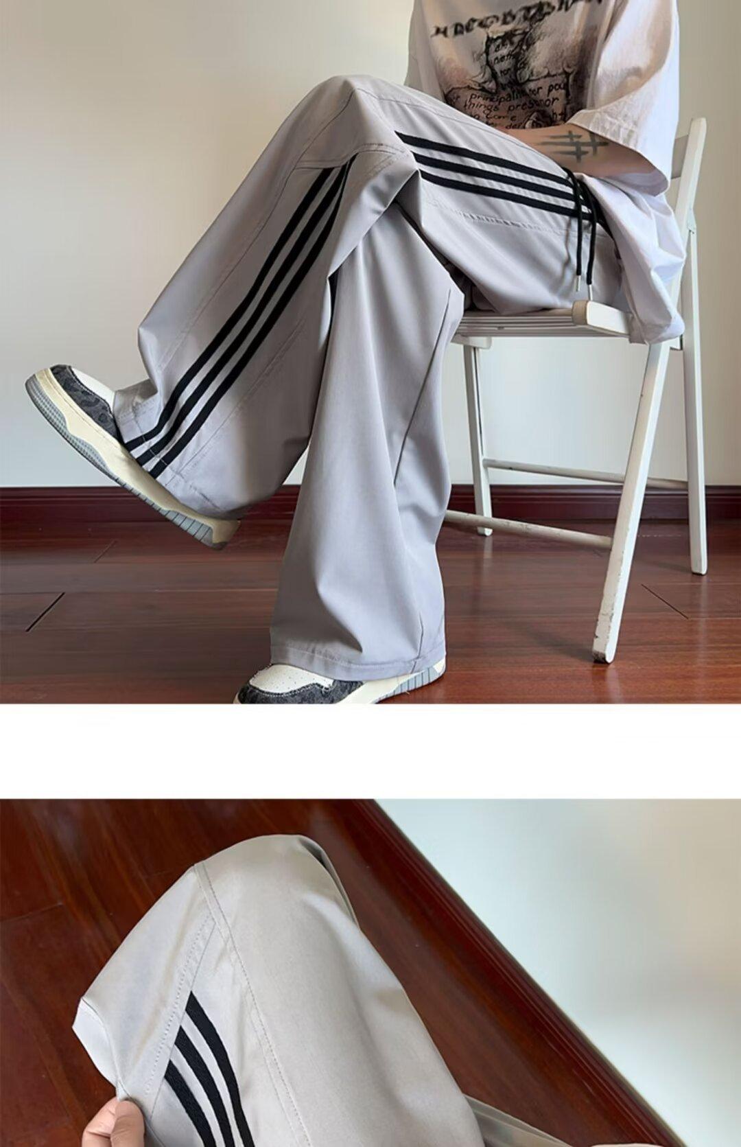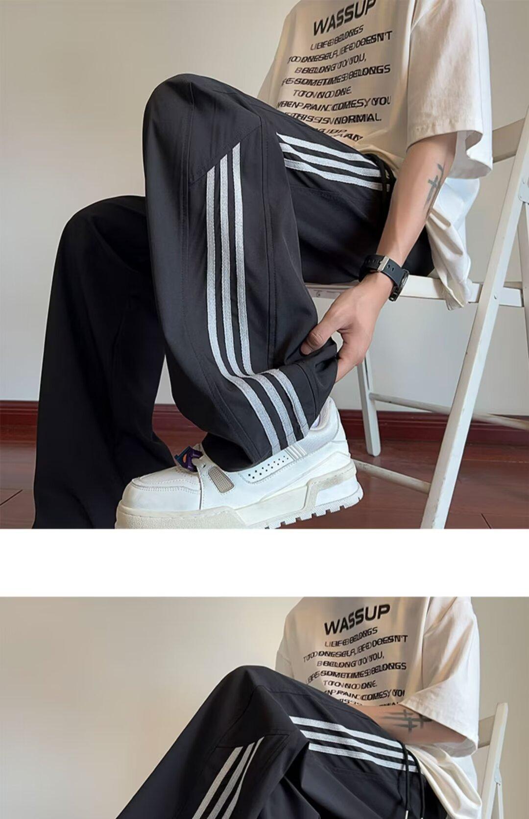 Pantalones Rectos con Tres Franjas y Empalme Lateral para Hombre y Mujer Nuevo Estudiante Casual Pantalones Deportivos Celebridad de Internet Nueva Tendencia