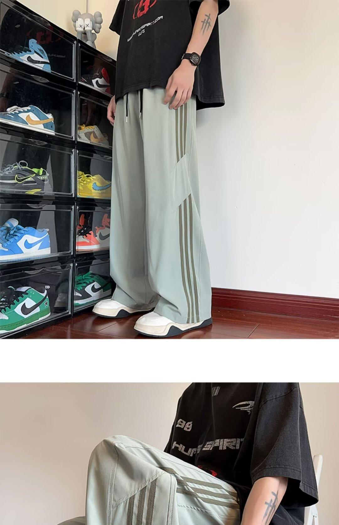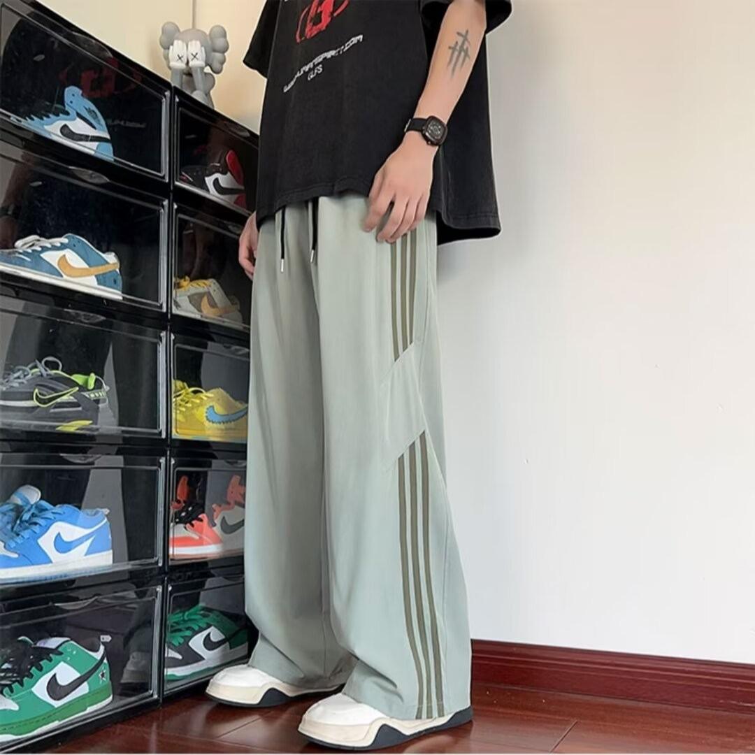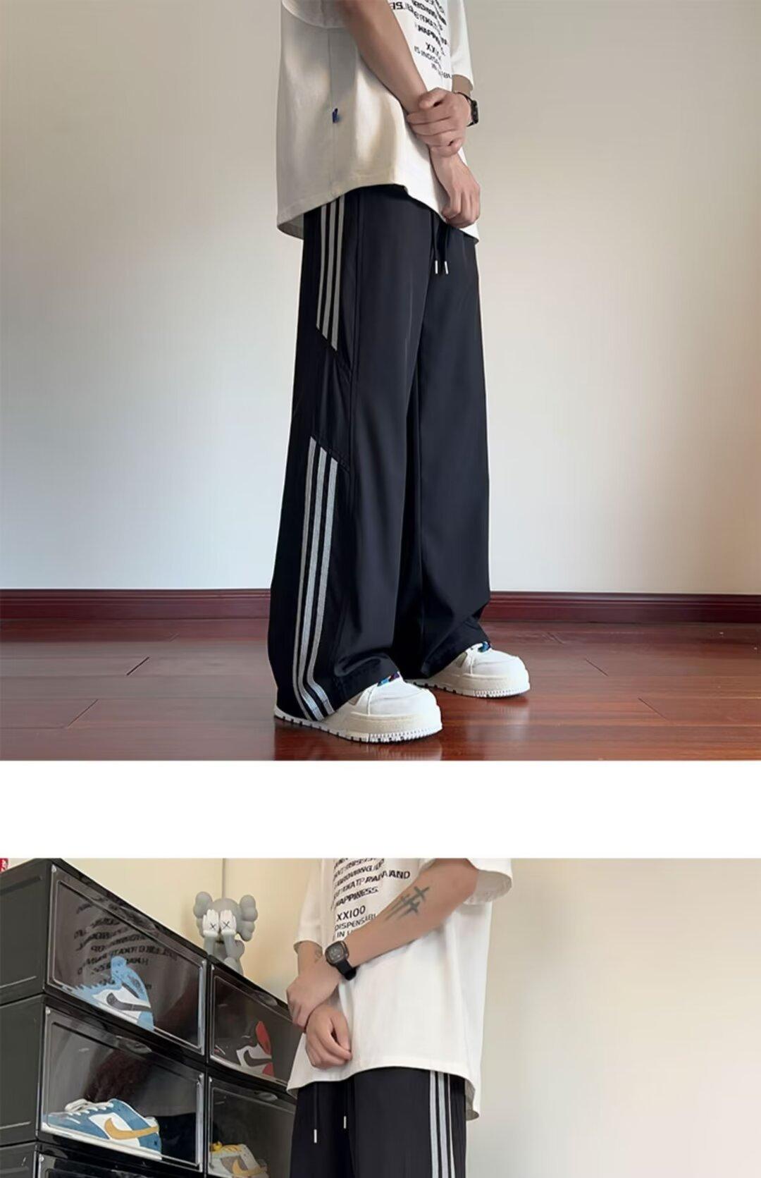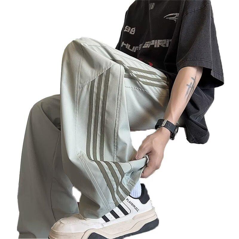 Pantalones Rectos con Tres Franjas y Empalme Lateral para Hombre y Mujer Nuevo Estudiante Casual Pantalones Deportivos Celebridad de Internet Nueva Tendencia