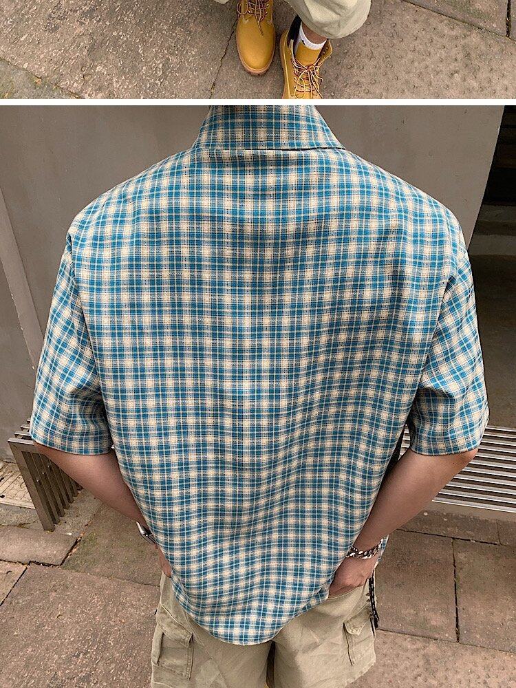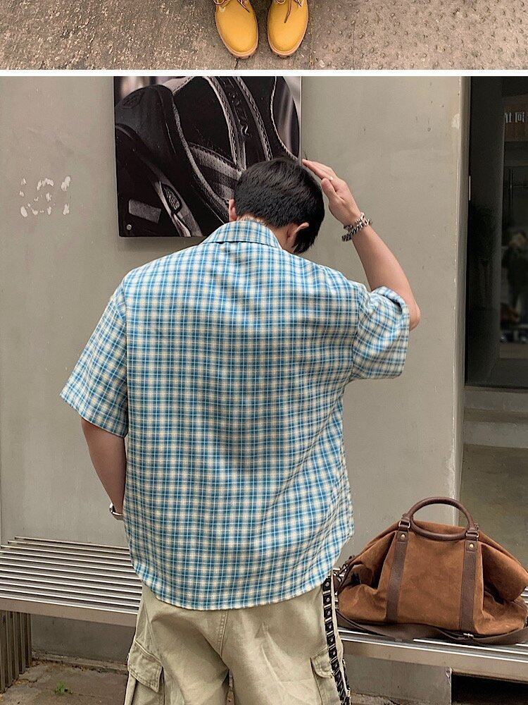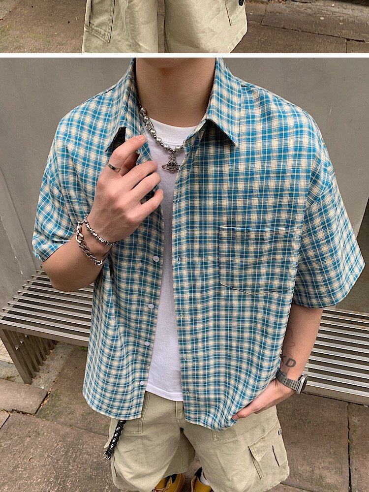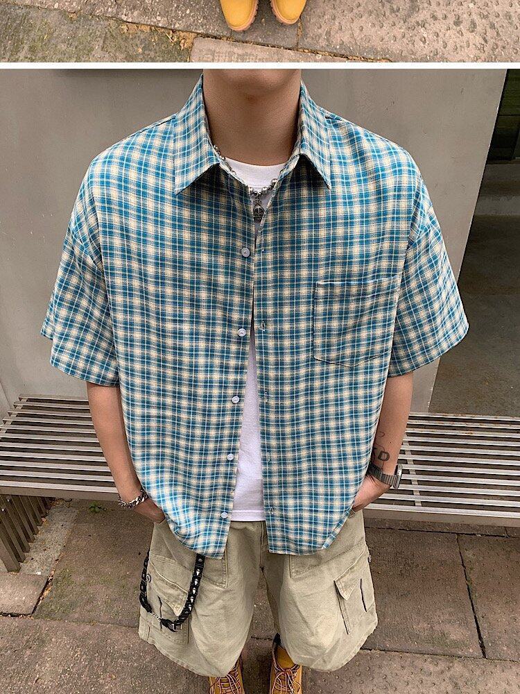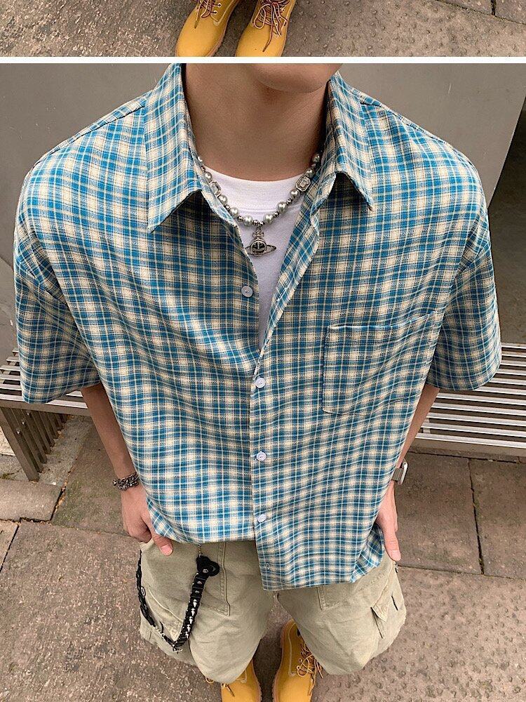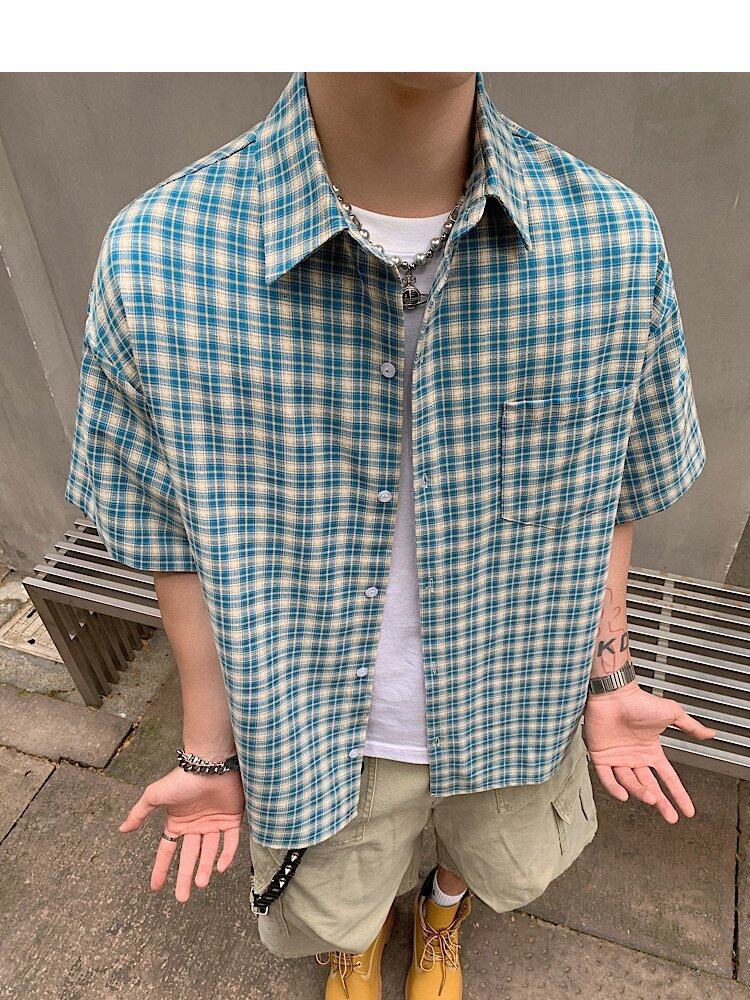 Camisa a cuadros retro de estilo americano para hombre, camisa informal holgada de marca de moda, novedad de verano de 2025