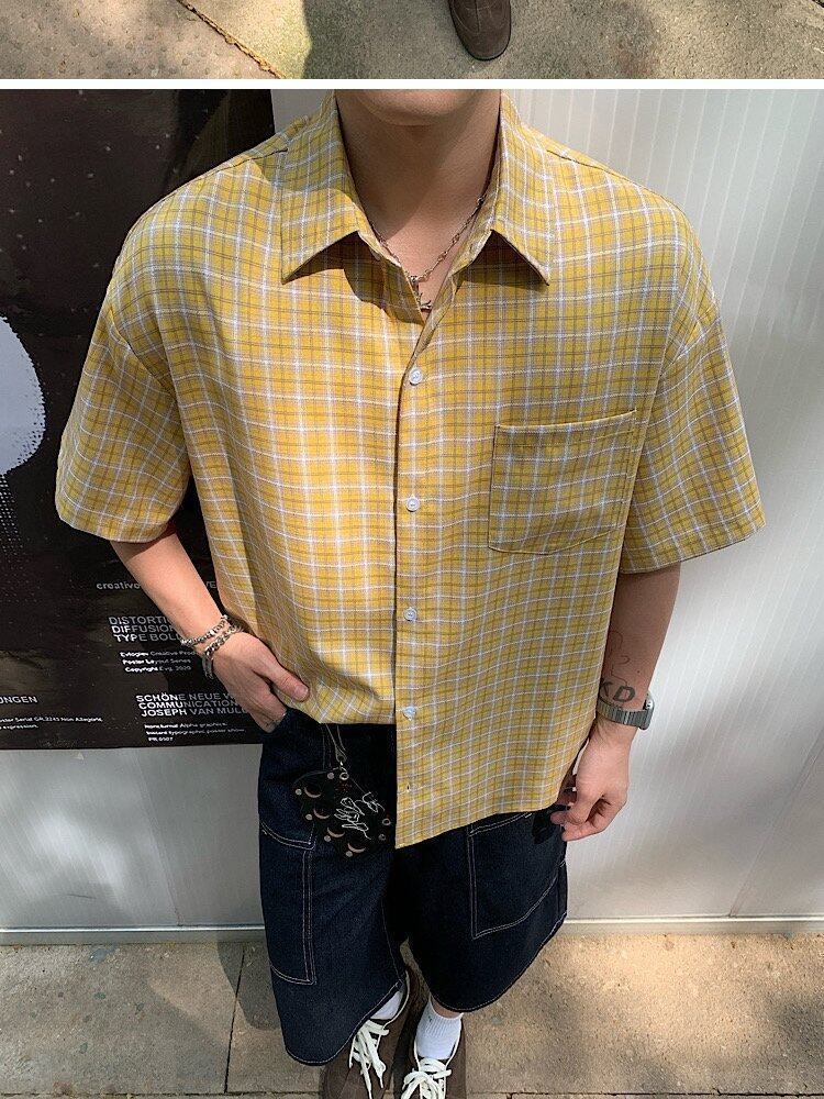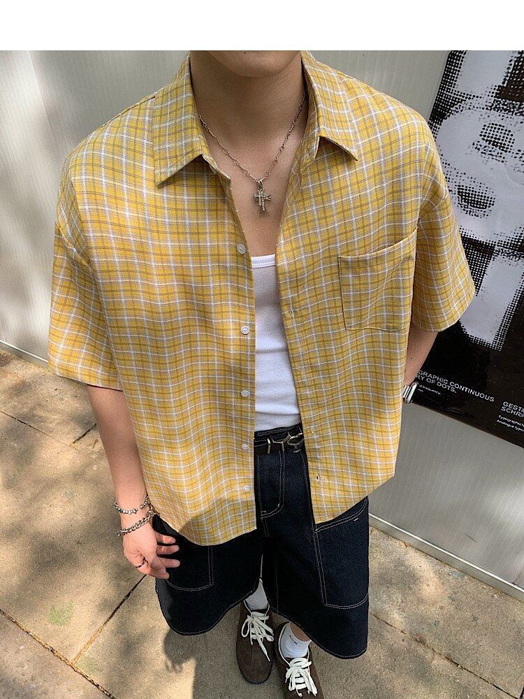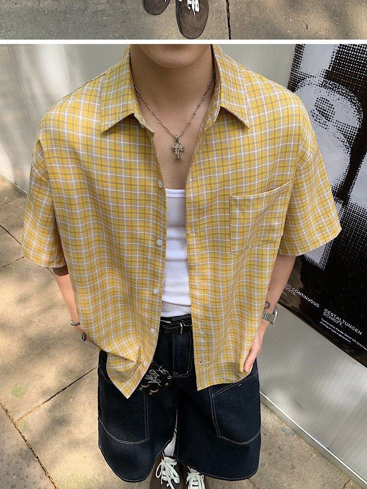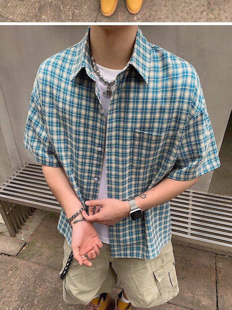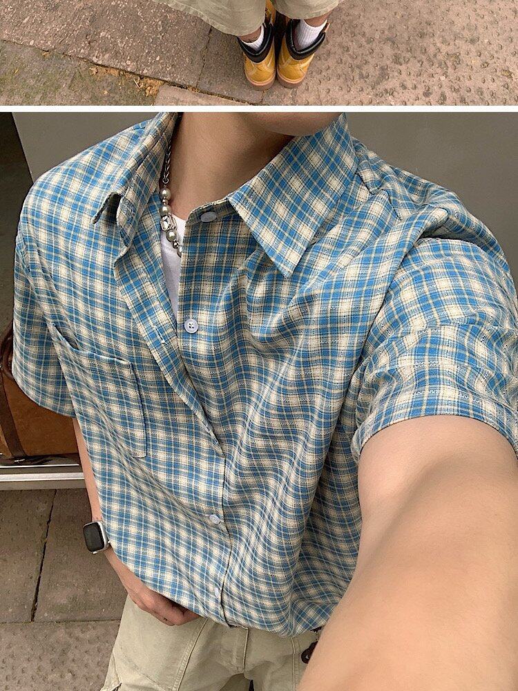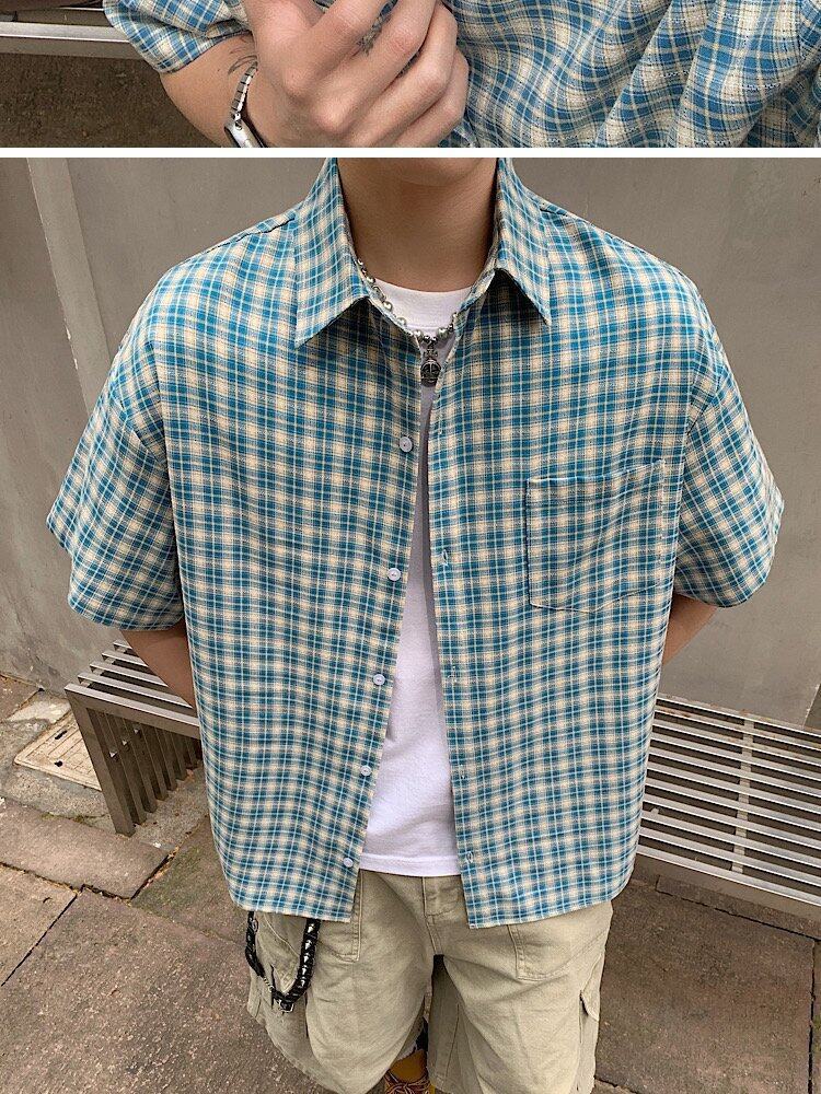 Camisa a cuadros retro de estilo americano para hombre, camisa informal holgada de marca de moda, novedad de verano de 2025