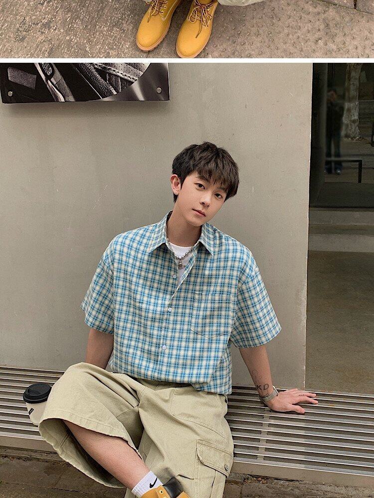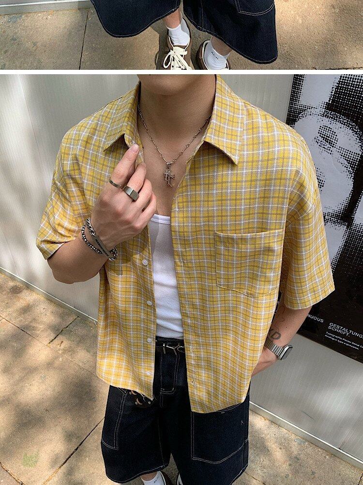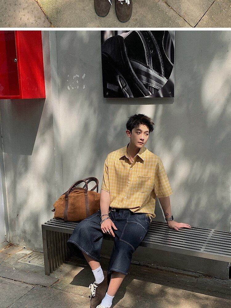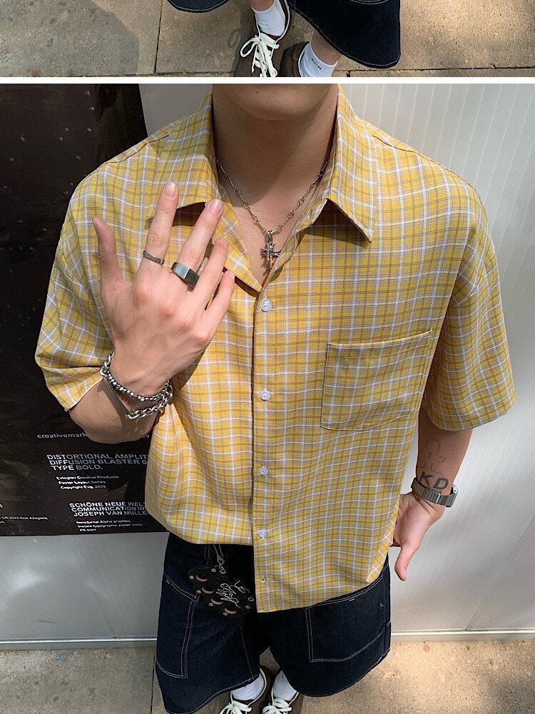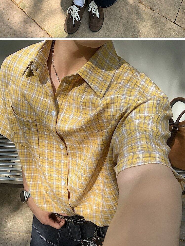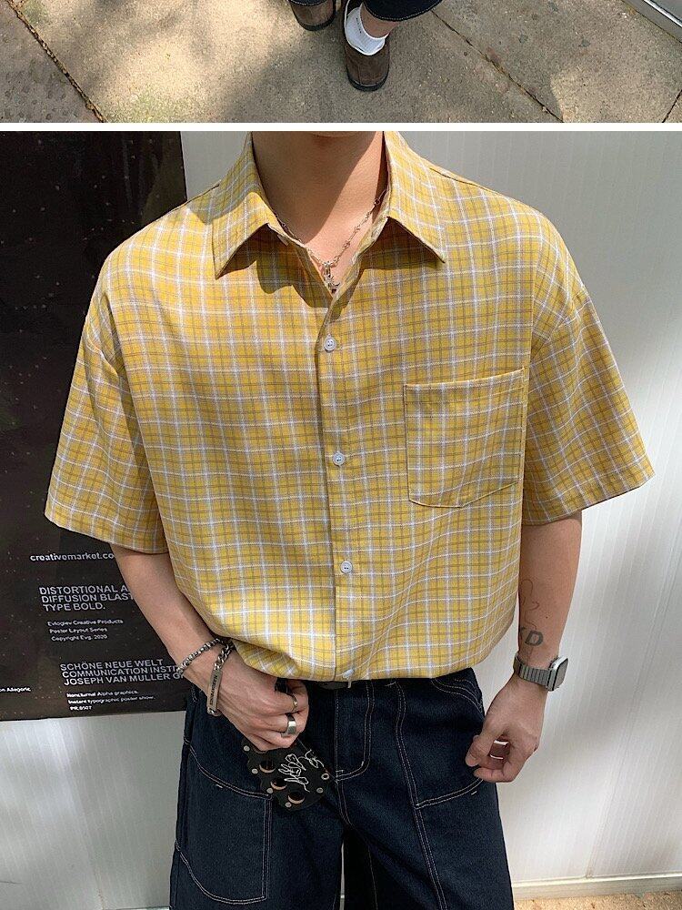 Camisa a cuadros retro de estilo americano para hombre, camisa informal holgada de marca de moda, novedad de verano de 2025