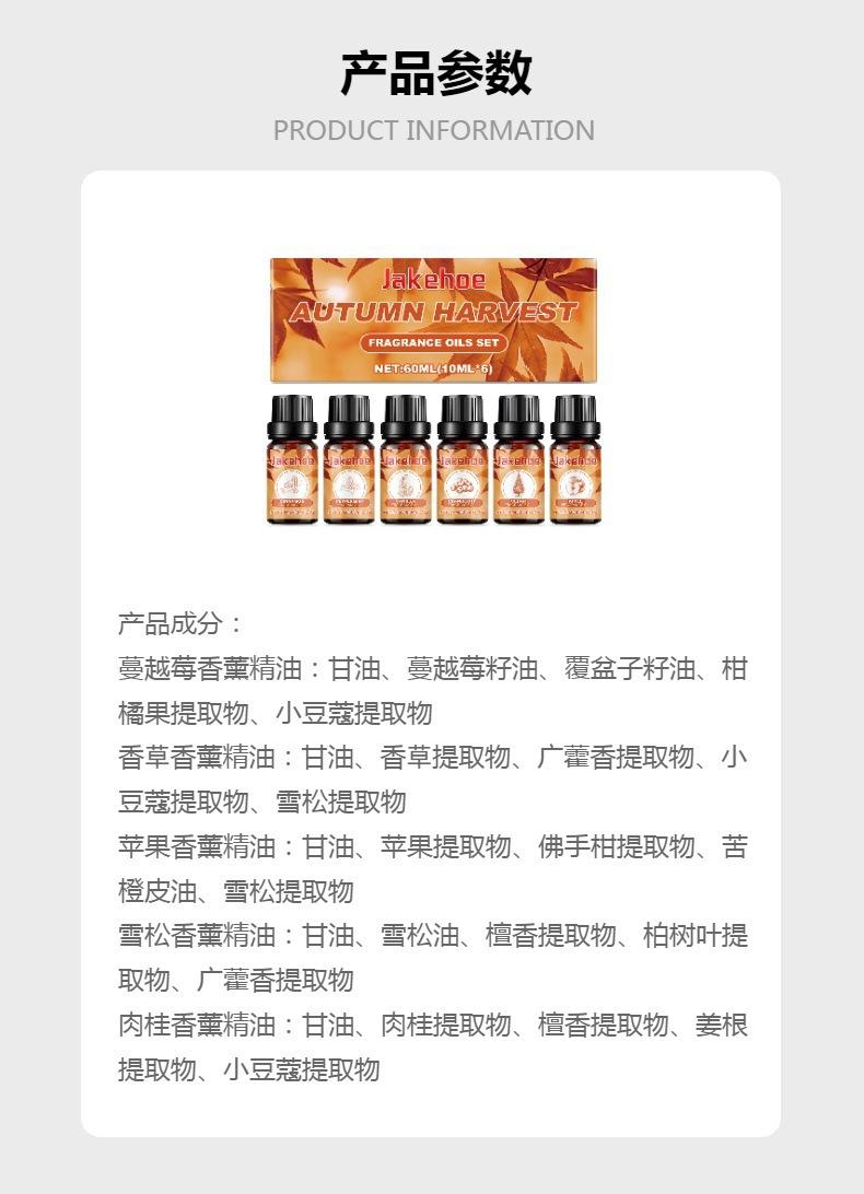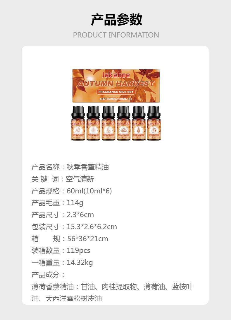 Aceite esencial de aromaterapia de otoño JAKEHOE, fragancia cálida y duradera, fragancia suave, aceite esencial de aromaterapia para ambientes cálidos en interiores.