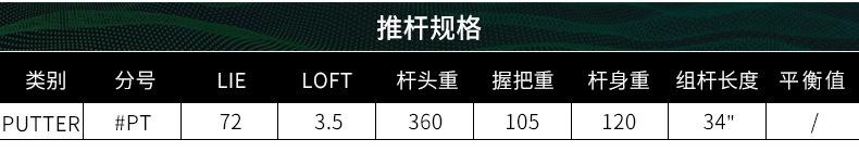 | Características | Putter de centro de gravedad bajo, alta tolerancia a errores y fácil control, adecuado para golfistas principiantes. | |||