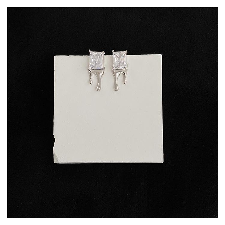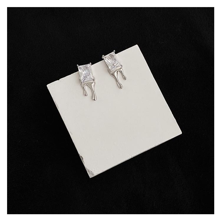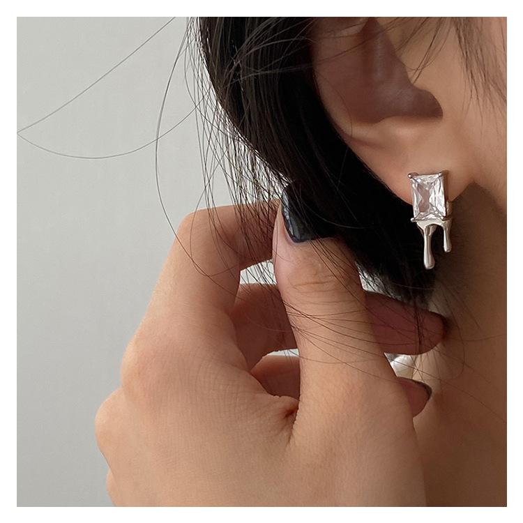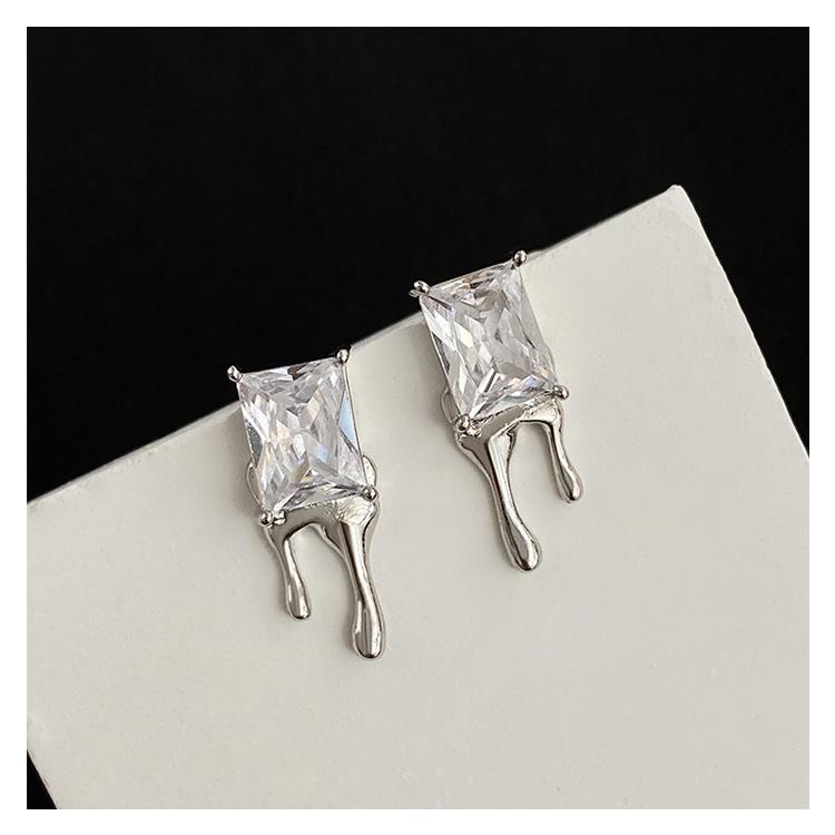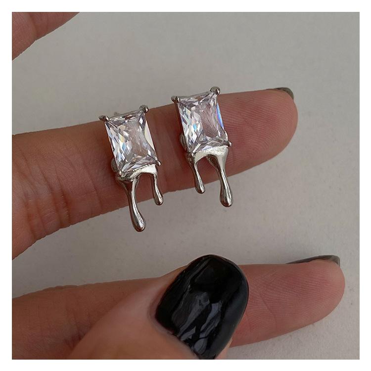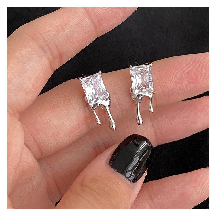 Compra Aretes Brillantes de Circonita Cuadrada para Mujer Minimalistas Viento Frío Forma de Gota Aguja de Plata S925 Aretes Hip Hop Distintivos al por mayor en Joom.pro