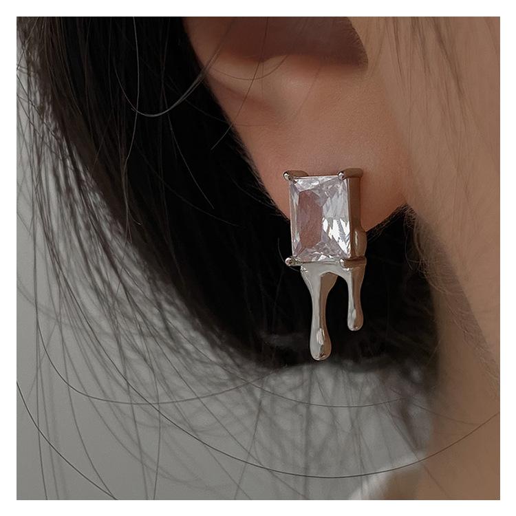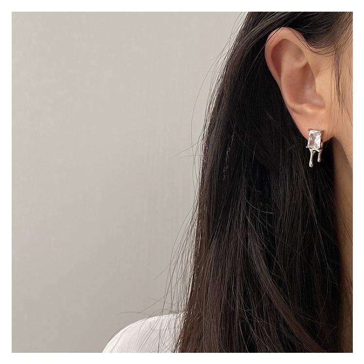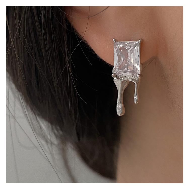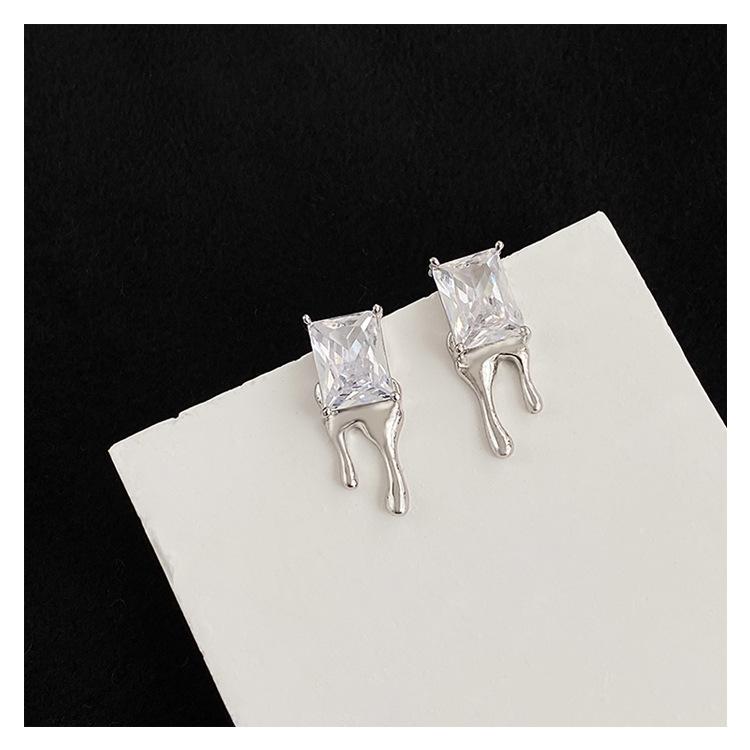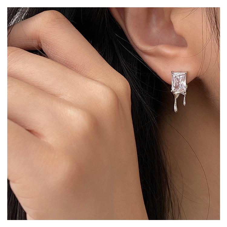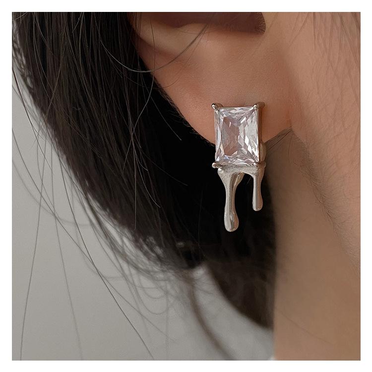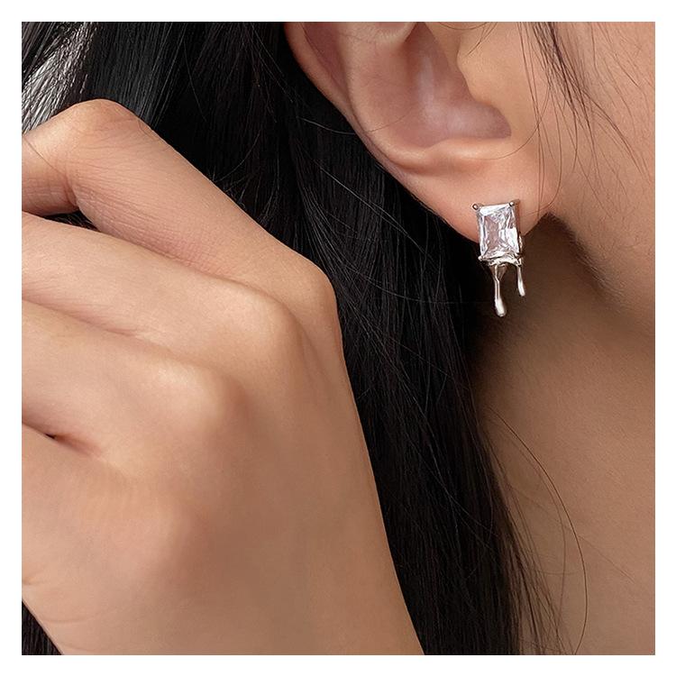 Compra Aretes Brillantes de Circonita Cuadrada para Mujer Minimalistas Viento Frío Forma de Gota Aguja de Plata S925 Aretes Hip Hop Distintivos al por mayor en Joom.pro
