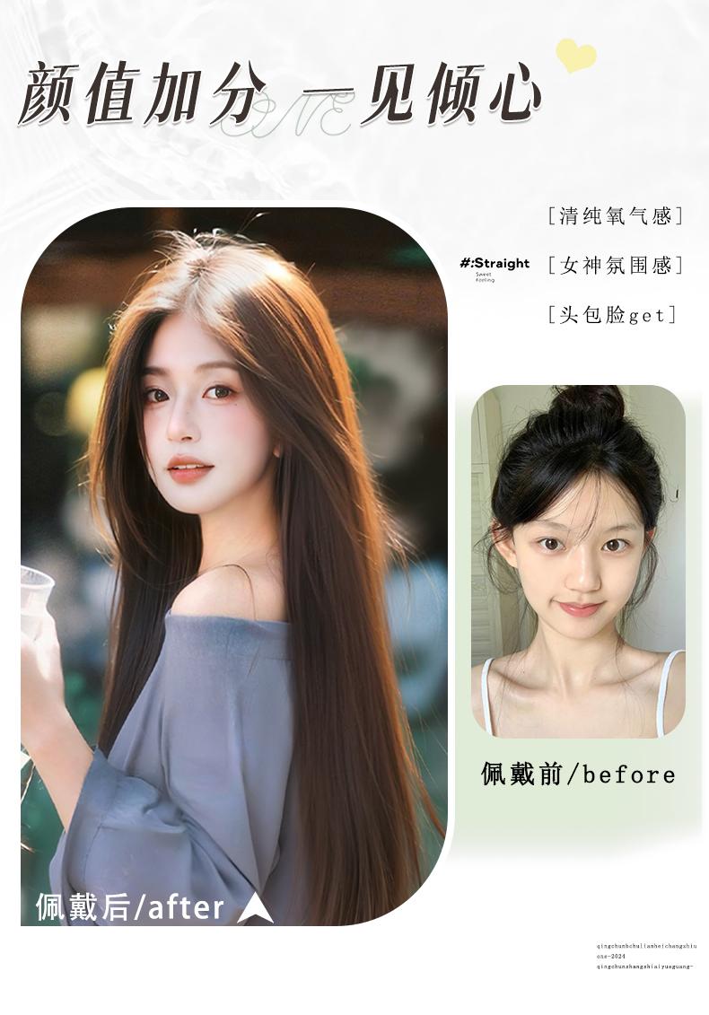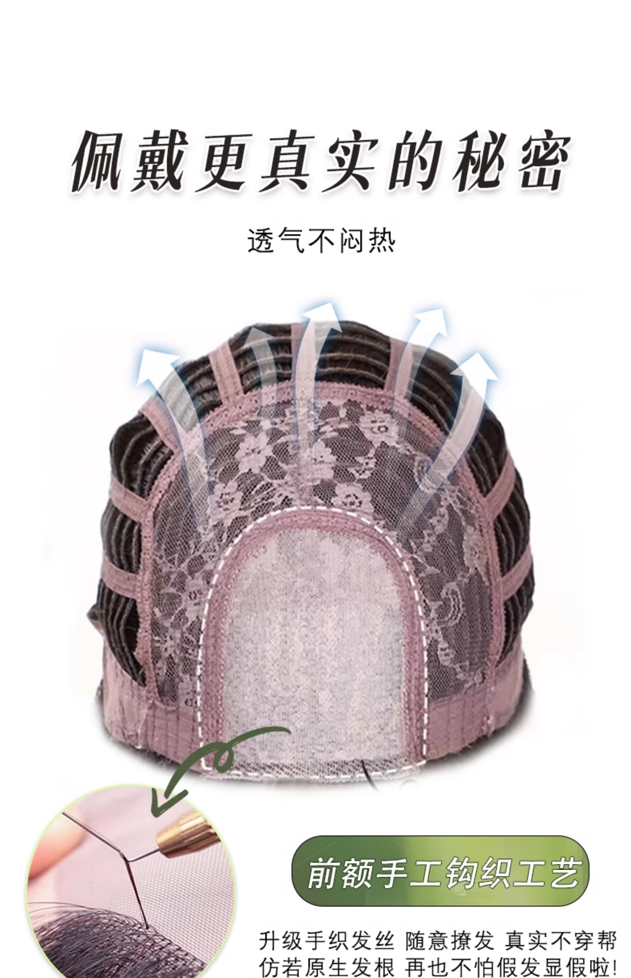 Temperament middle part [cold brown] + hair net, Temperament mid-range style [cold brown] + five-piece care se...