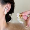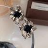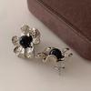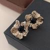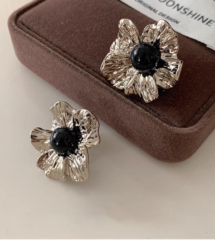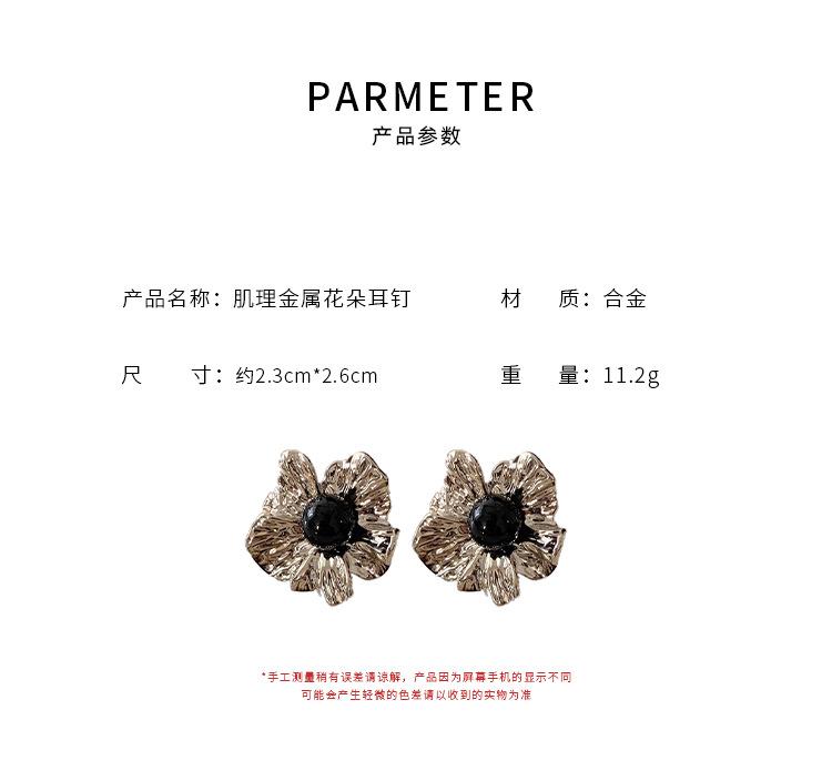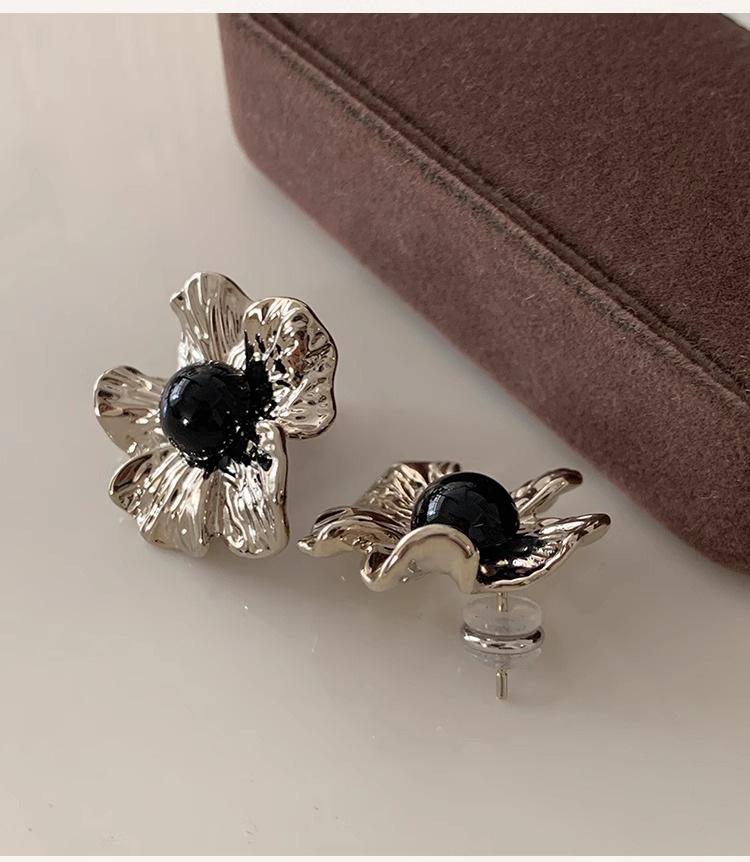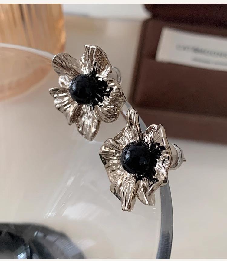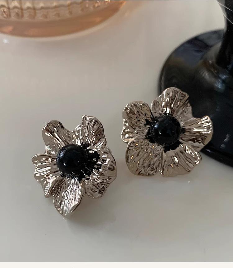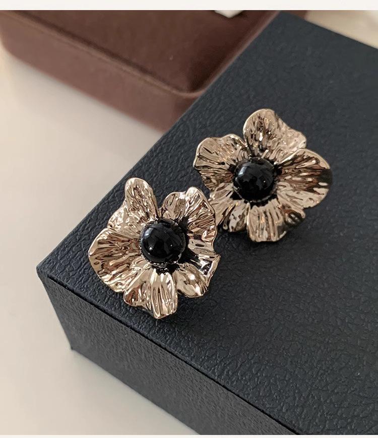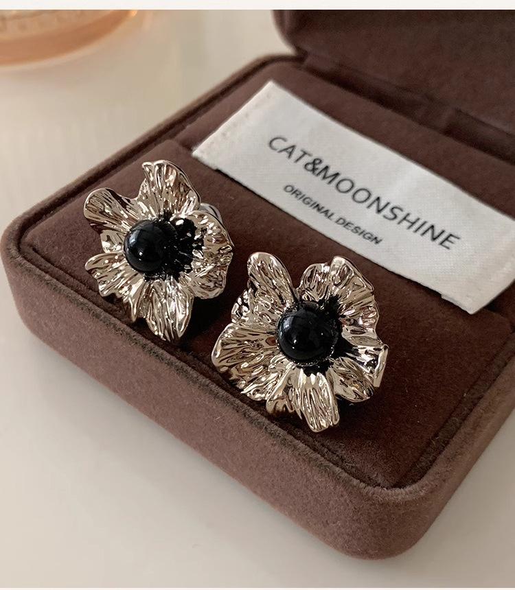 Pendientes de flores de metal con textura sencilla para mujer, ligeros, de lujo, de alta gama, con perlas negras, estilo vintage.