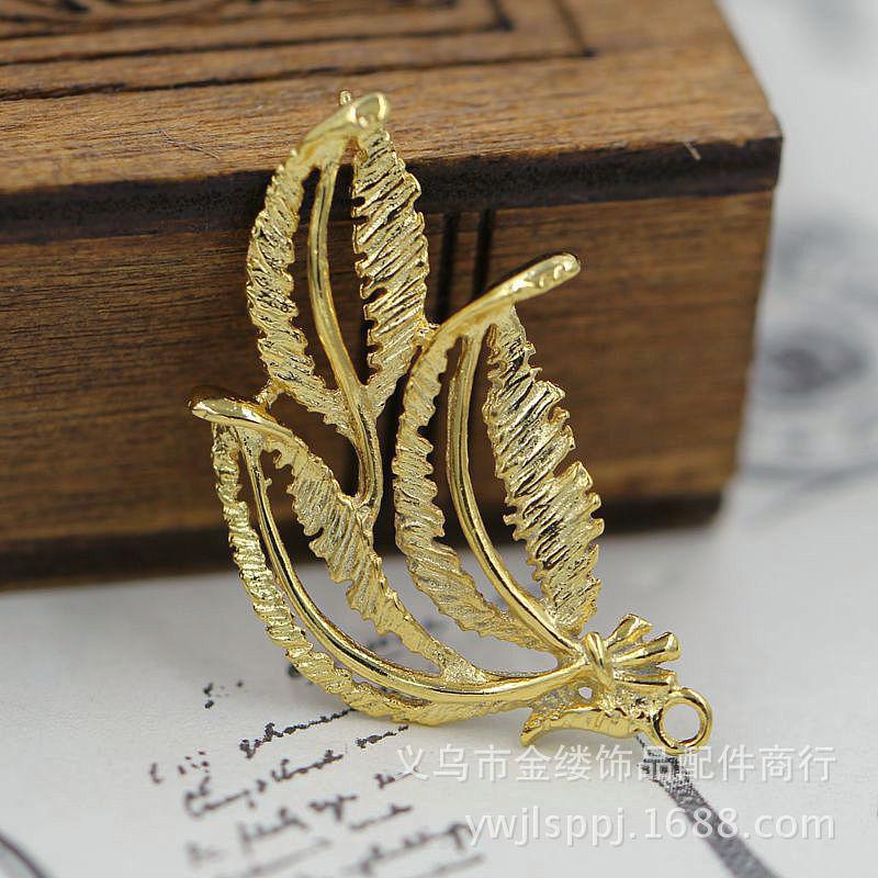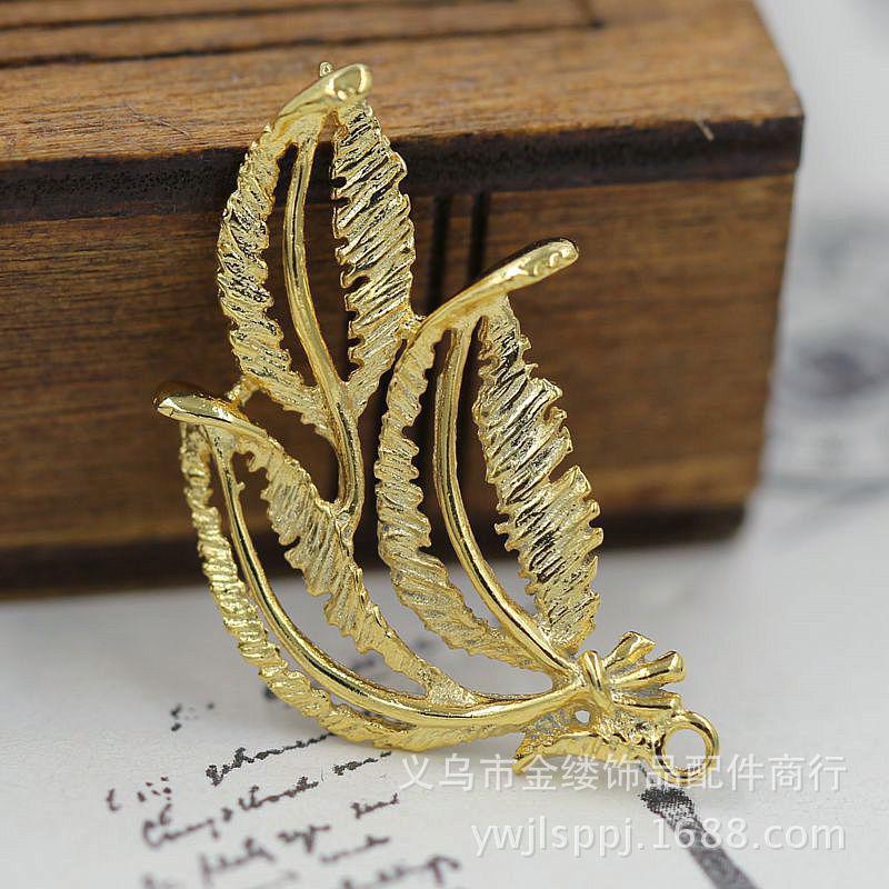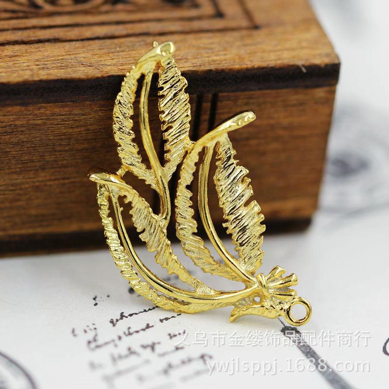 Joyería DIY, horquilla nupcial de oro auténtico, material de cobre, pulsera, collar, pendientes, accesorios de cuentas, colgante de pluma A652