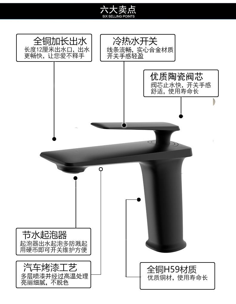 Grifo de lavabo de comercio electrónico transfronterizo, lavabo de agua fría y caliente debajo del lavabo nuevo Negro Oro Rosa Blanco una generación de cabello