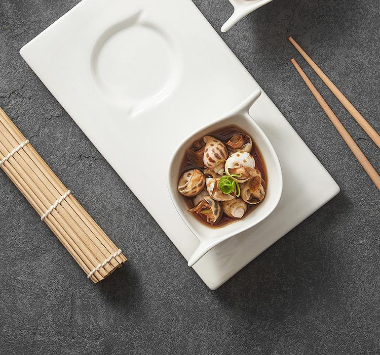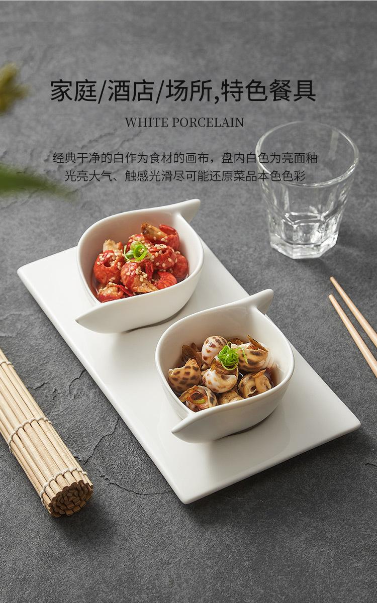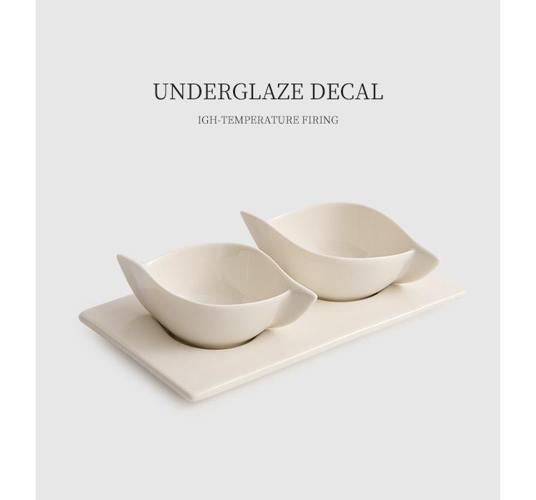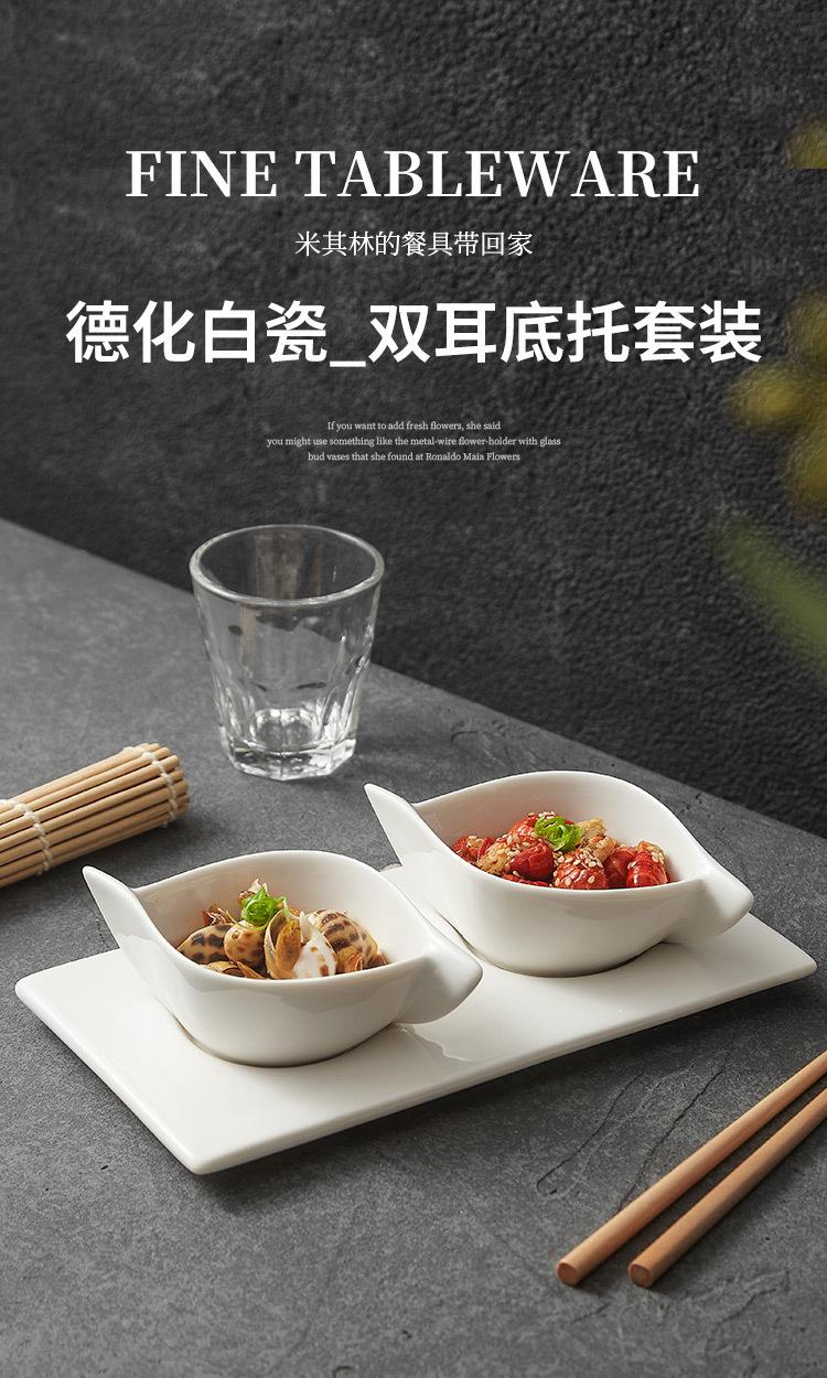 Plato de Cerámica Dehua Plato de Postre Plato para el Hogar Lujo Ligero de Alta Gama Plato para Snacks Plato para Salsa de Hot Pot Traje de Base Binaural