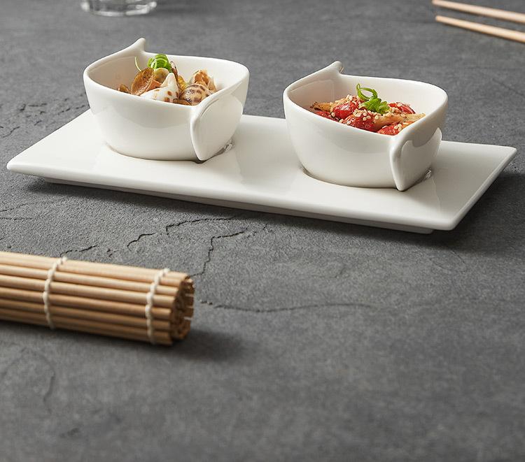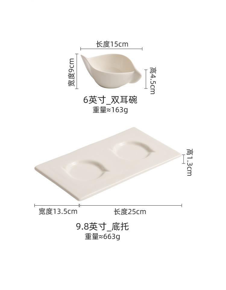 6inch yuanyang small bowl, 9.8inch rectangular bottom dish, Yuanyang dim sum bowl set [2 bowls + 1 bottom plate]