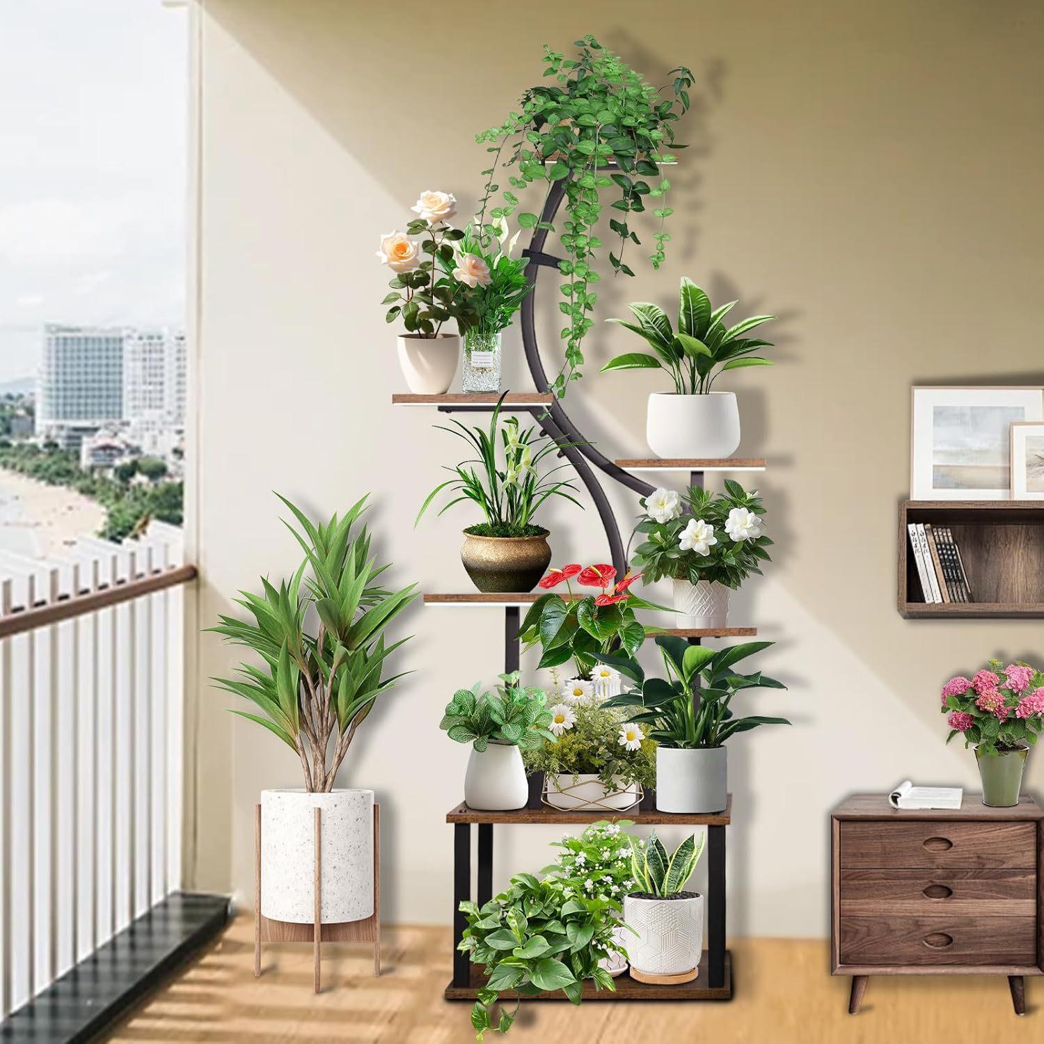 Estante para flores multicapa para almacenamiento interior, de hierro forjado, para sala de estar, dormitorio, balcón, macetas con flores carnosas
