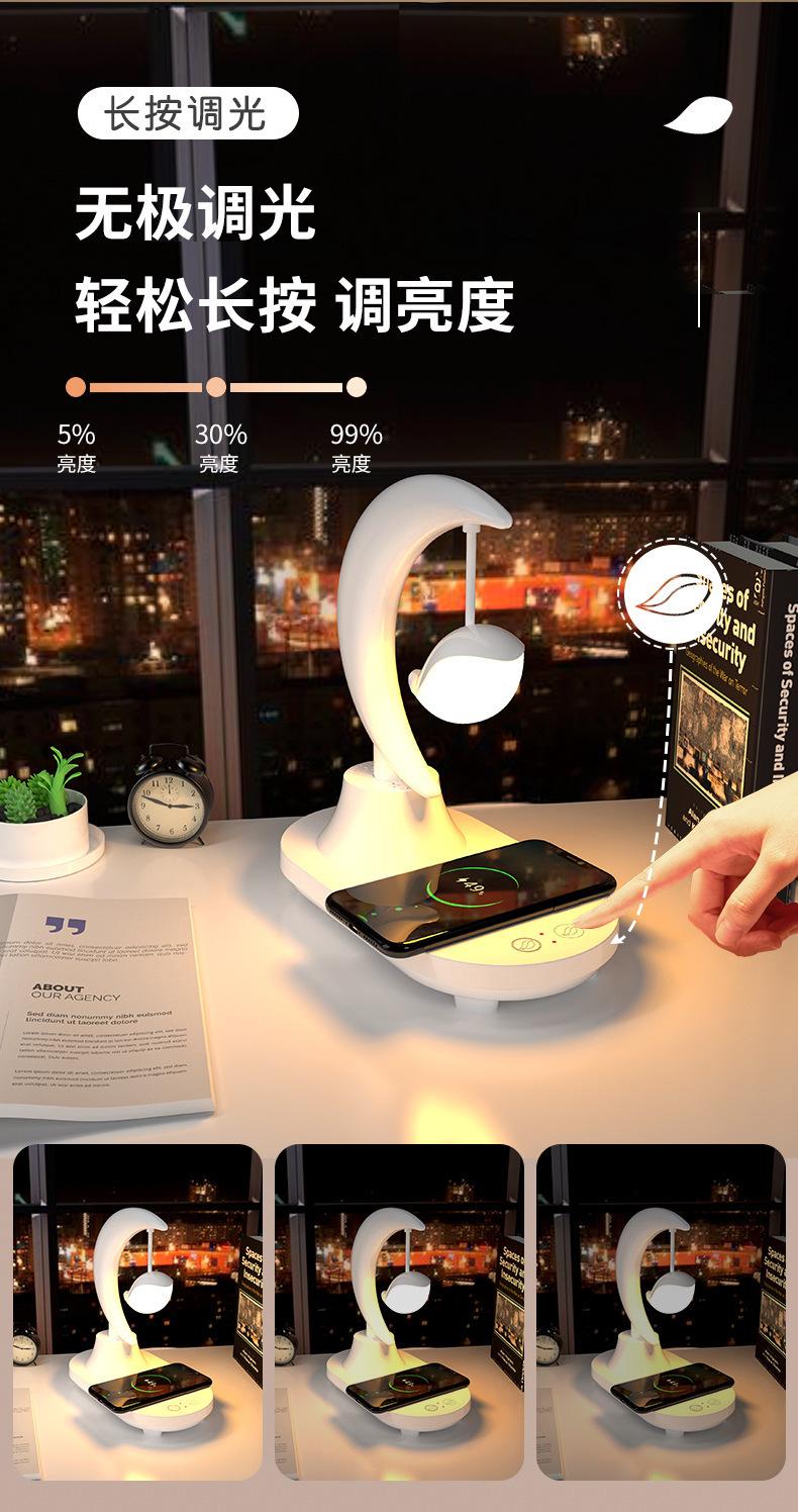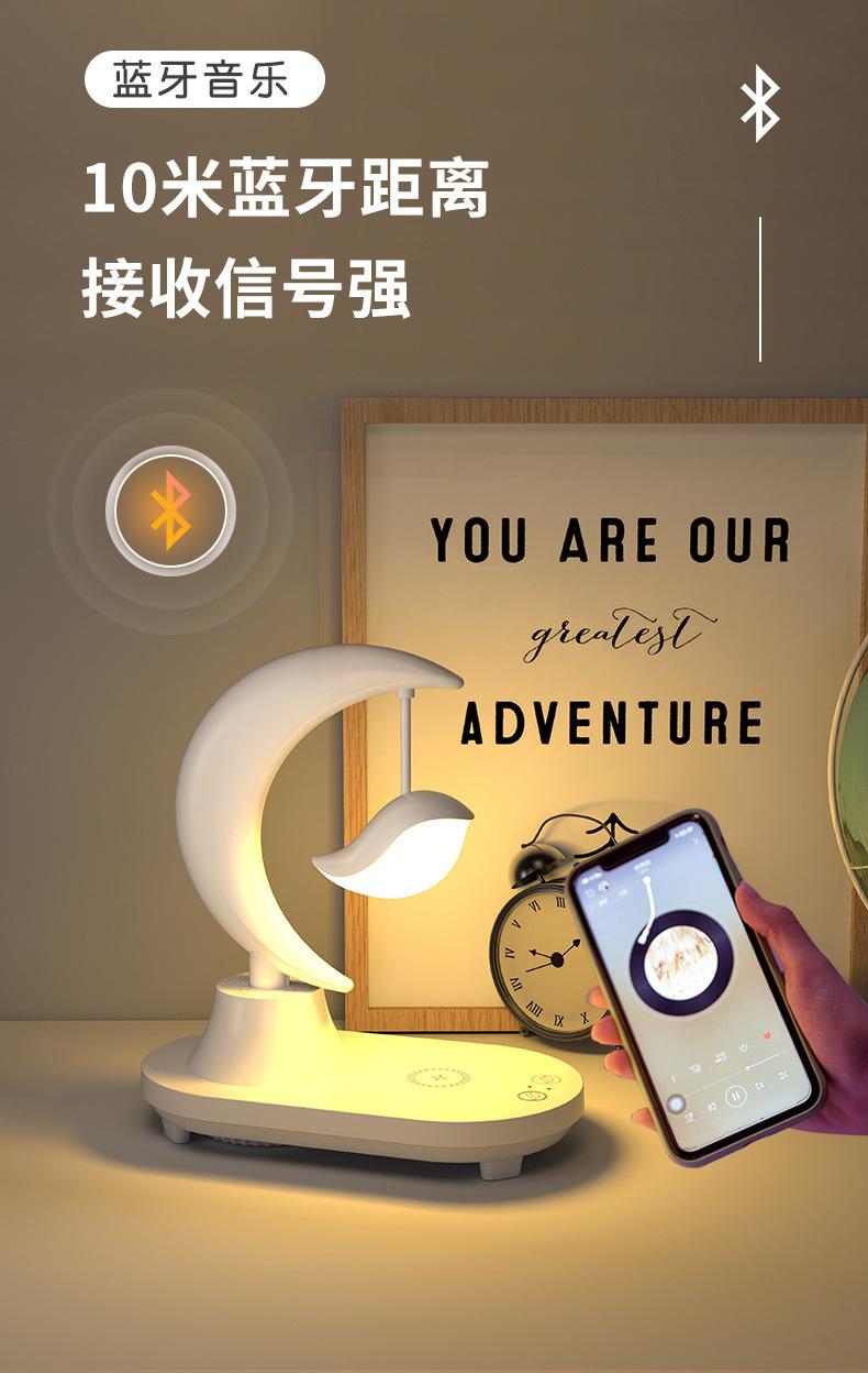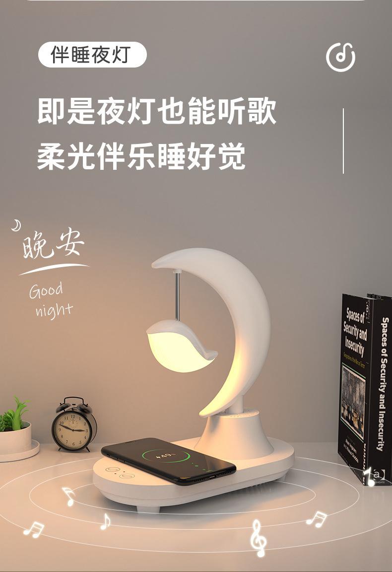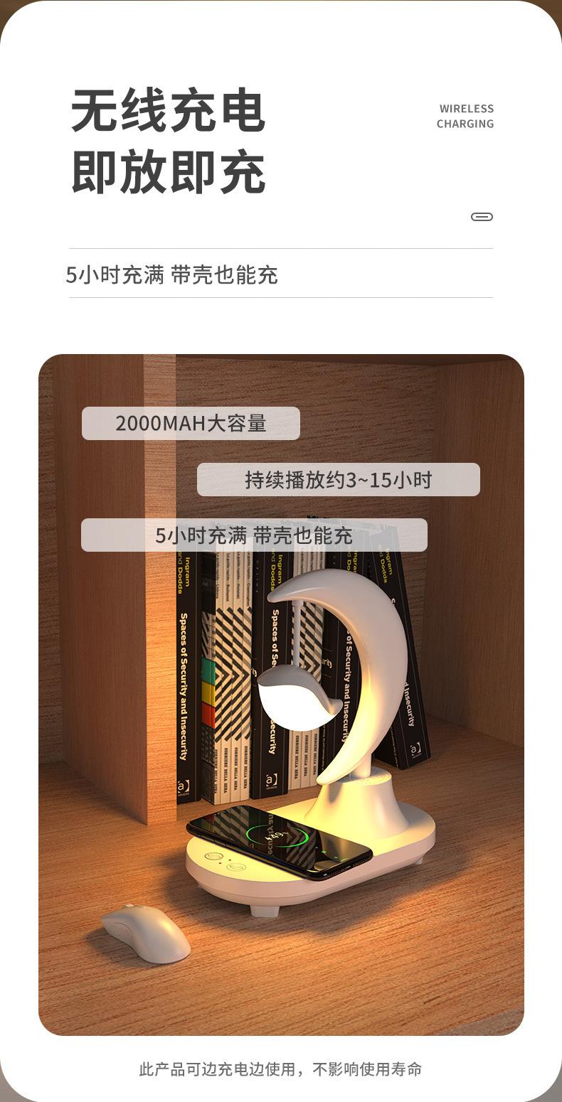 Características: batería incorporada, con función de altavoz Bluetooth, 8 colores de efectos de iluminación para elegir, luz nocturna blanca y amarilla conmutable, con función de carga inalámbrica de teléfono móvil.