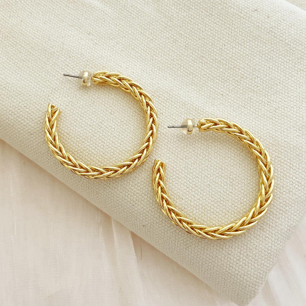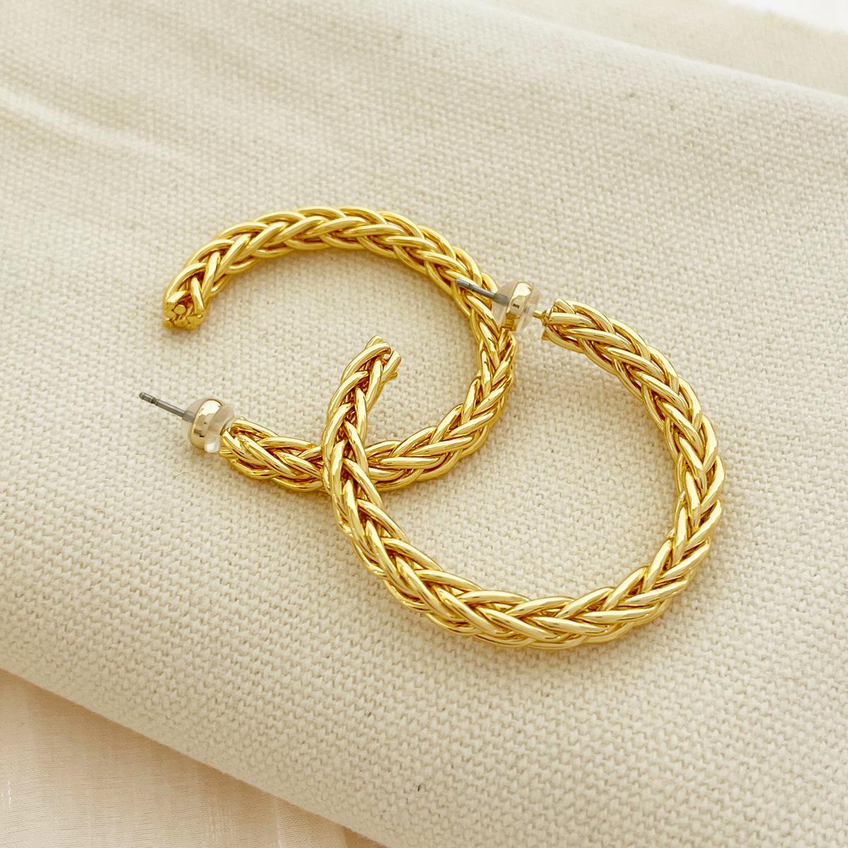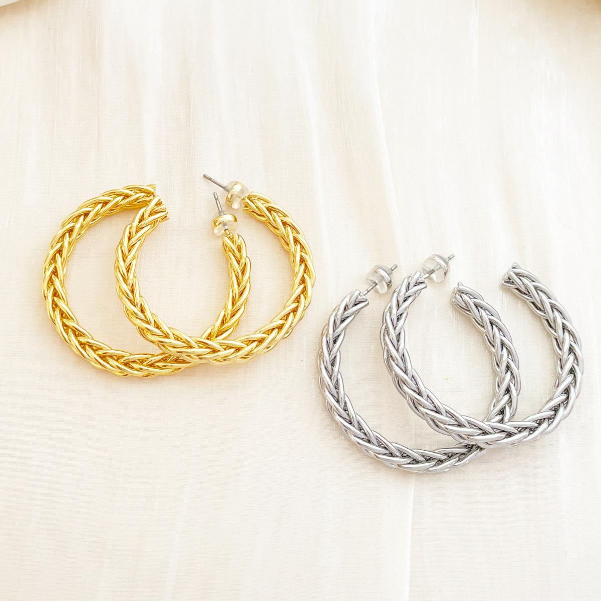 Nuevos Pendientes de Mujer Venta Caliente Transfronteriza Europeo y Americano Ins Estilo Simple y Cool Pendientes de Moda Cobre Chapado en Oro Trenzados Pendientes Grandes