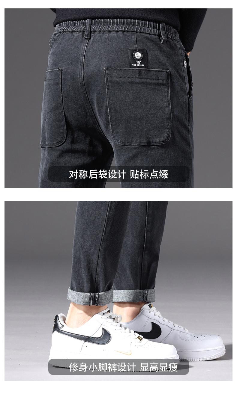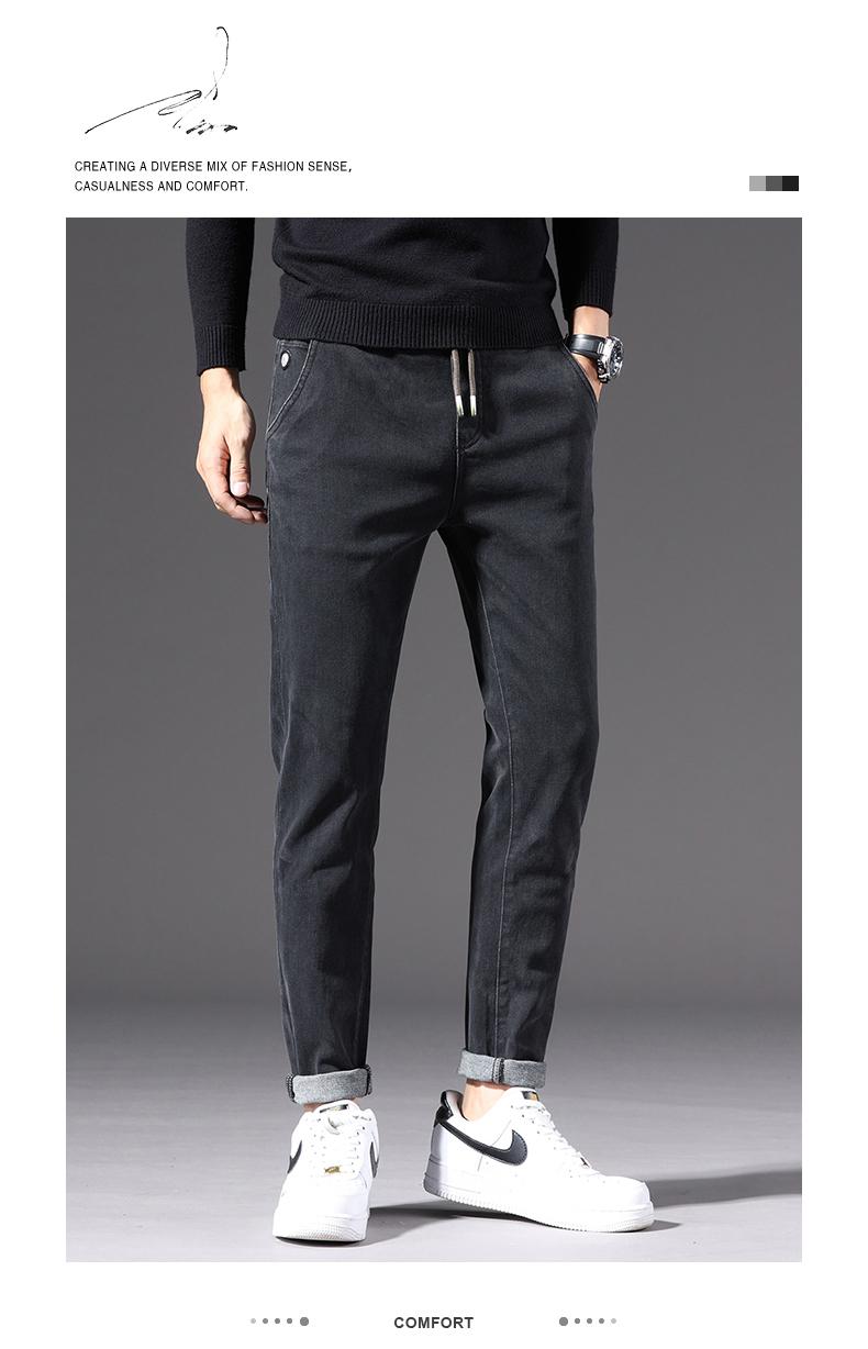 Jeans para Hombre 2024 Primavera y Otoño Algodón Stretch Corte Slim Ajustado Pantalones Cónicos para Jóvenes y Mediana Edad con Cintura Elástica Calidad Casual Pantalones Largos