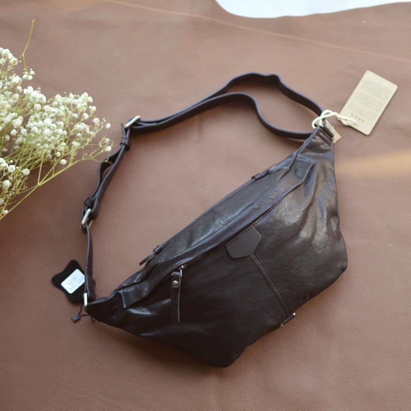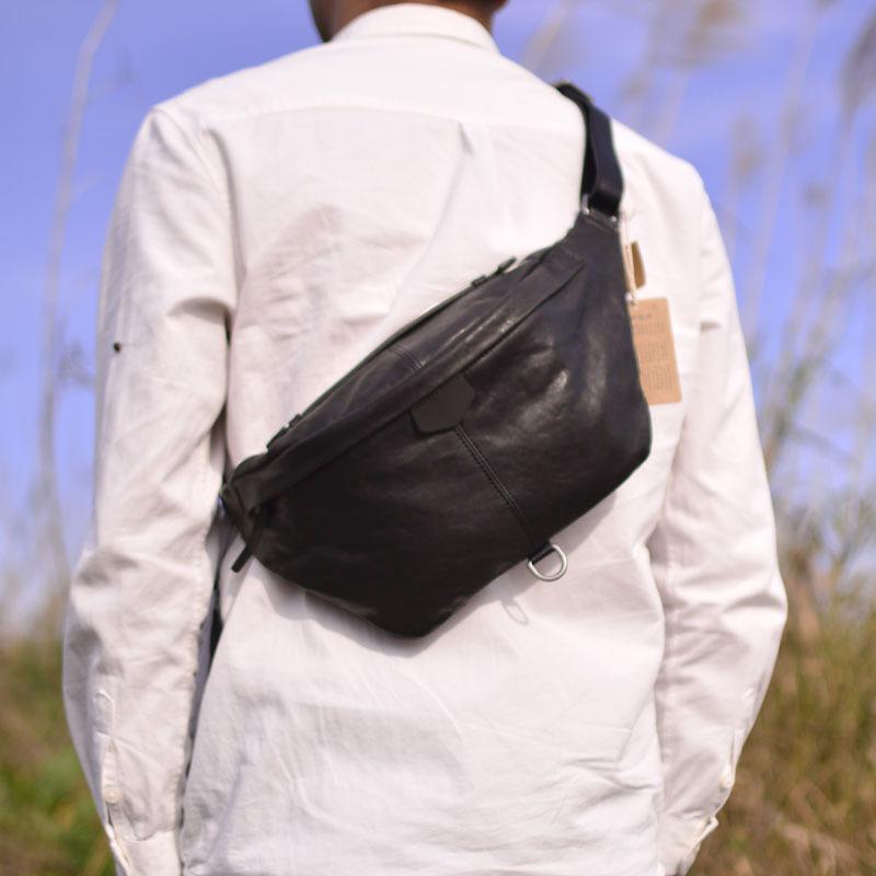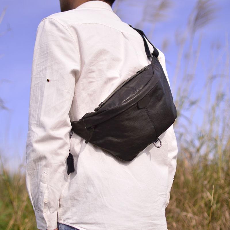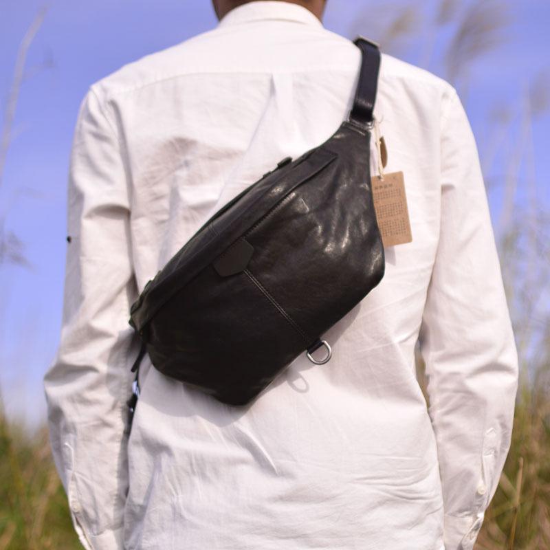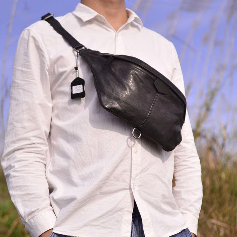 Nueva Bolsa de Pecho de Cuero Genuino Bolsa de Hombro Oblicua para Hombre de Cuero Genuino Bolsa Simple para Hombre Riñonera para Montar Bolsa Cruzada Multifuncional