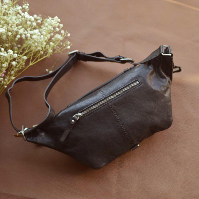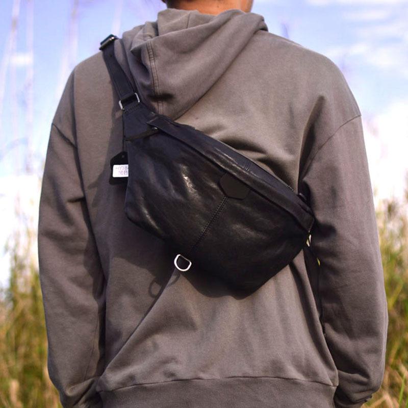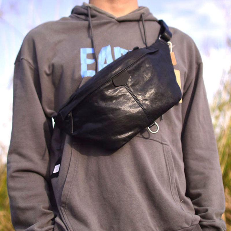 Nueva Bolsa de Pecho de Cuero Genuino Bolsa de Hombro Oblicua para Hombre de Cuero Genuino Bolsa Simple para Hombre Riñonera para Montar Bolsa Cruzada Multifuncional