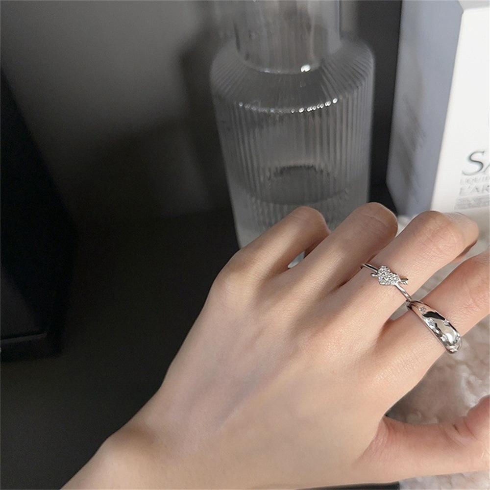 Anillo de Circonita Micro-incrustada de Estrella para Mujer, Anillo de Dedo Ajustable de Estilo Frío Simple, Popular en Internet, Estrella Combinable con Todo, Anillo Abierto para Hombre