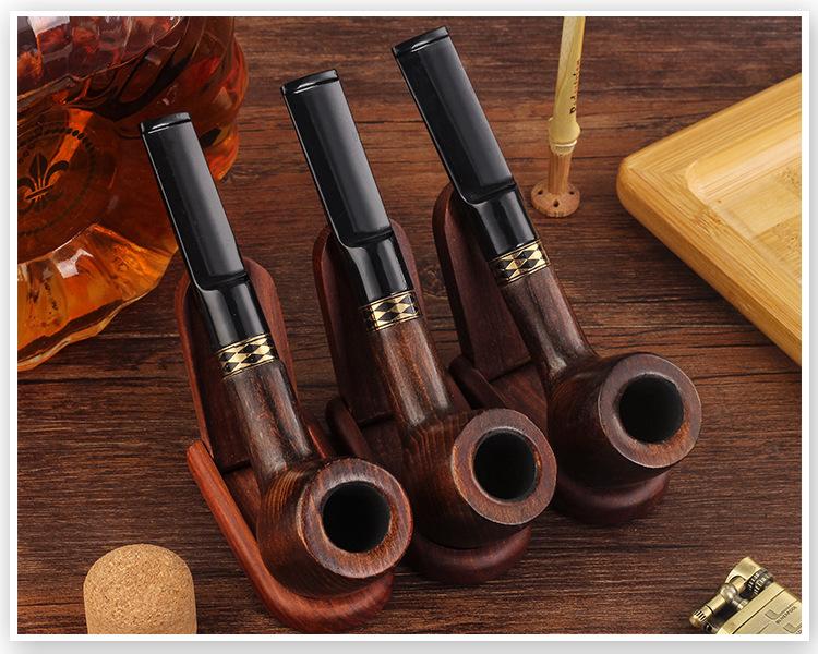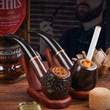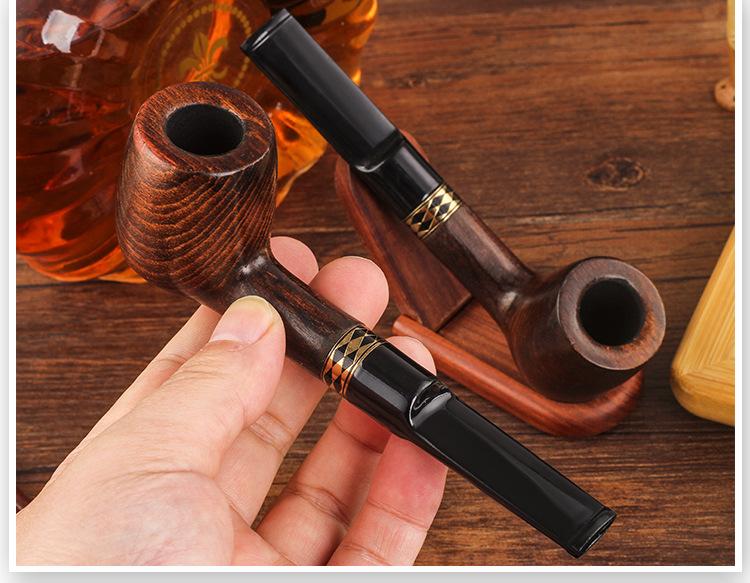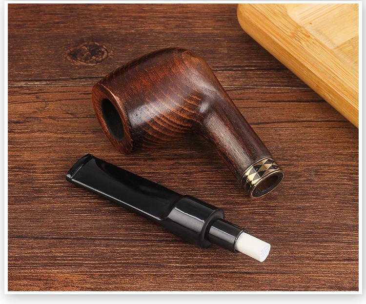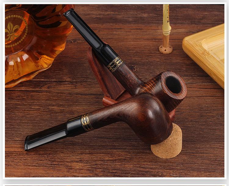 Pipa de ébano para hombre tallado 9mm filtro de carbón activado pipa portátil a la antigua pipa de tabaco de madera maciza