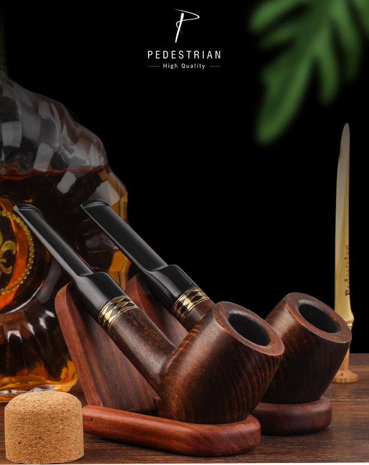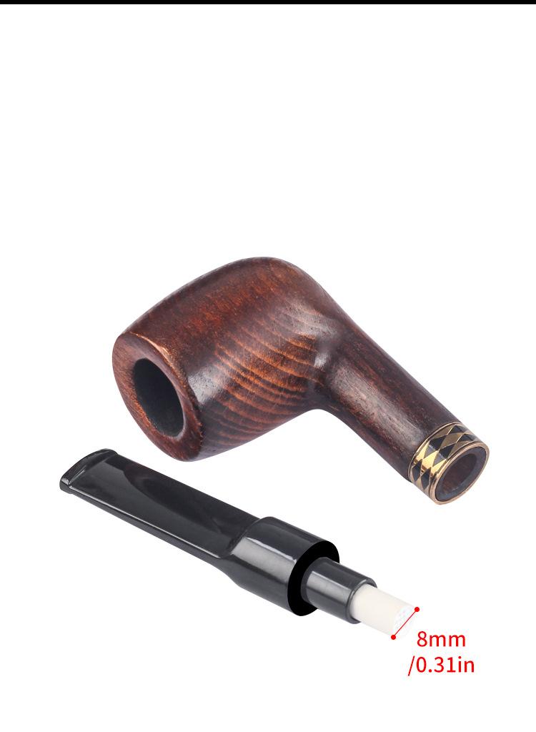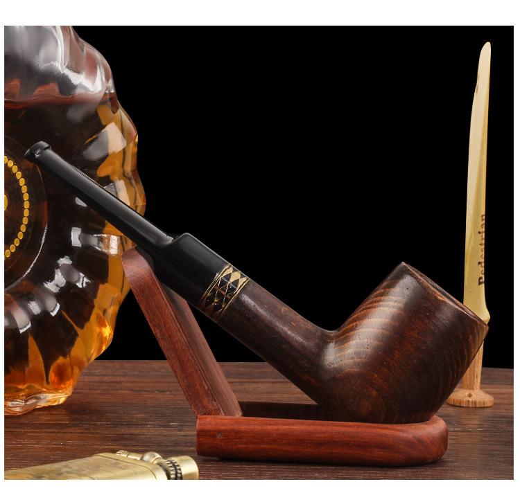 Pipa de ébano para hombre, juego completo de madera maciza, cazoleta para pipa de tabaco, conducto de 9 mm, pipa retro antigua, portátil