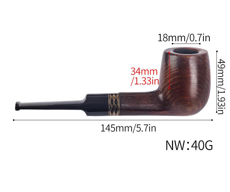 Pipa de madera maciza para hombre, pipa de tabaco de ébano tradicional hecha a mano a la antigua, latón grueso y delgado, tabaco de tres propósitos, cazoleta para tabaco