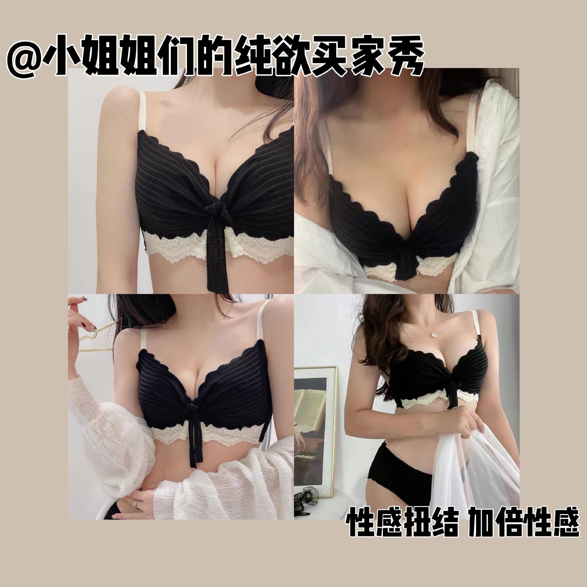 Ropa interior para mujeres con senos pequeños, Conjunto de brasier de encaje push-up, Sin varillas, Transpirable, Senos secundarios, Anticaída, Pecho plano, Encaje sexy