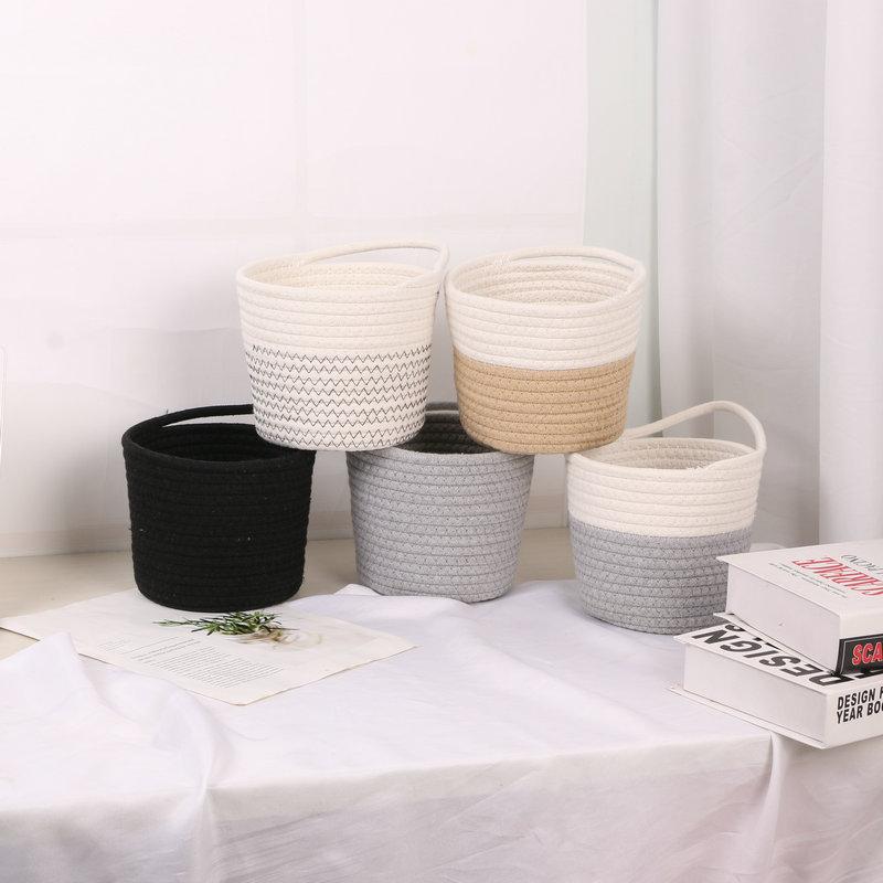 Cesta Tejida de Cuerda de Algodón Cesta para Maceta Cesta para Flores Cesta para Flores Redonda Cesta de Almacenamiento Decoración del Hogar Cesta para Ropa Sucia Cesta para Ropa Sucia Cesta de Almacenamiento