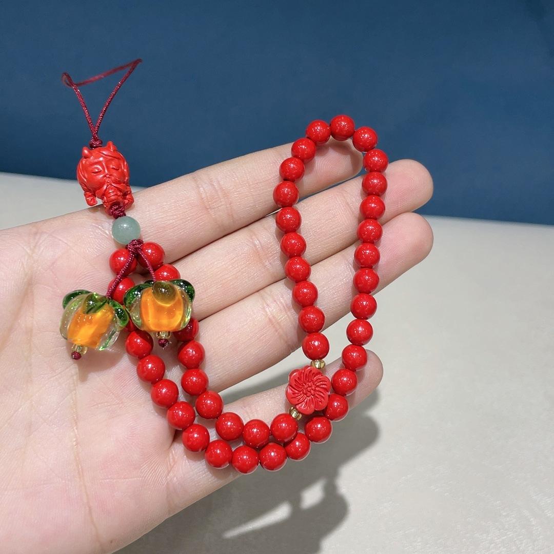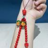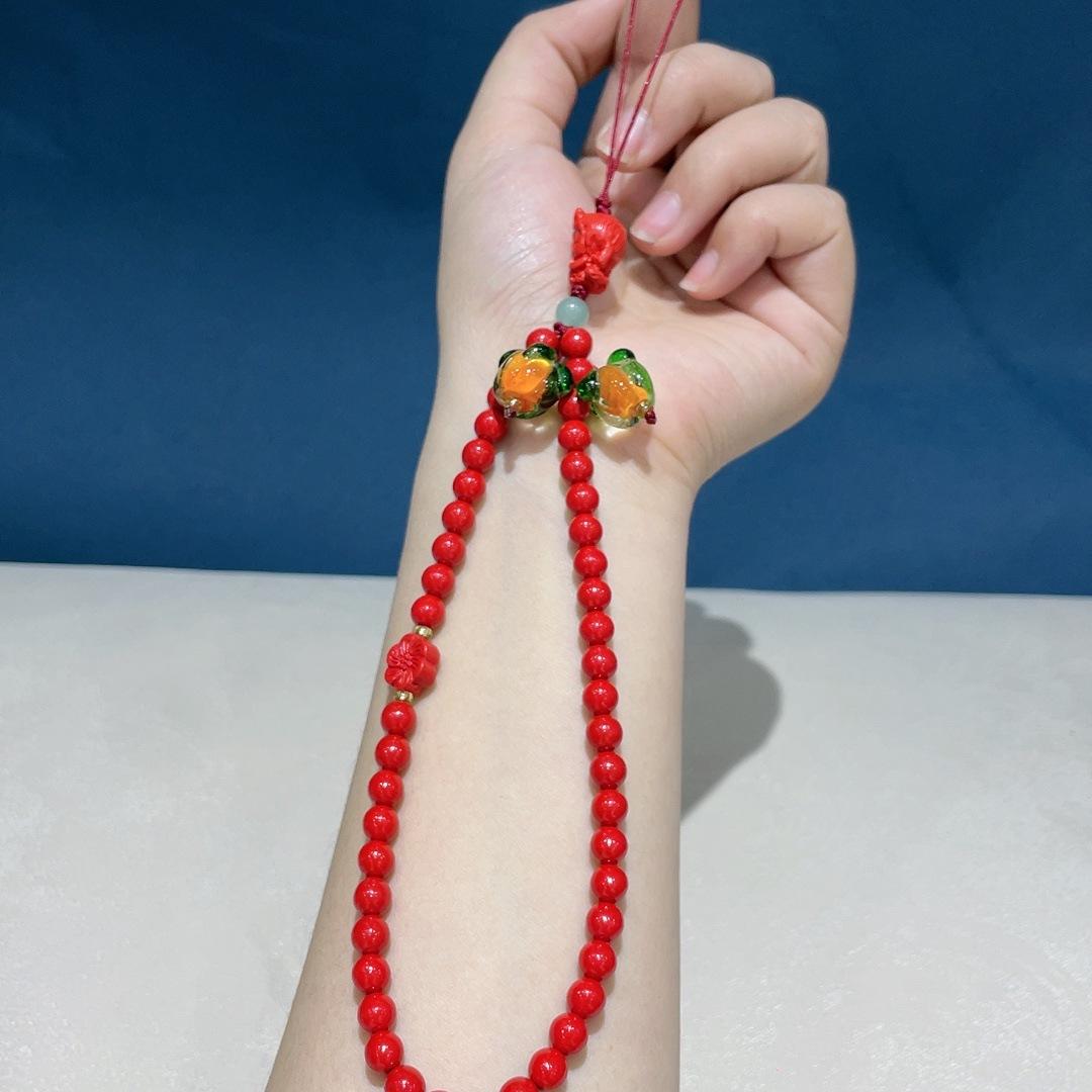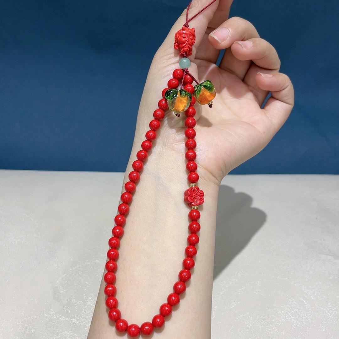 Exquisito llavero con colgante para teléfono móvil de arena roja cinabrio con caqui, ideal para bebés y hombres y mujeres.
