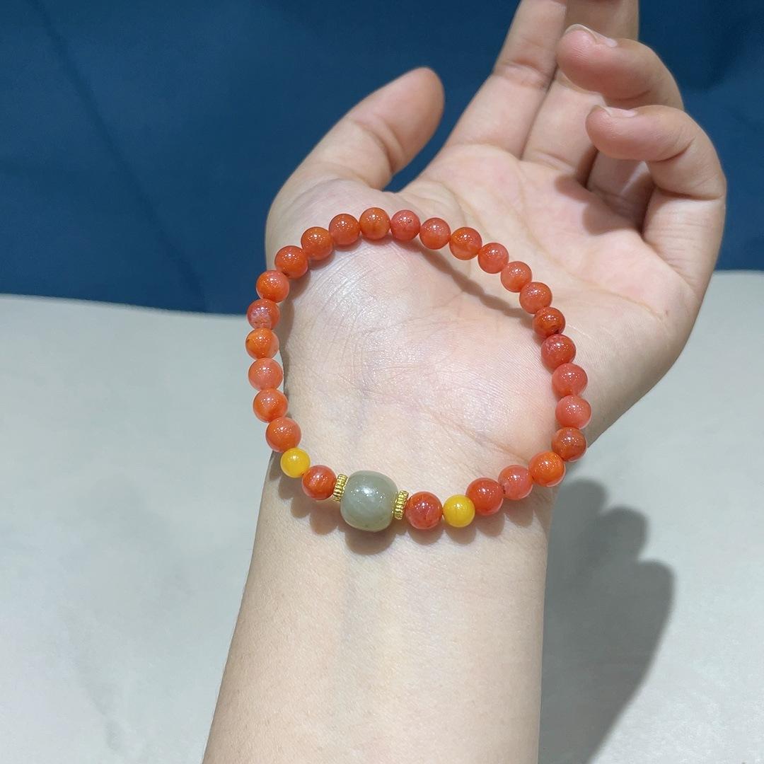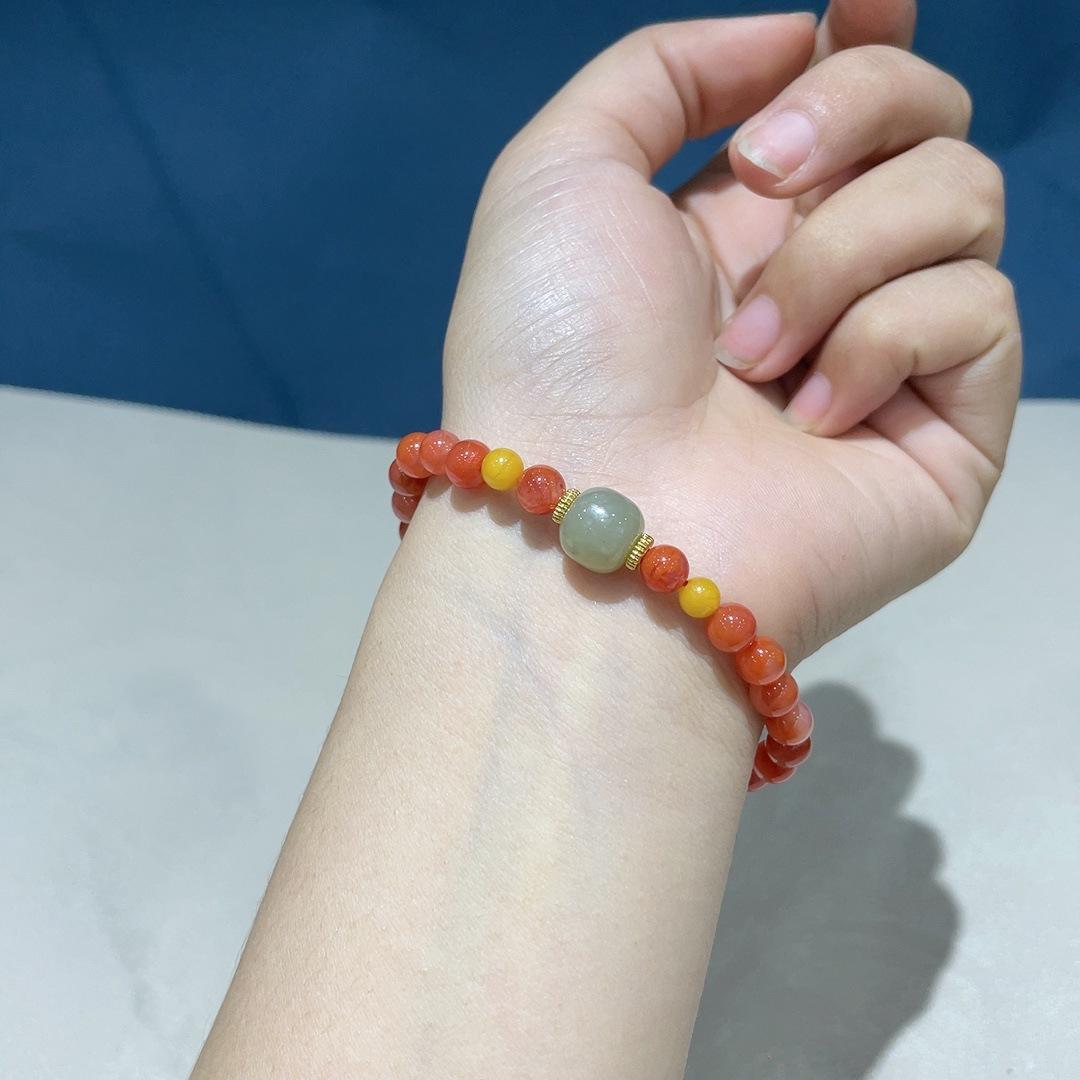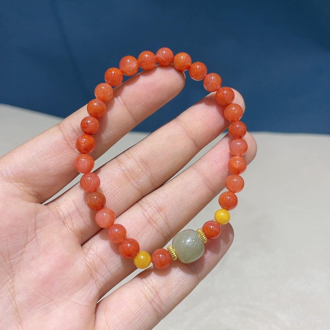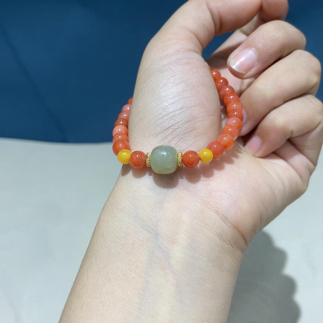 Cuentas Redondas de Ágata Nanhong con Cuentas Espaciadoras de Jade Hetian de Estilo Antiguo, Pulsera Sencilla de Moda y Lujo Ligero