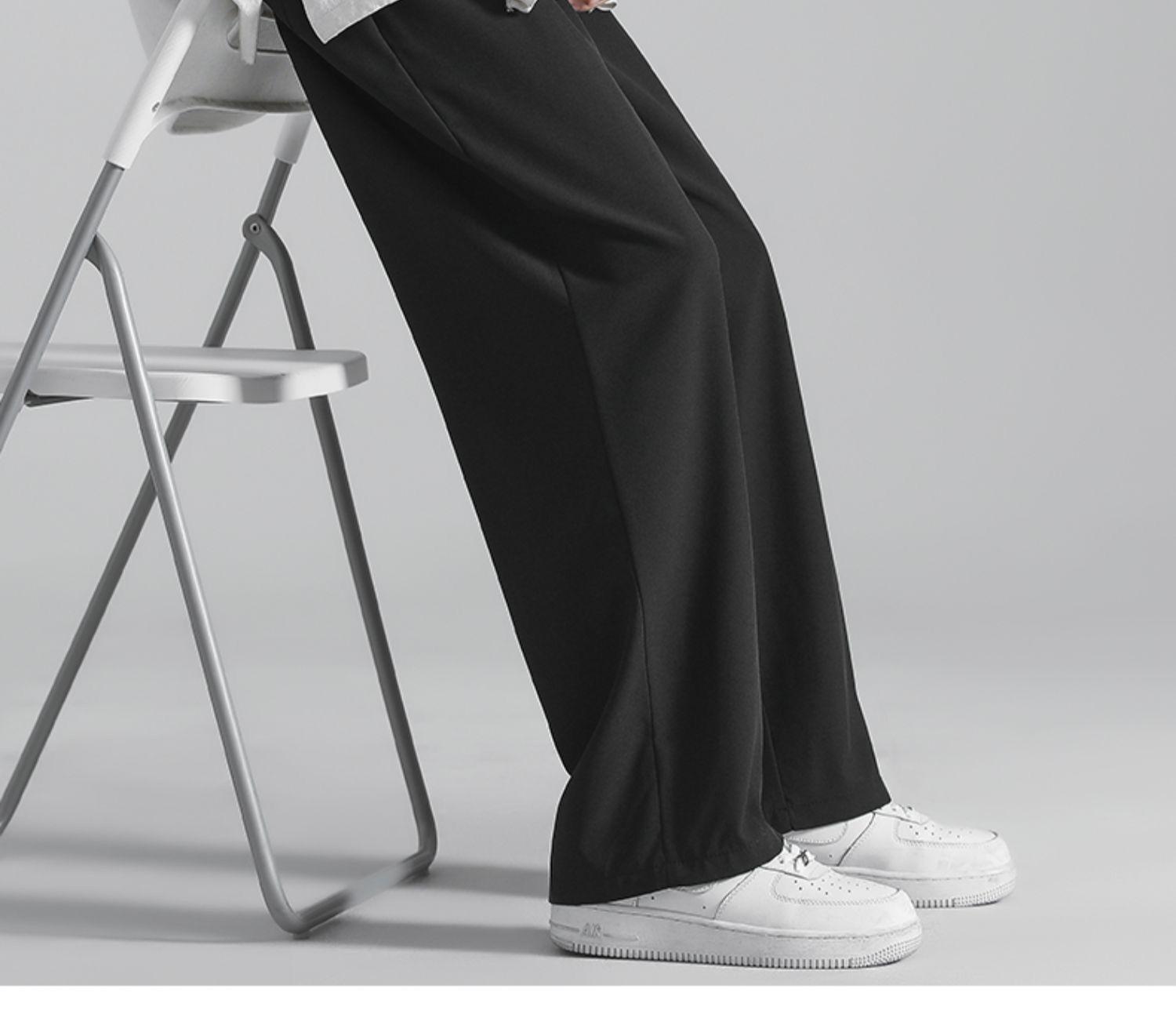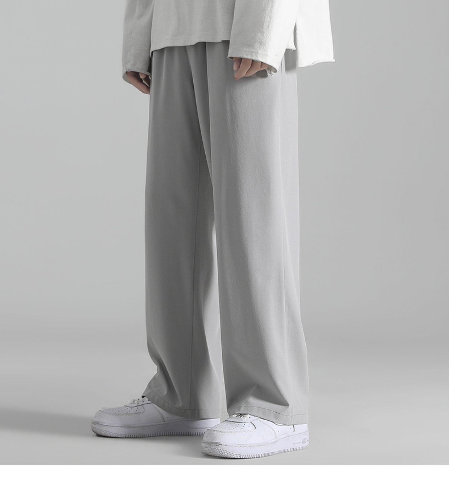 Pantalones de Hombre Verano Delgados Estilo Coreano Modernos Sueltos Deportivos Casuales Pierna Ancha Rectos Drapeados Pantalones de Seda Helada