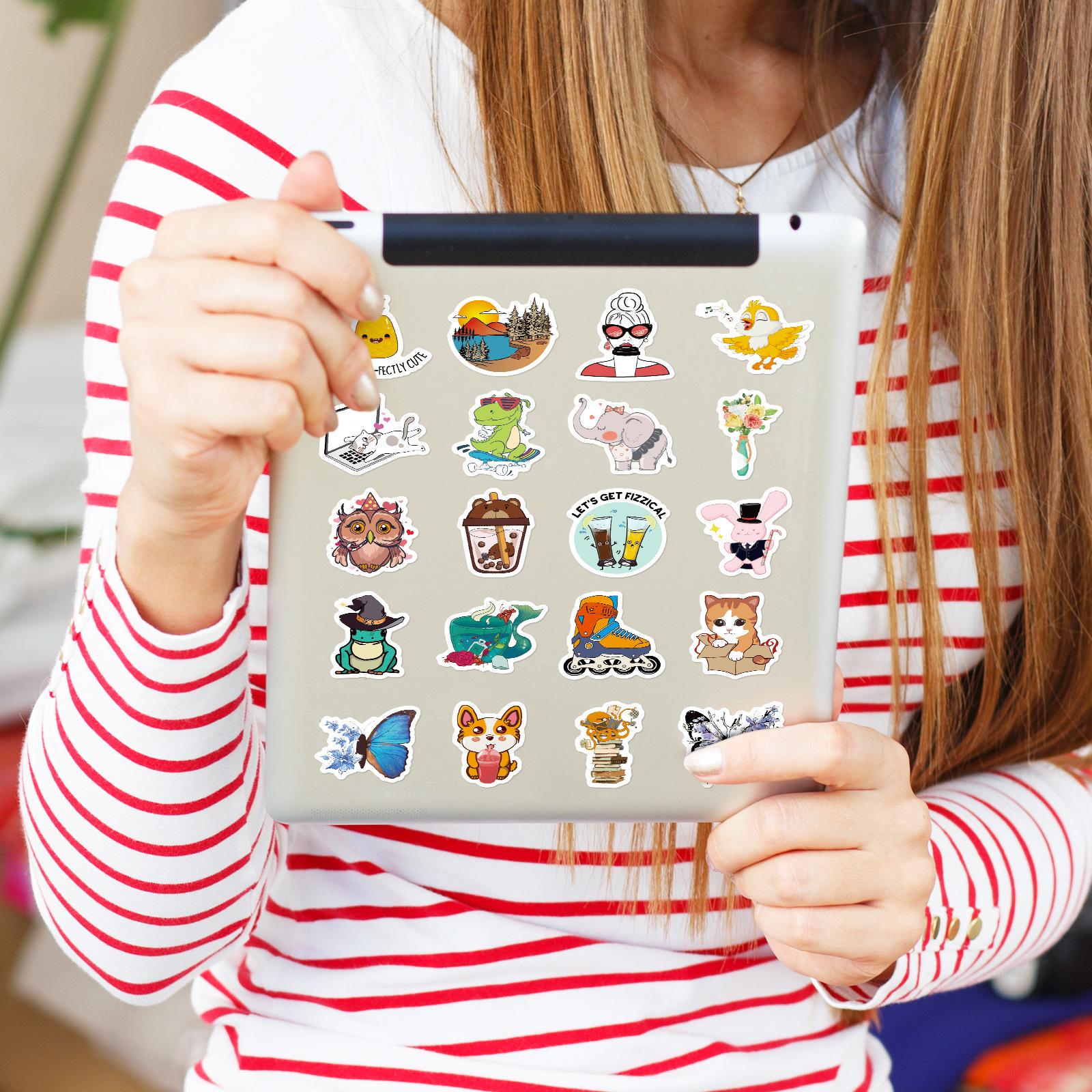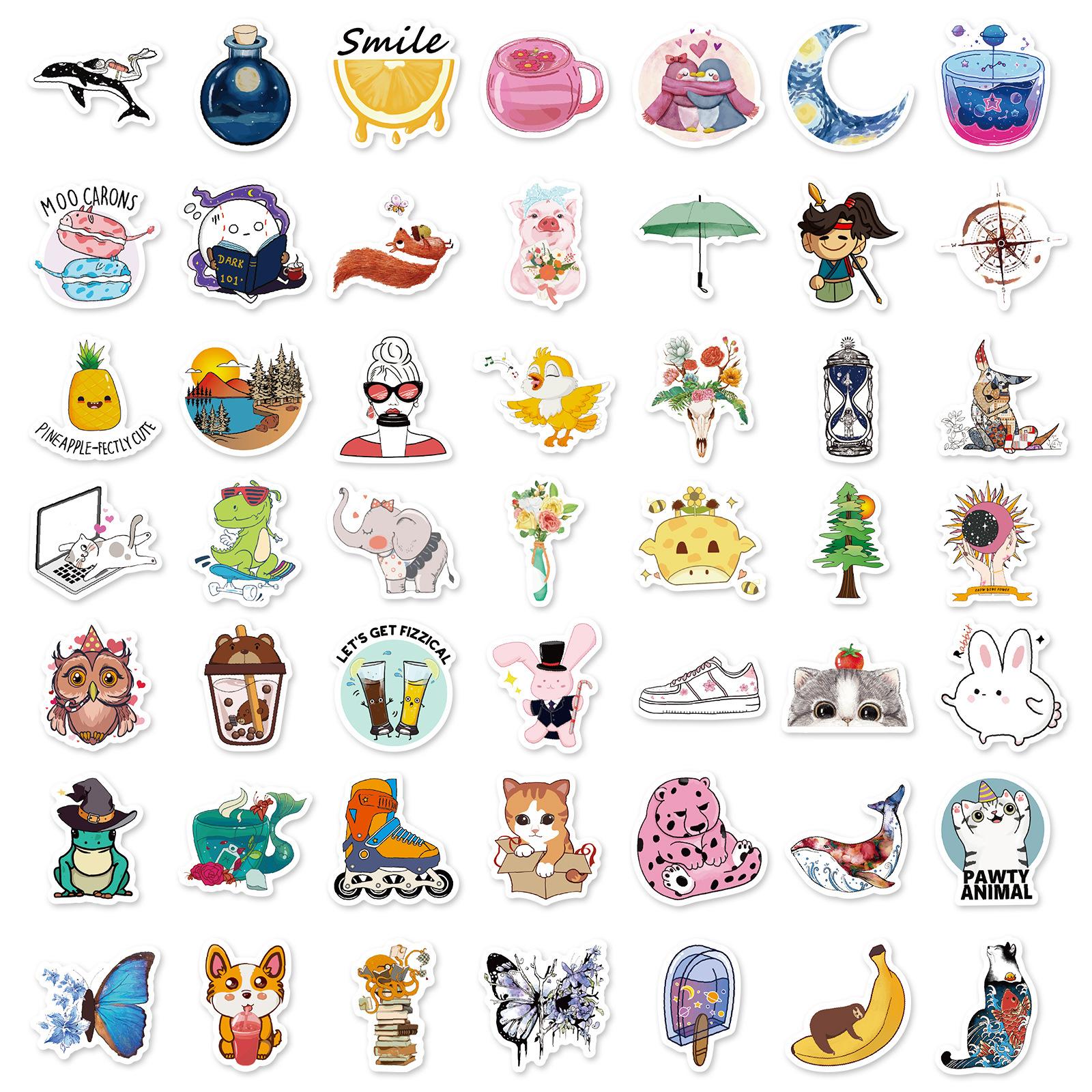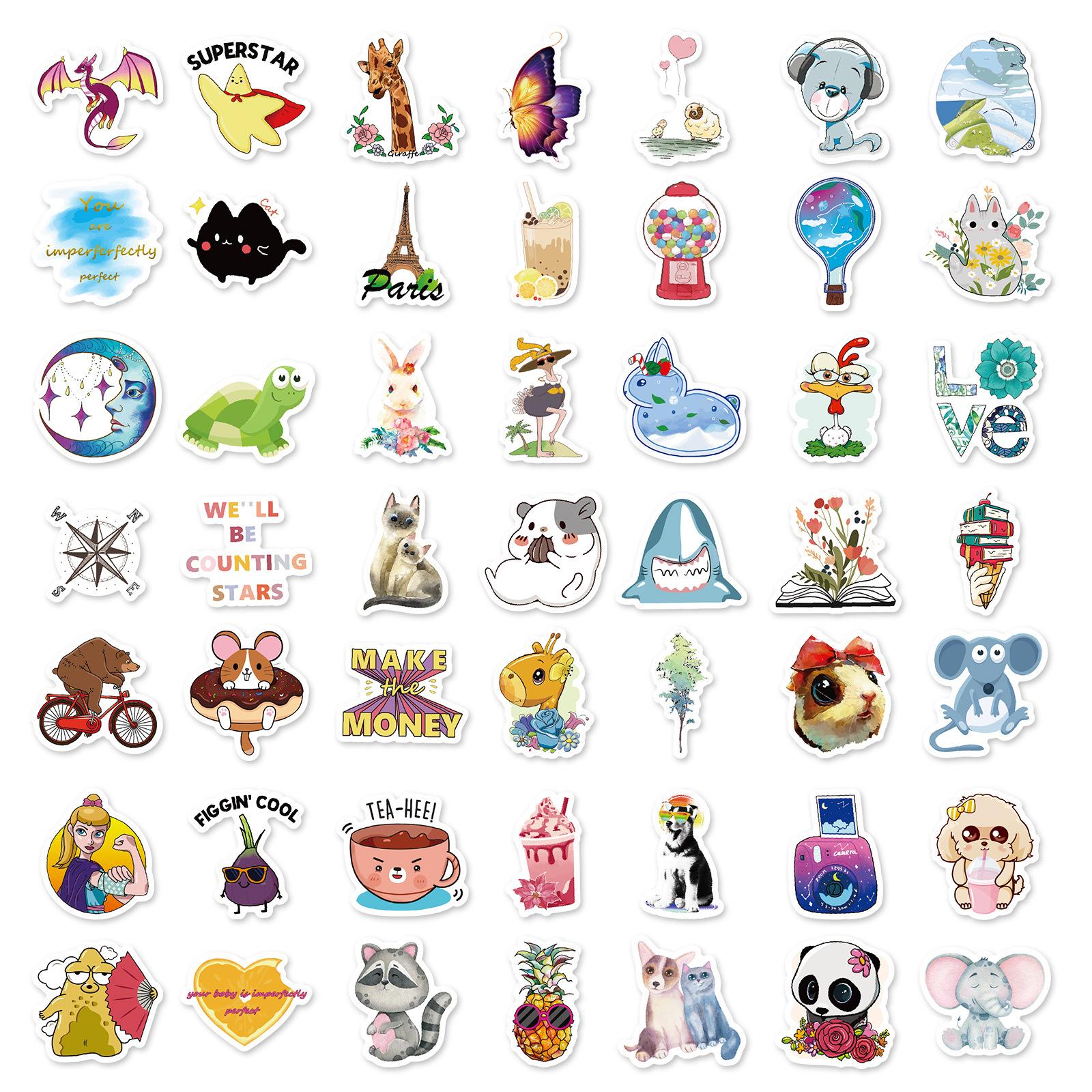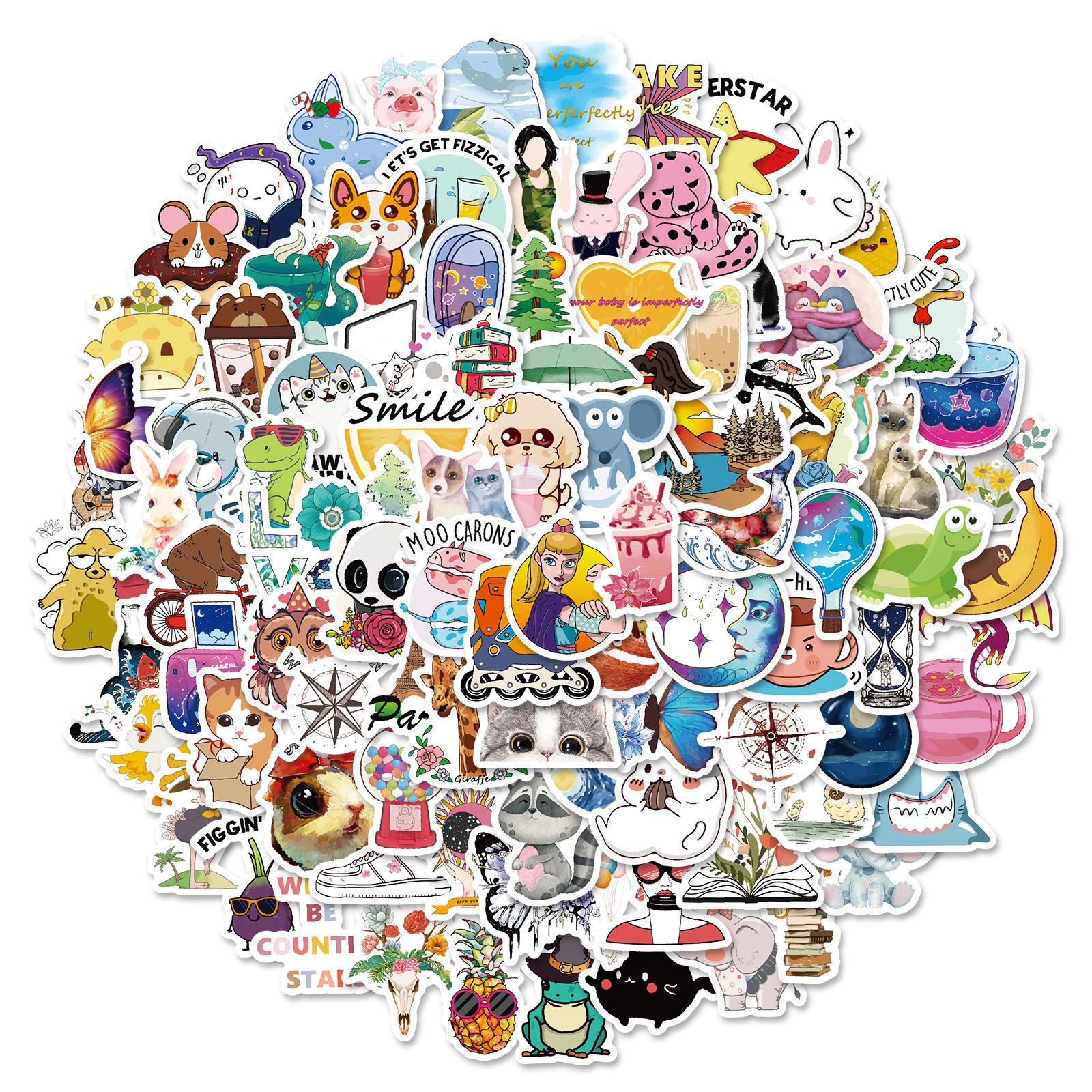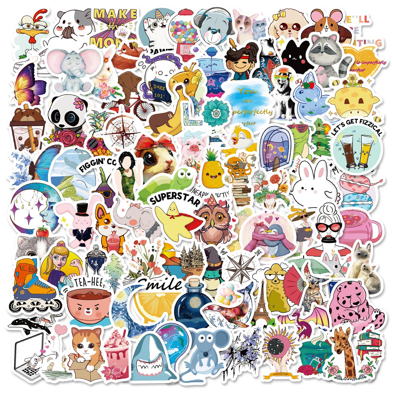Más vendidos transfronterizos 100 pegatinas de dibujos animados de animales lindos de todo tipo de tamaño pequeño para mezclar y combinar, pegatinas para decoración de ordenador de cuenta de mano