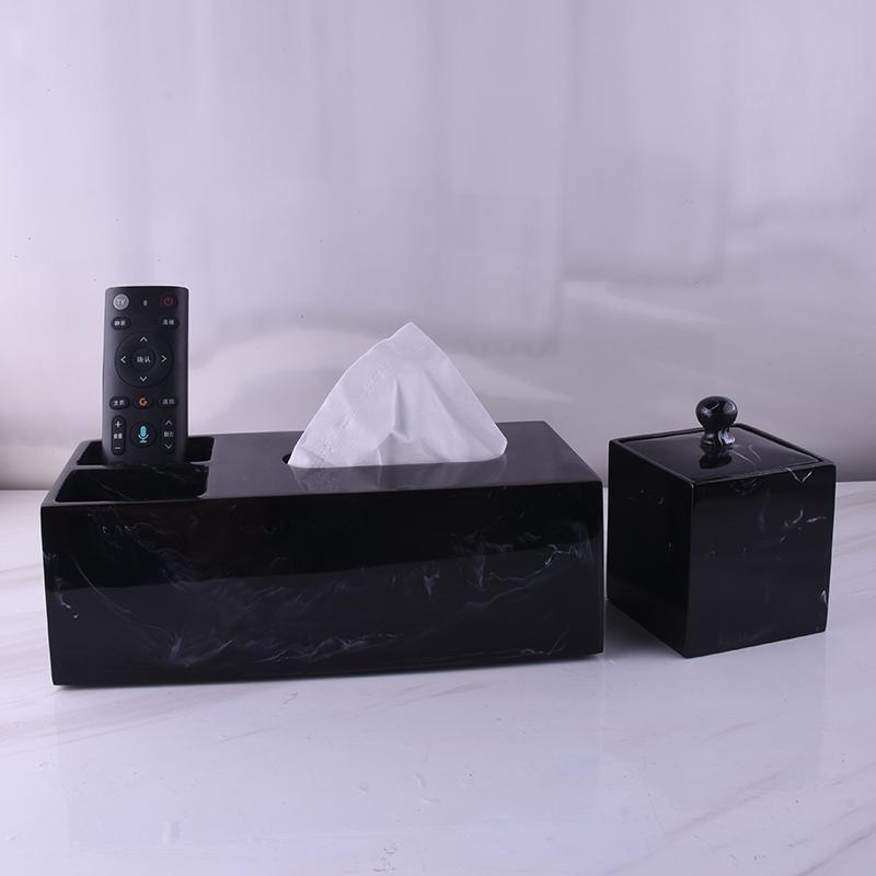 Black imitation marble square tissue box