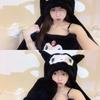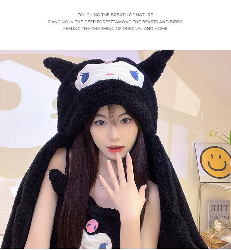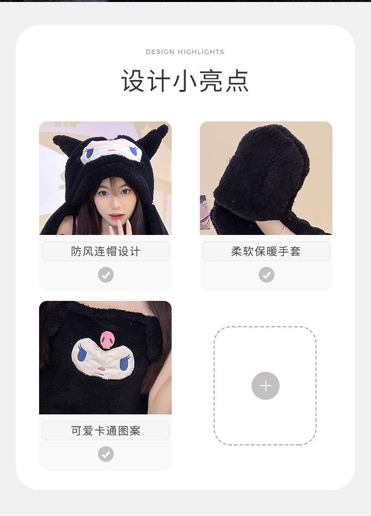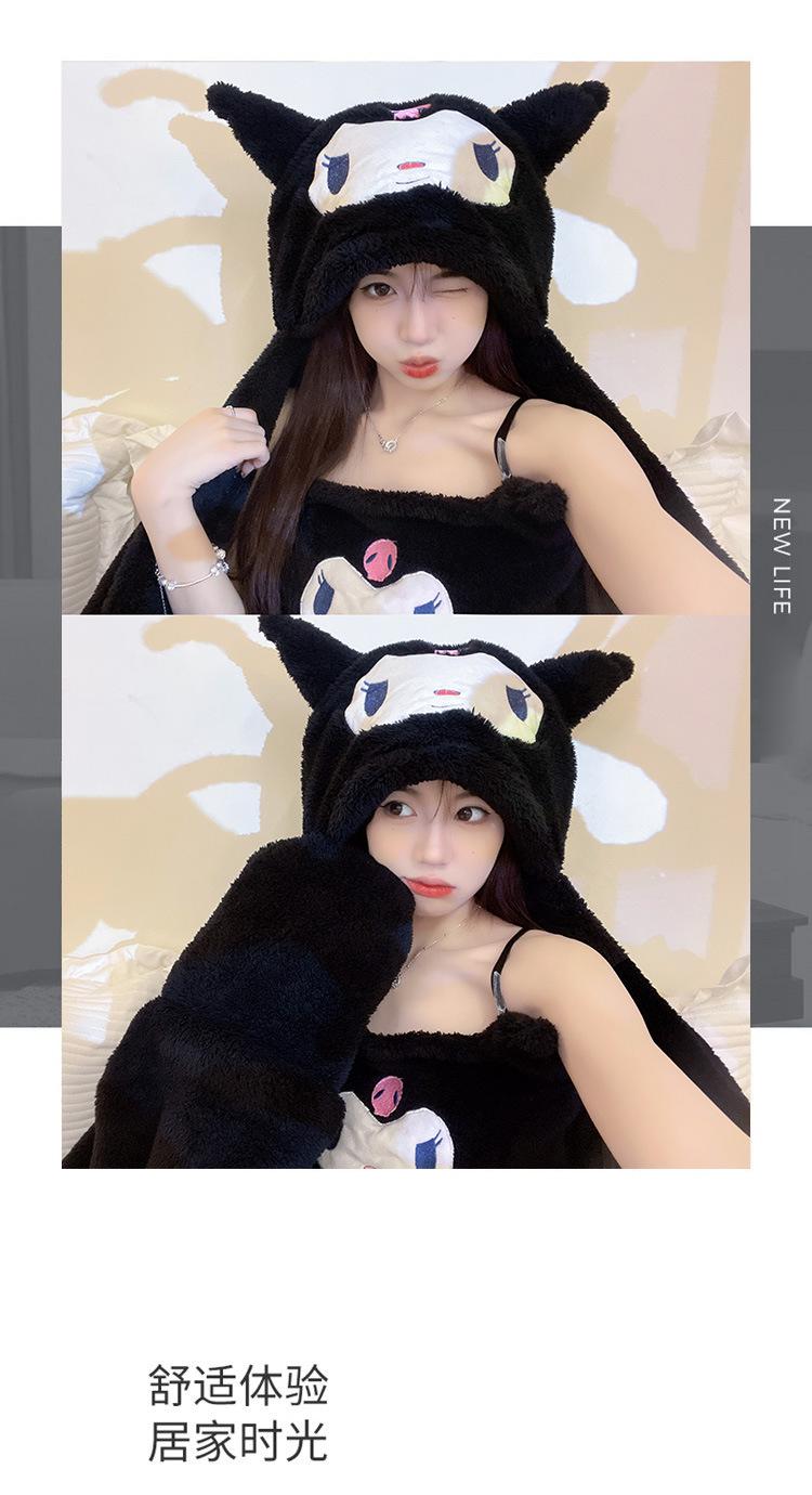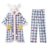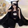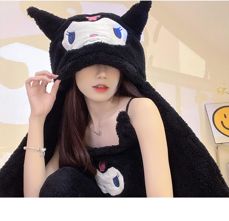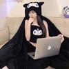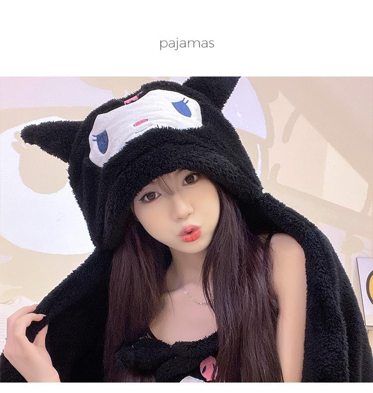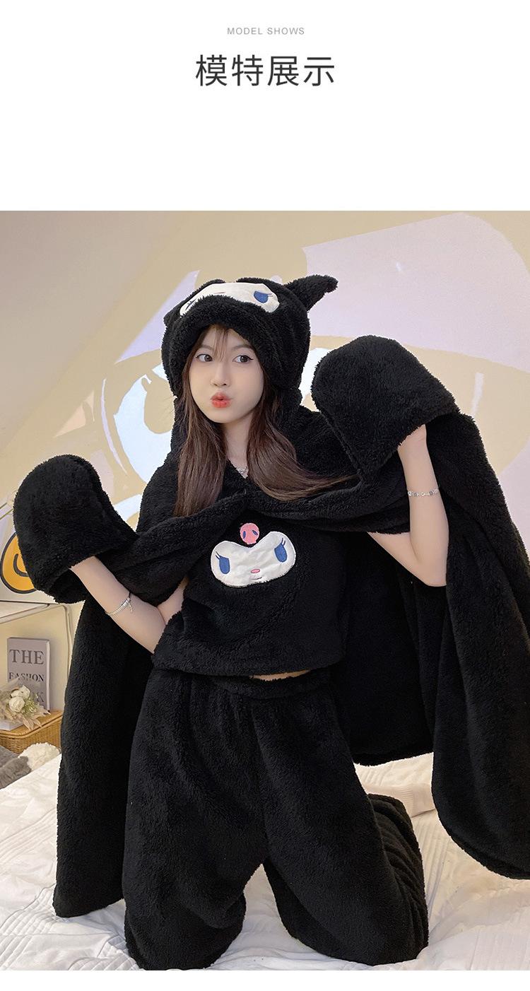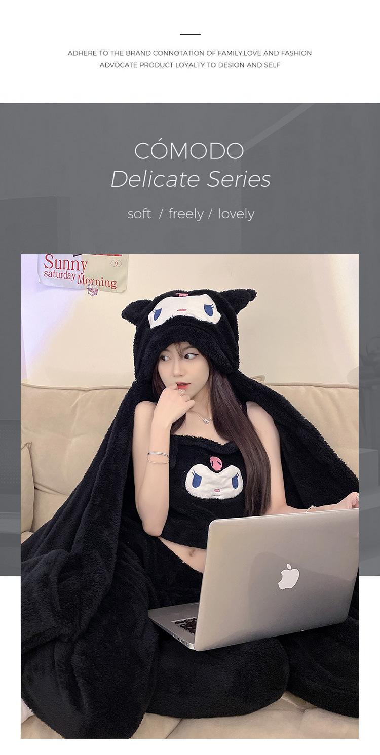 Pijama de Invierno de Vellón Coral de Nueva Llegada para Mujer, Felpa con Capucha, Bata Perezosa, Pantalones con Tirantes, Chal, Conjunto de Tres Piezas de Dibujos Animados