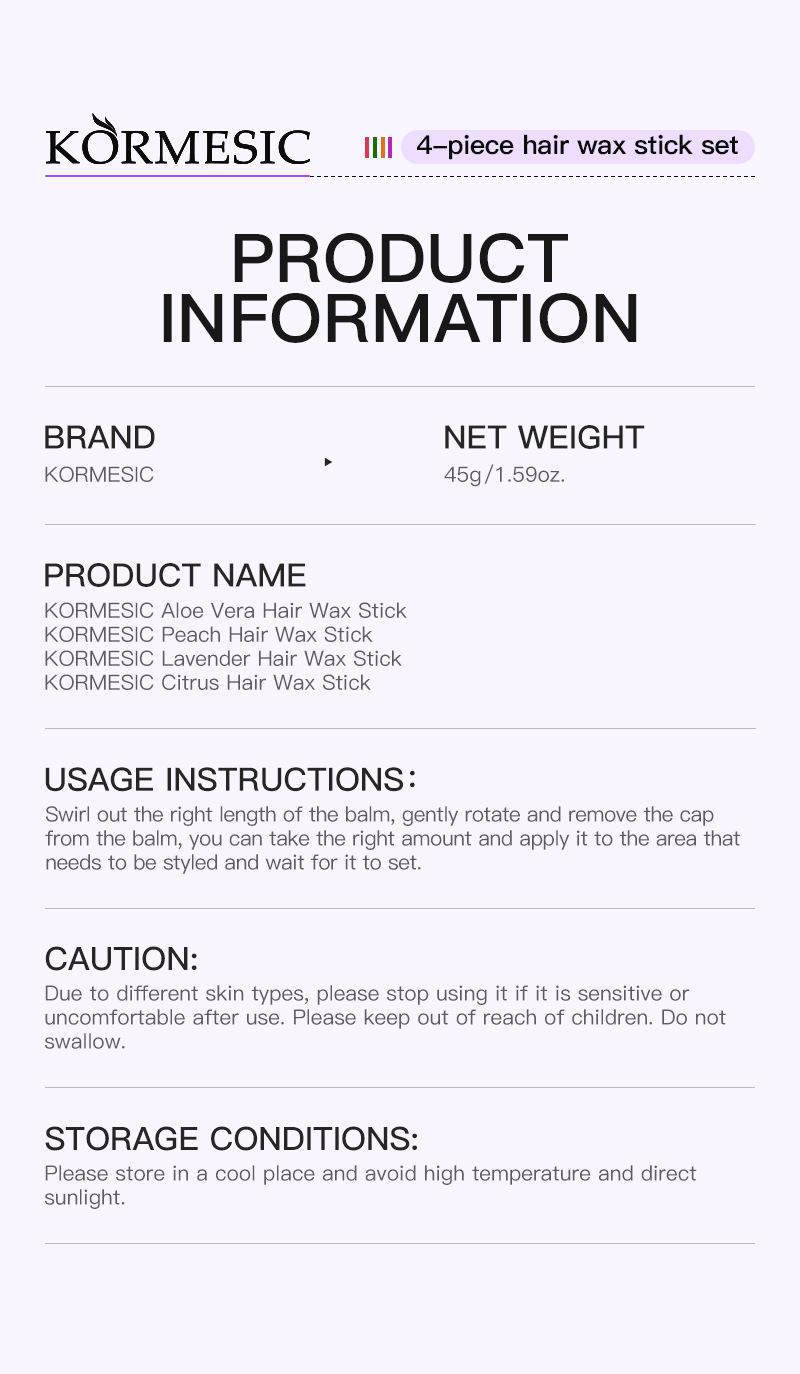 Kormesic citrus hair wax stick 45g [only for foreign trade cross-border sales, domestic sales are prohibited, purchase means disclaimer and responsibility]