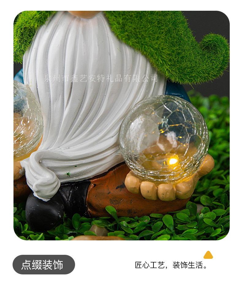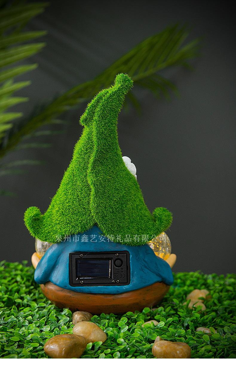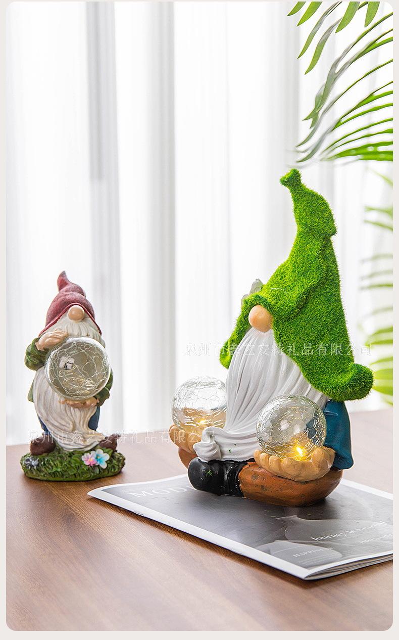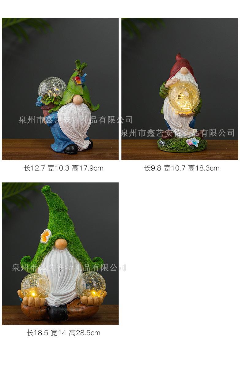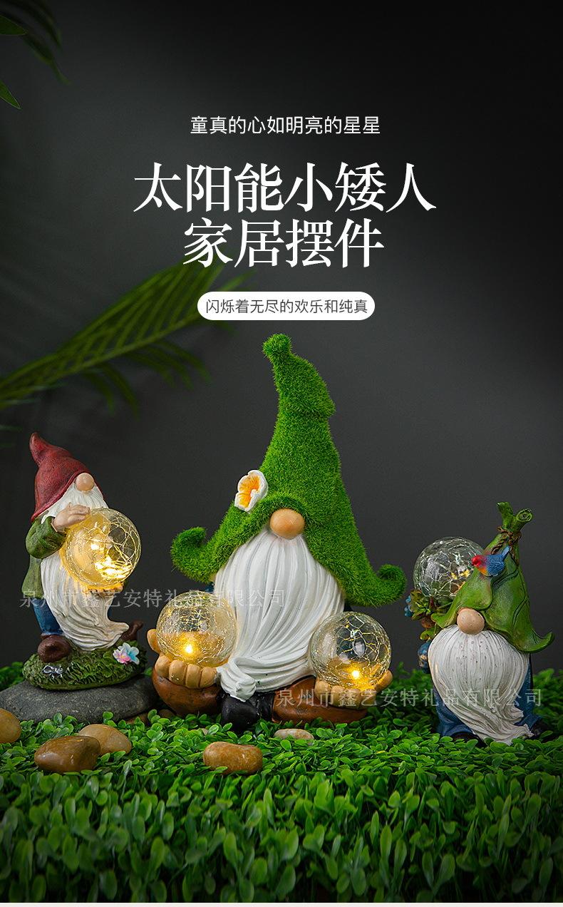 Adornos decorativos para patio y jardín transfronterizos, enanos de resina con luz solar para exteriores