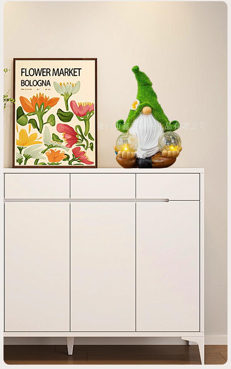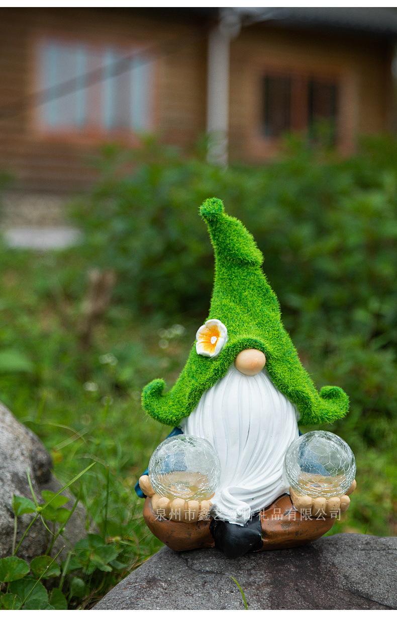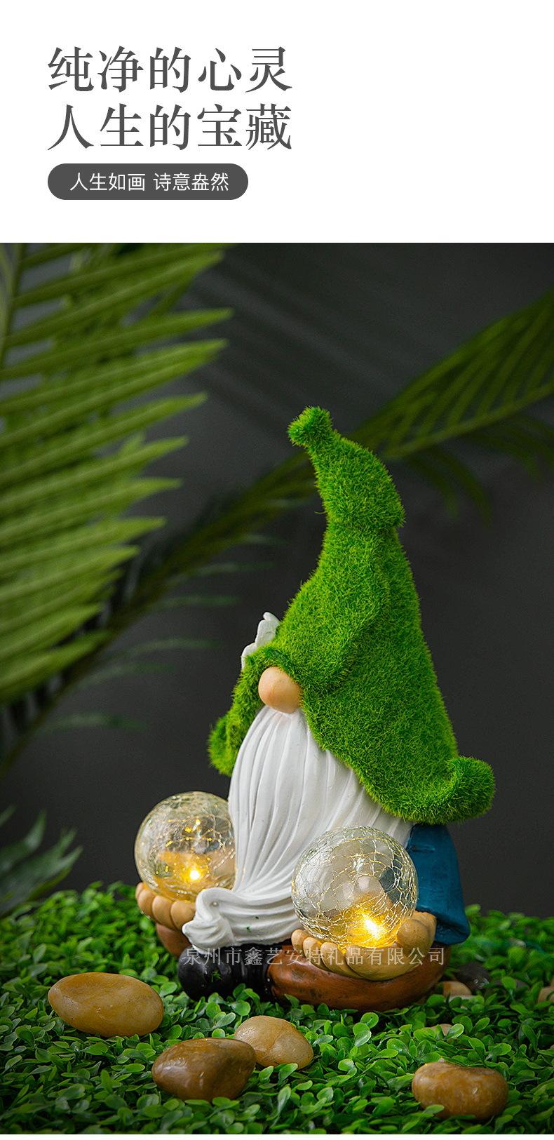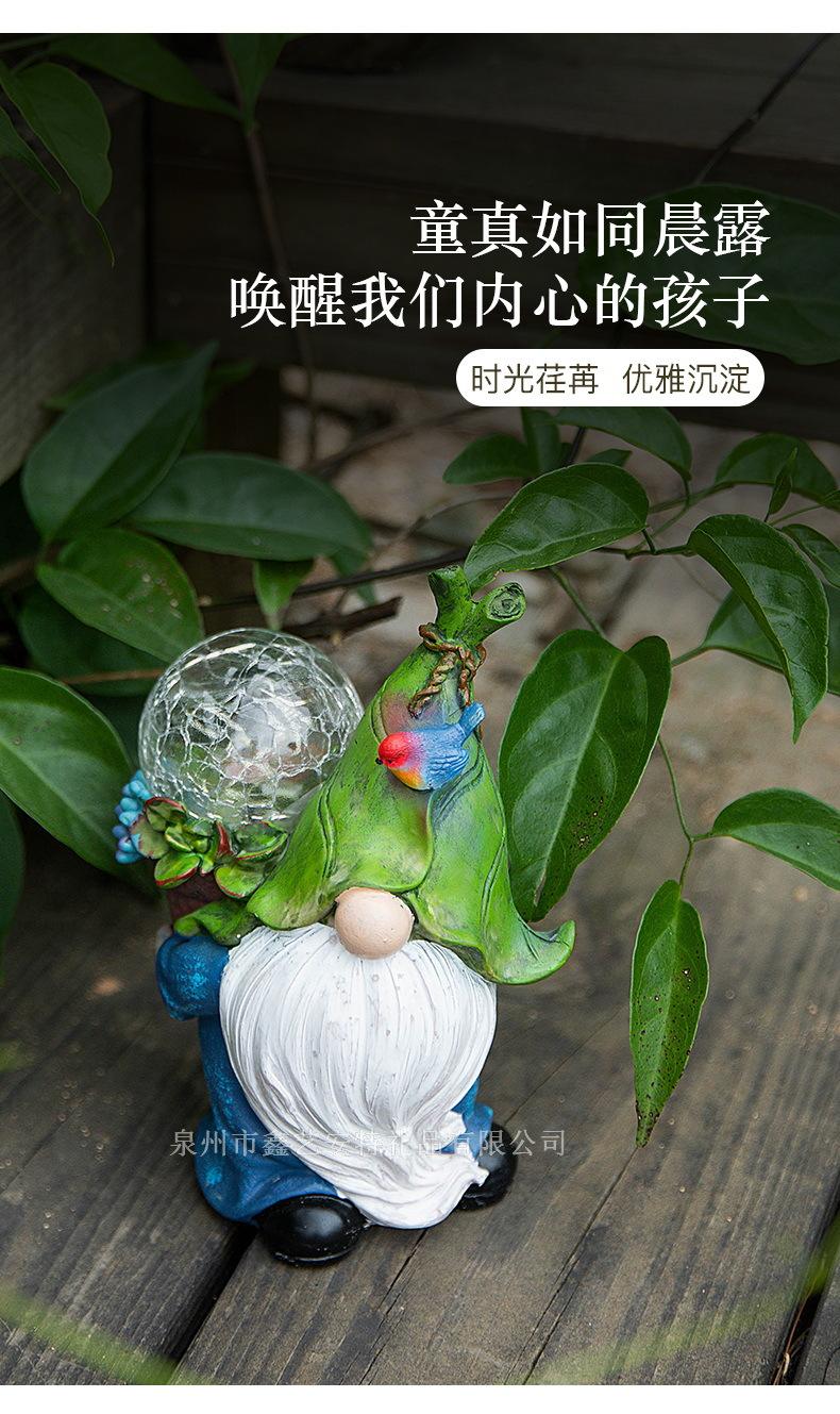 Adornos decorativos para patio y jardín transfronterizos, enanos de resina con luz solar para exteriores