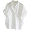 Camisa de manga corta estilo Hong Kong vintage para mujer, nueva camisa blanca combinable de verano, cuello murciélago holgado.