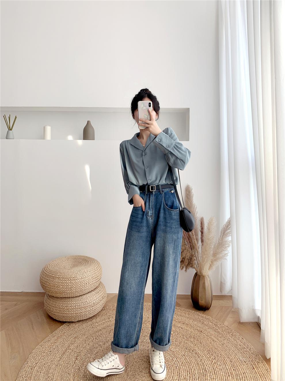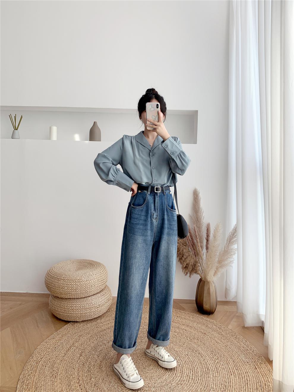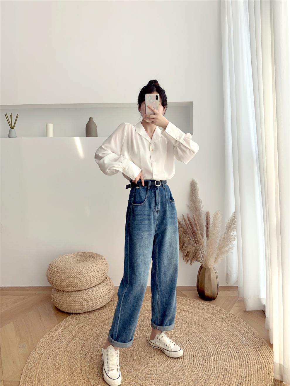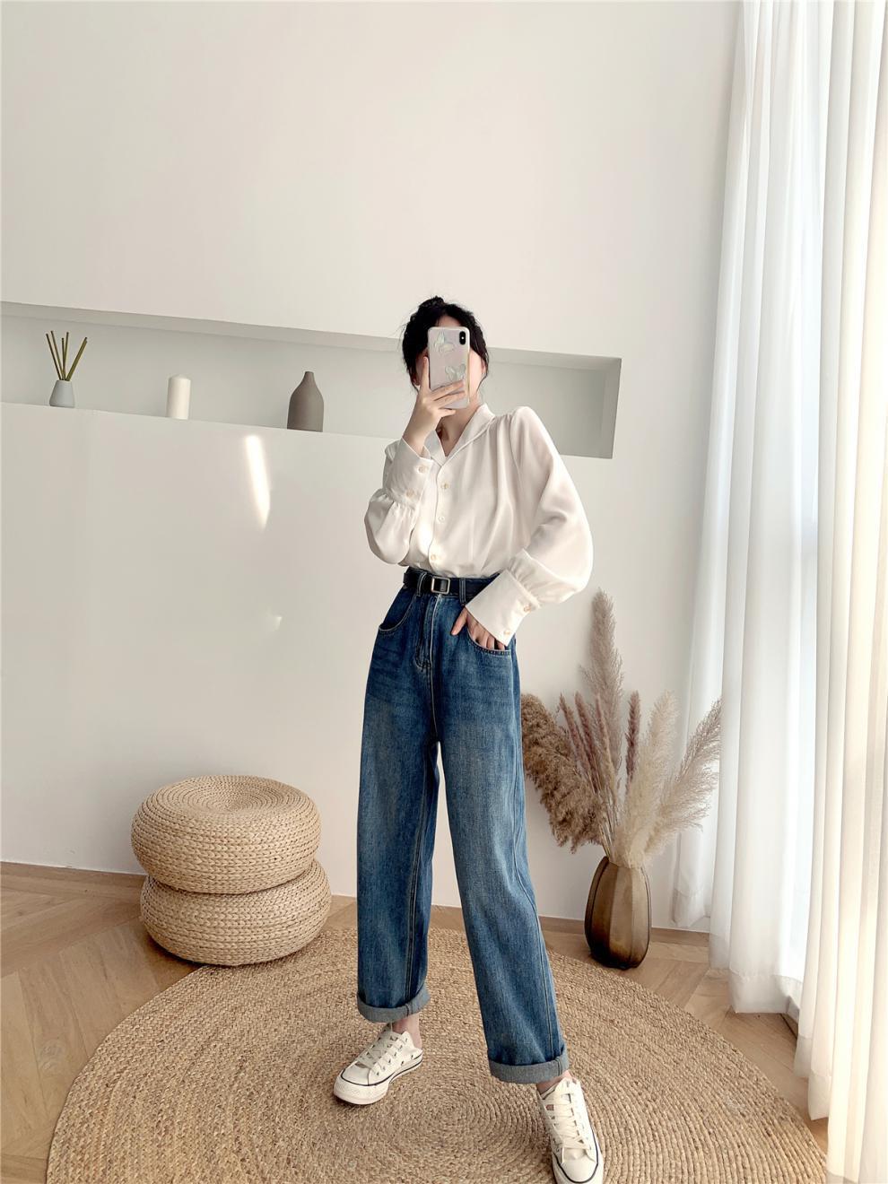 Compra Foto real ropa de otoño 2024 estilo retro de Hong Kong traje profesional coreano cuello solapa manga larga camisa solapa top blanco de mujer marea al por mayor en Joom.pro