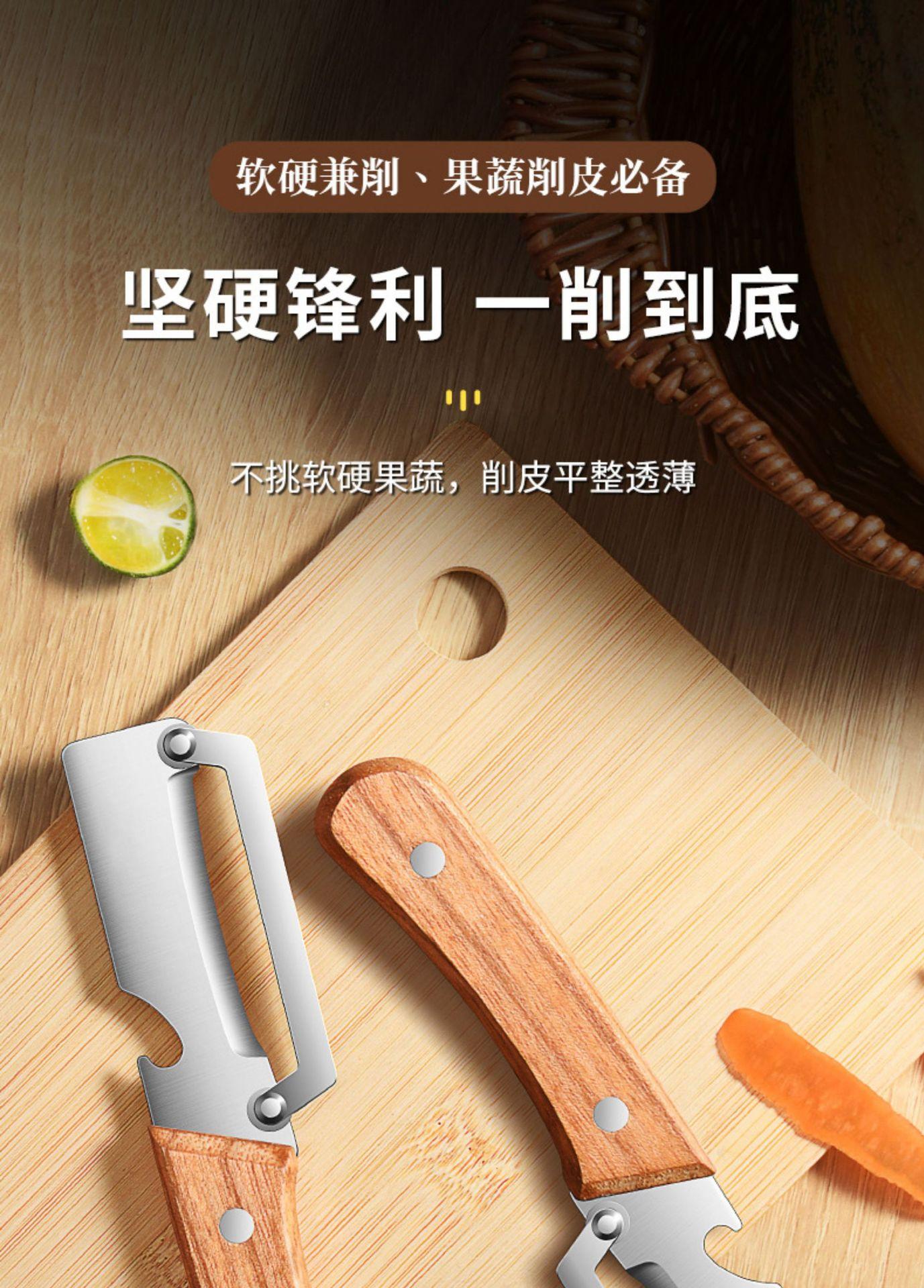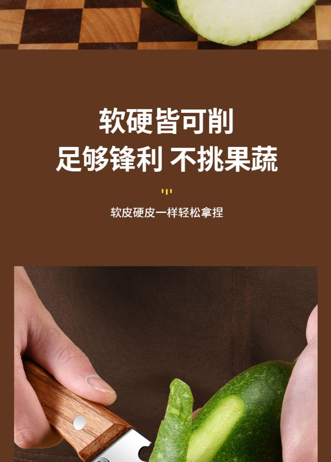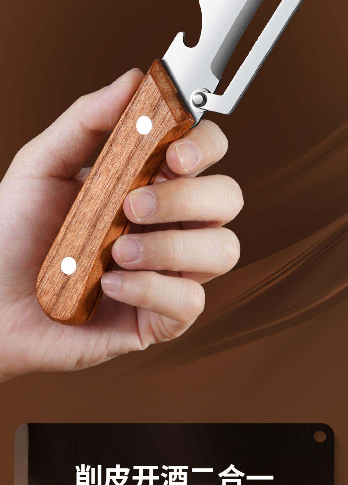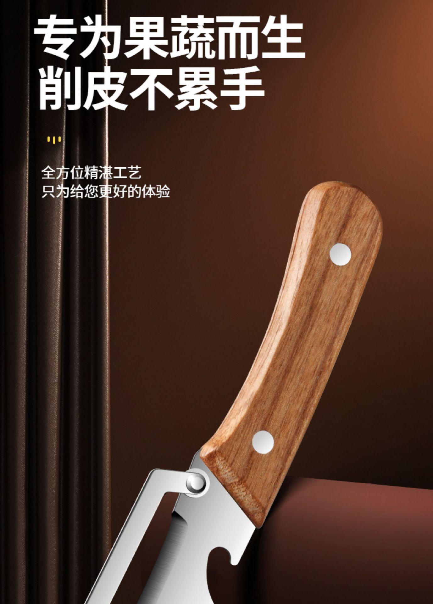 Cuchillo Pelador Multifuncional, Pelador No Inoxidable, Cuchillo Especial para Pelar Fruta de Cocina, Cuchillo para Caña de Azúcar con Mango de Madera