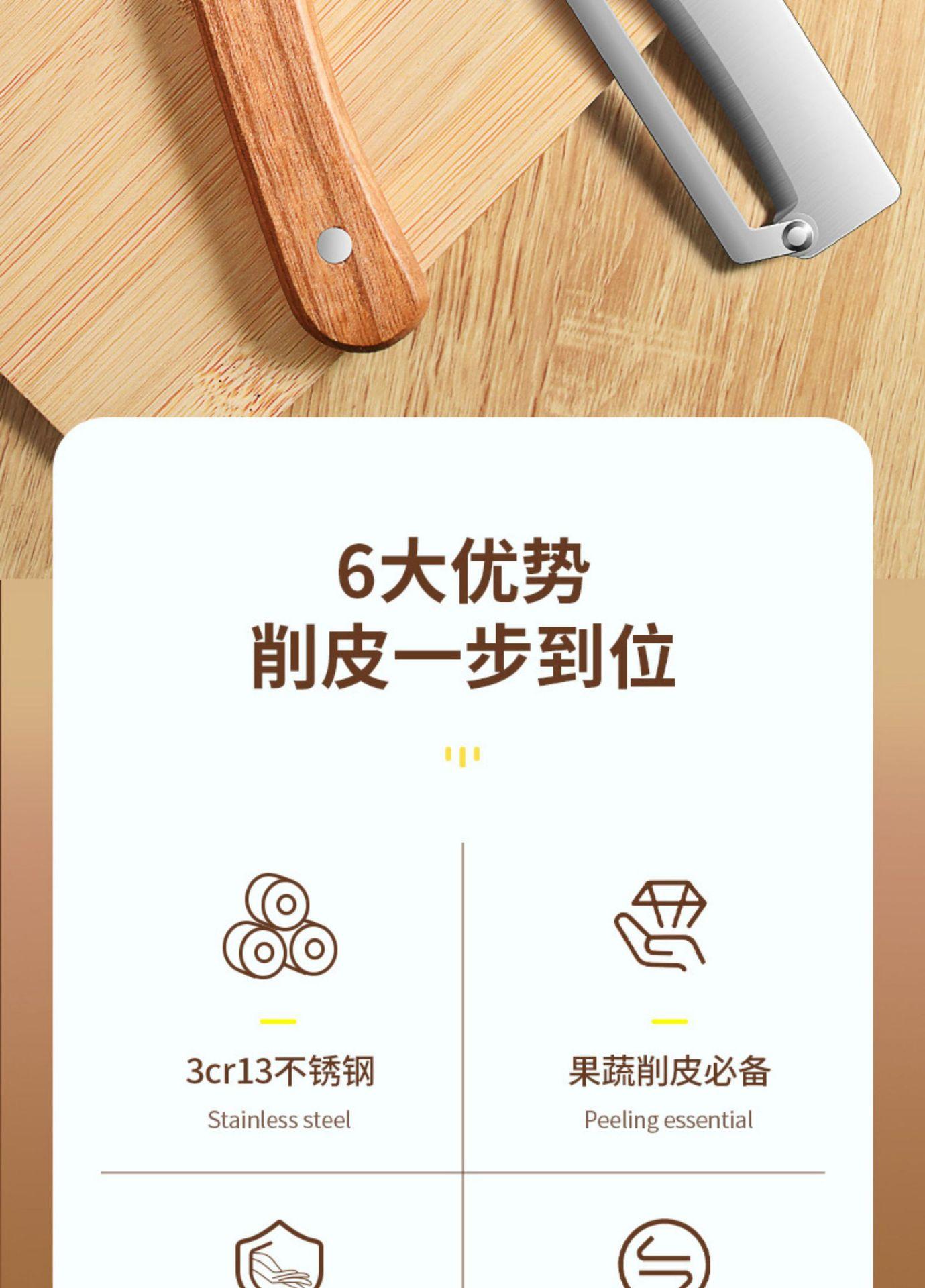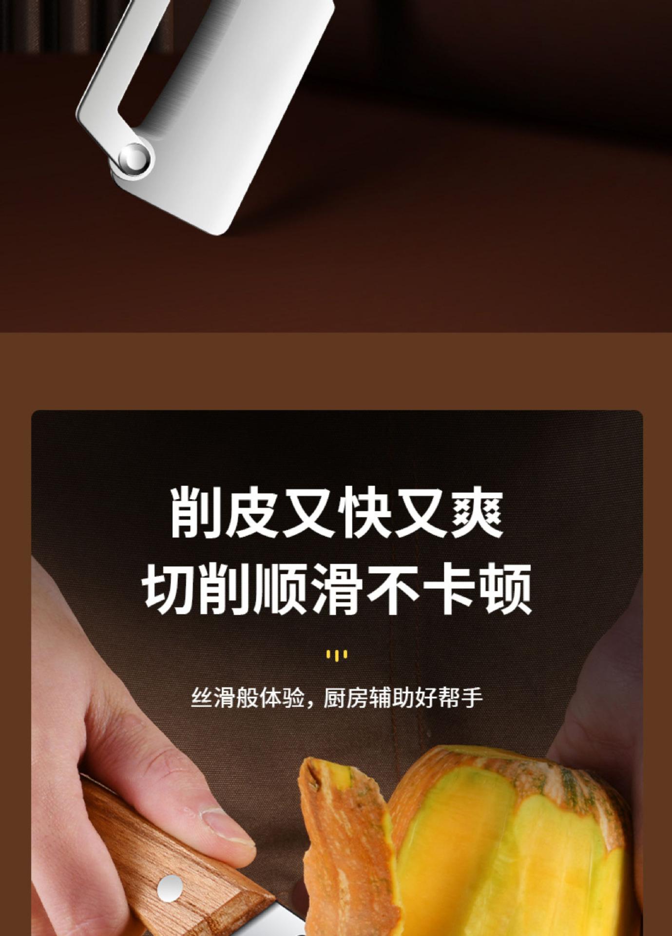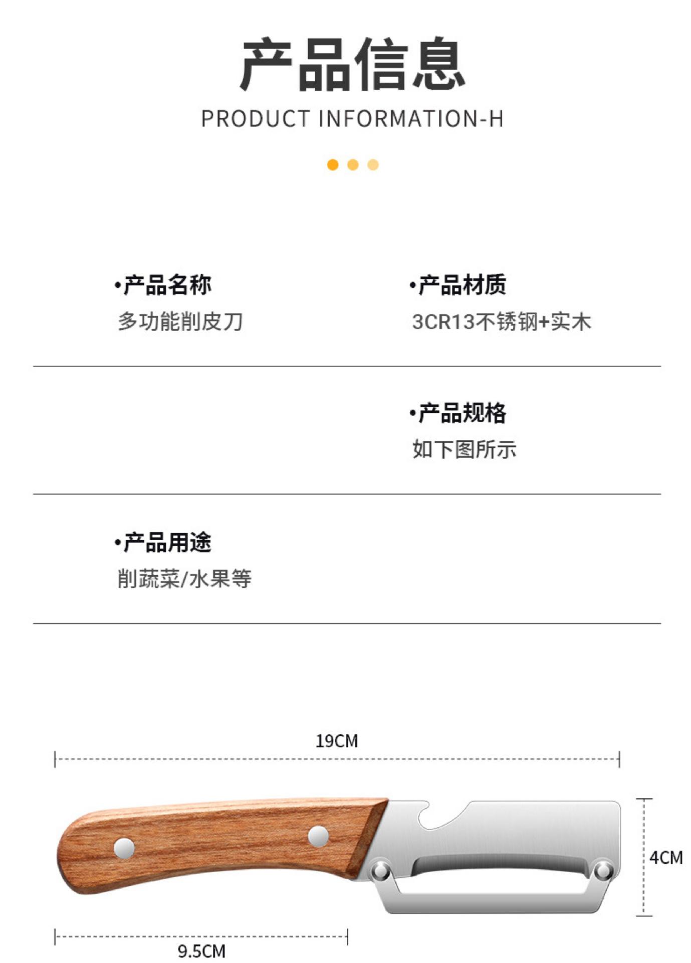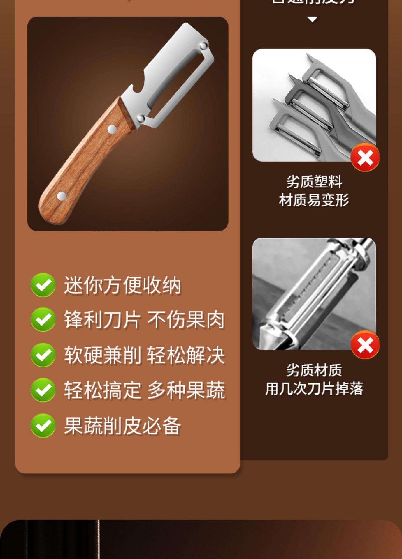 Cuchillo Pelador Multifuncional, Pelador No Inoxidable, Cuchillo Especial para Pelar Fruta de Cocina, Cuchillo para Caña de Azúcar con Mango de Madera