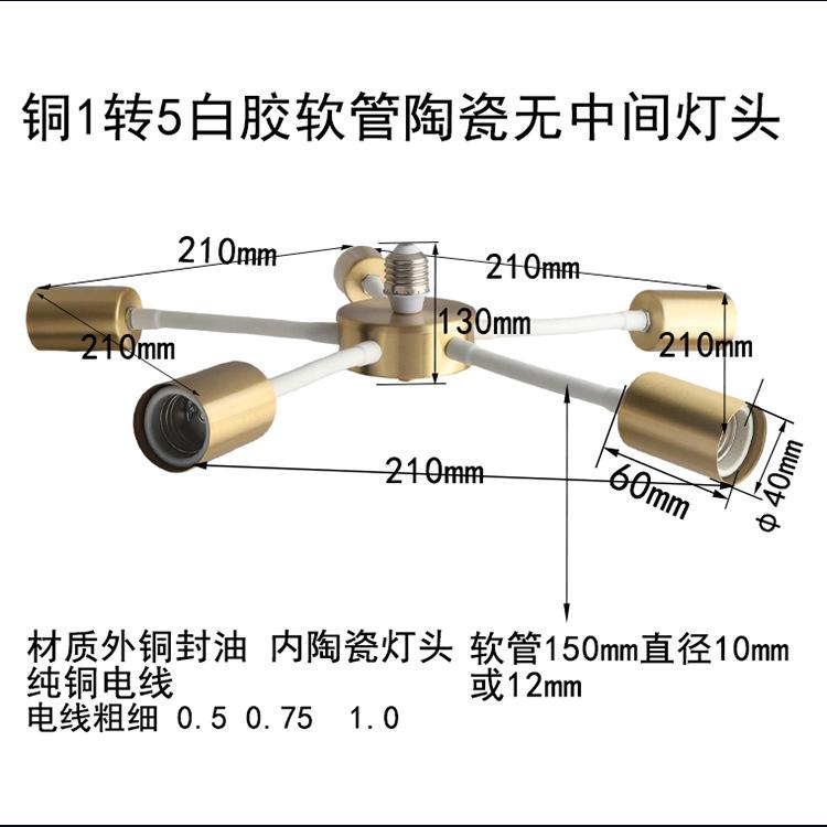 Copper 1 to 2 white glue 10 hose ceramic national standard 0.5 wire without middle lamp head